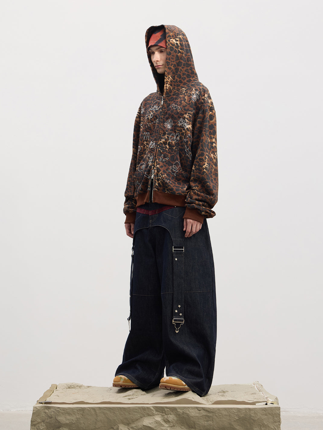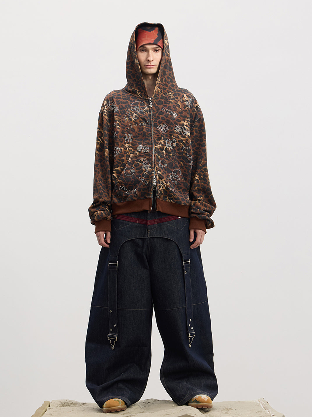 DND4DES | Rhinestone Leopard Zip Up Hoodie