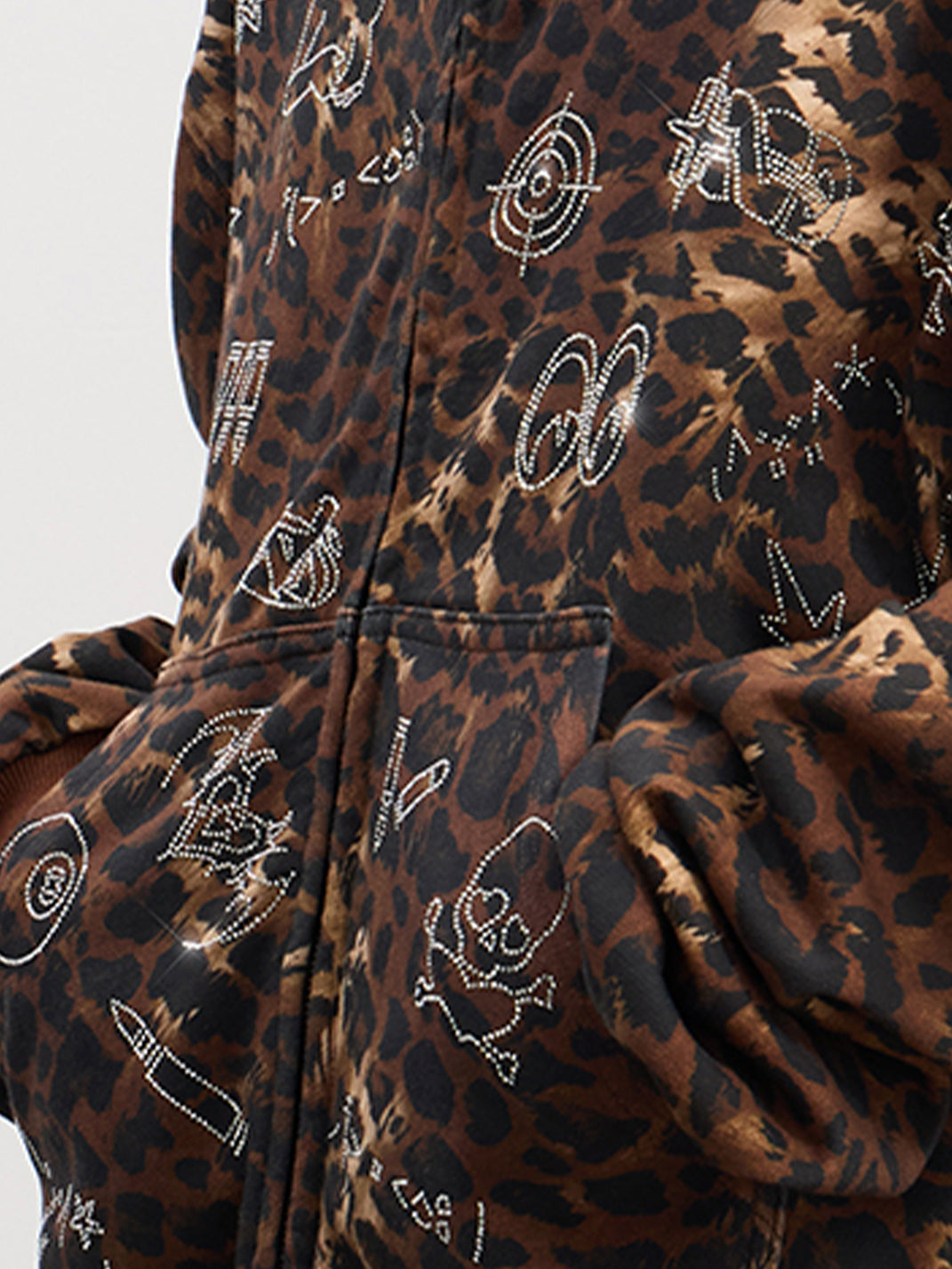 DND4DES | Rhinestone Leopard Zip Up Hoodie Skip to content
