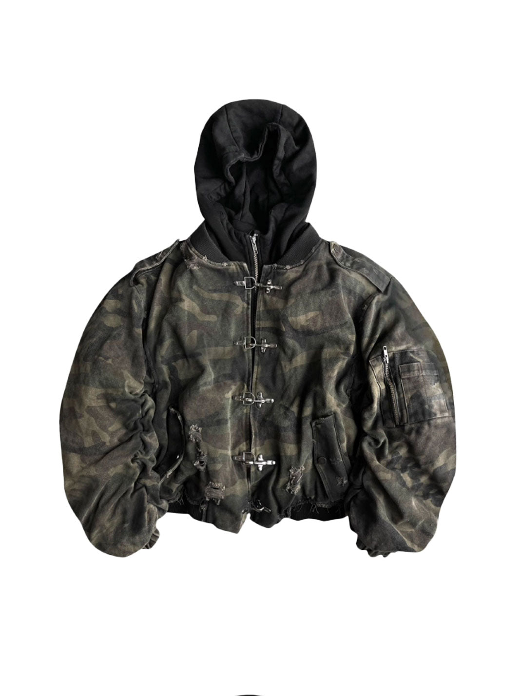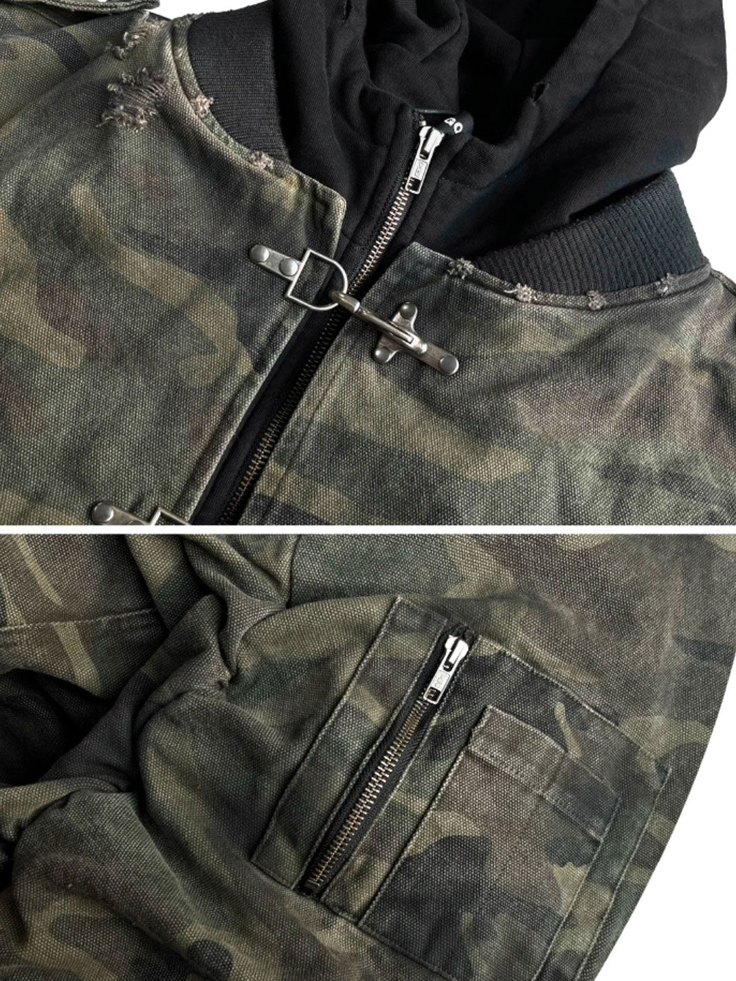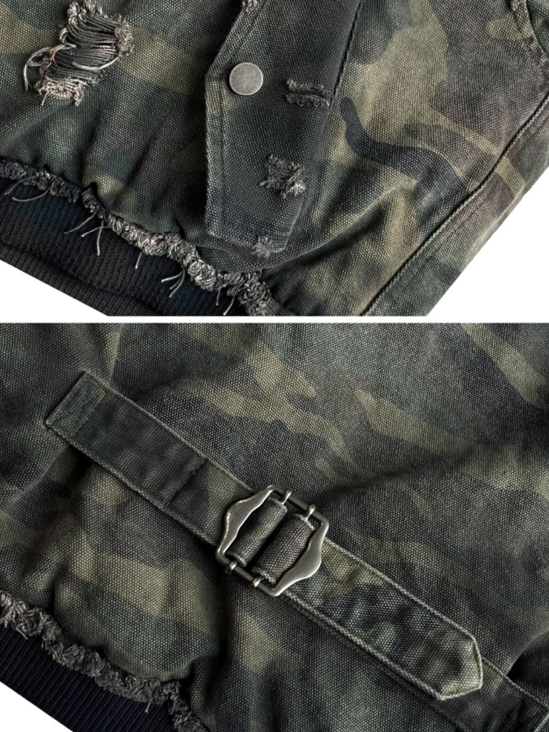GOJOYJINNI | Washed Camouflage Bomber Jacket with Thickened Cotton Skip to content