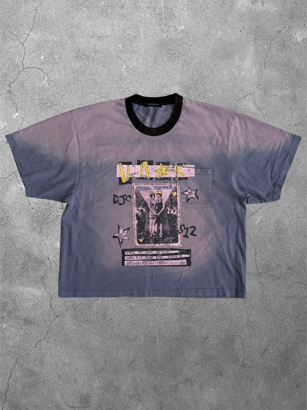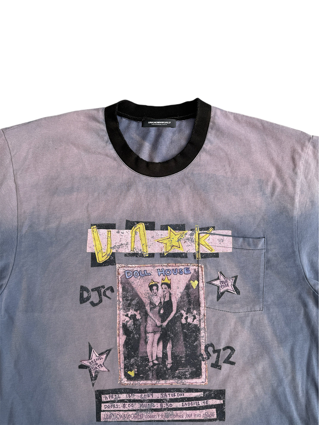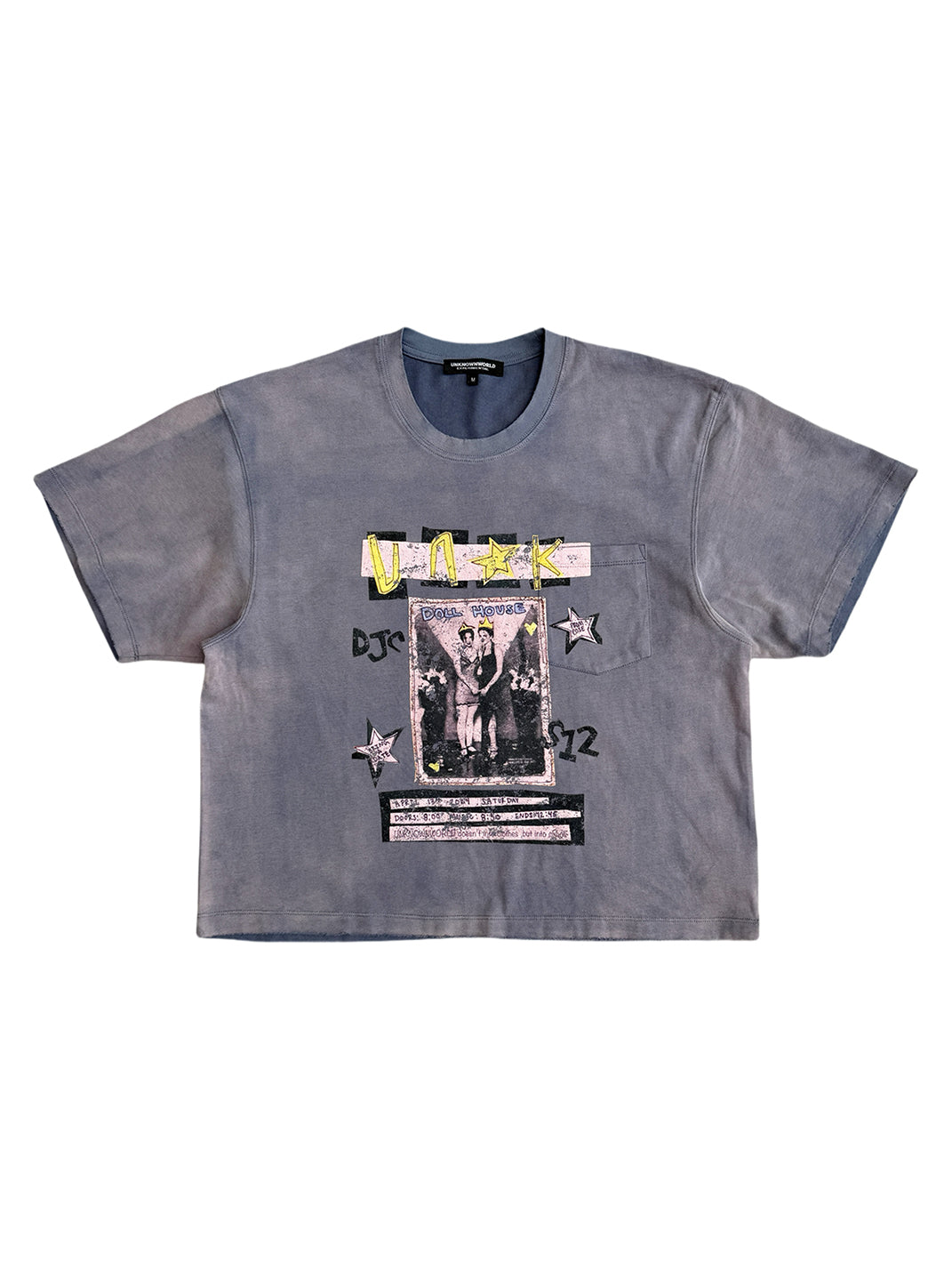 Chest pocket with overlapping print adds depth and dimension.