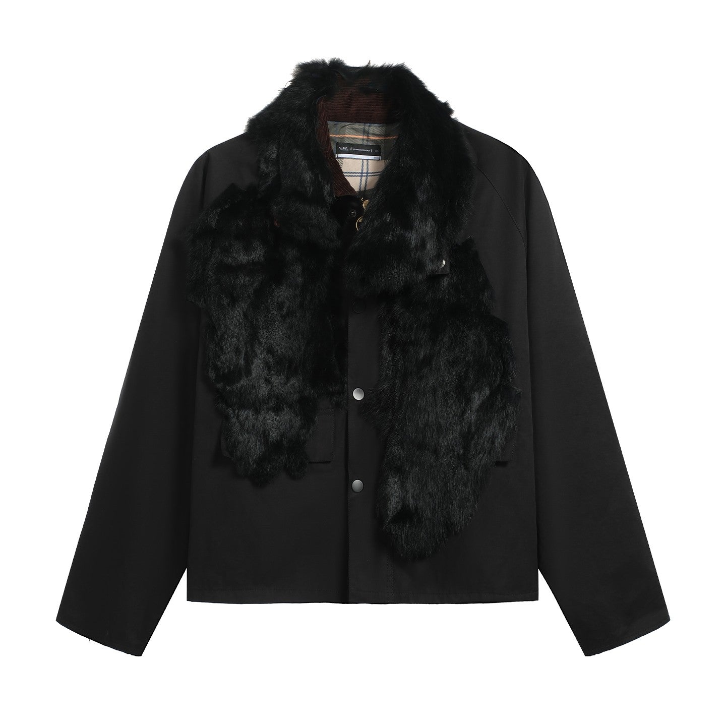 NOTHINGNESS WORLD | Distressed Fur Collar Zipper Short Jacket Skip to content