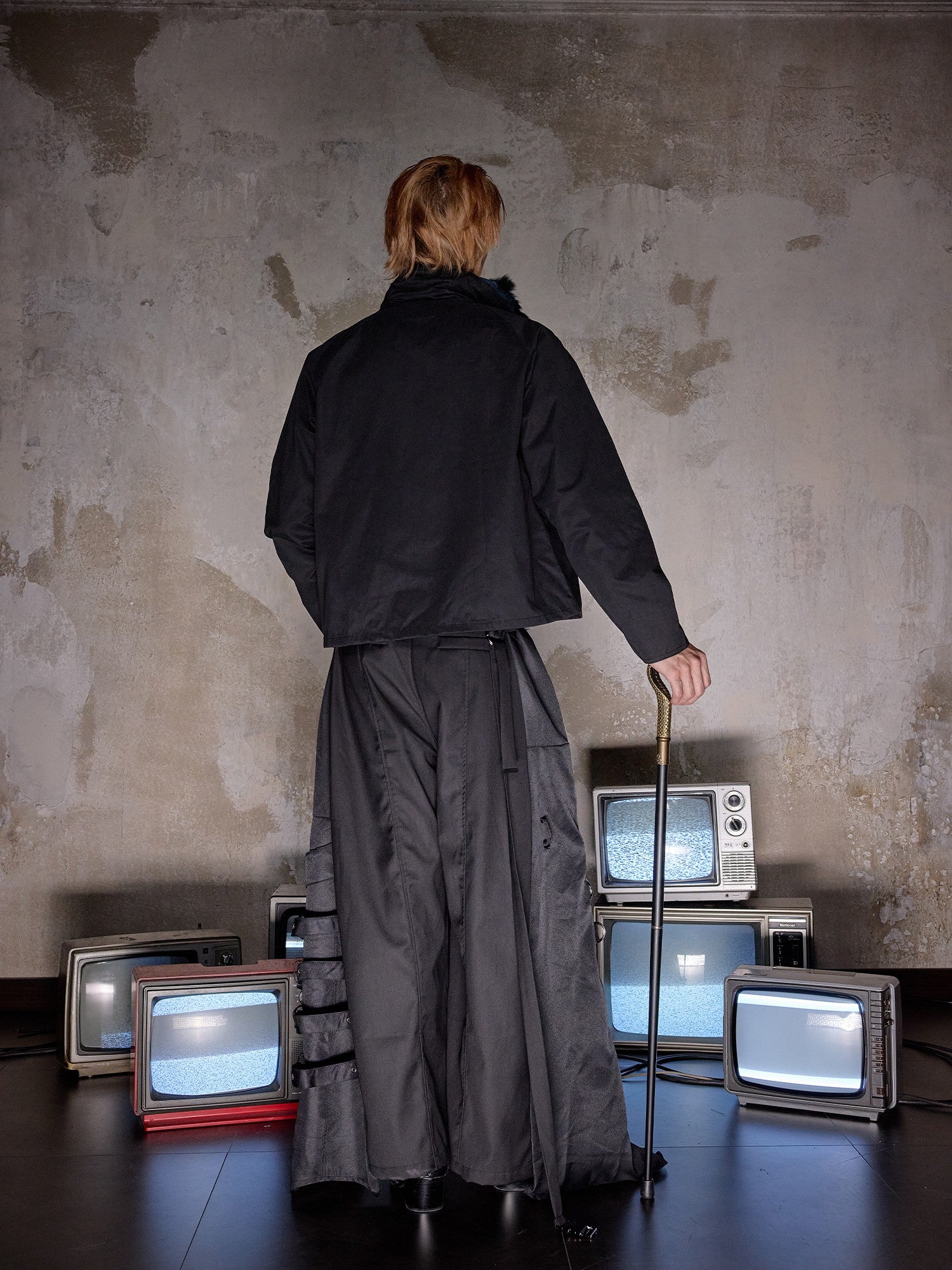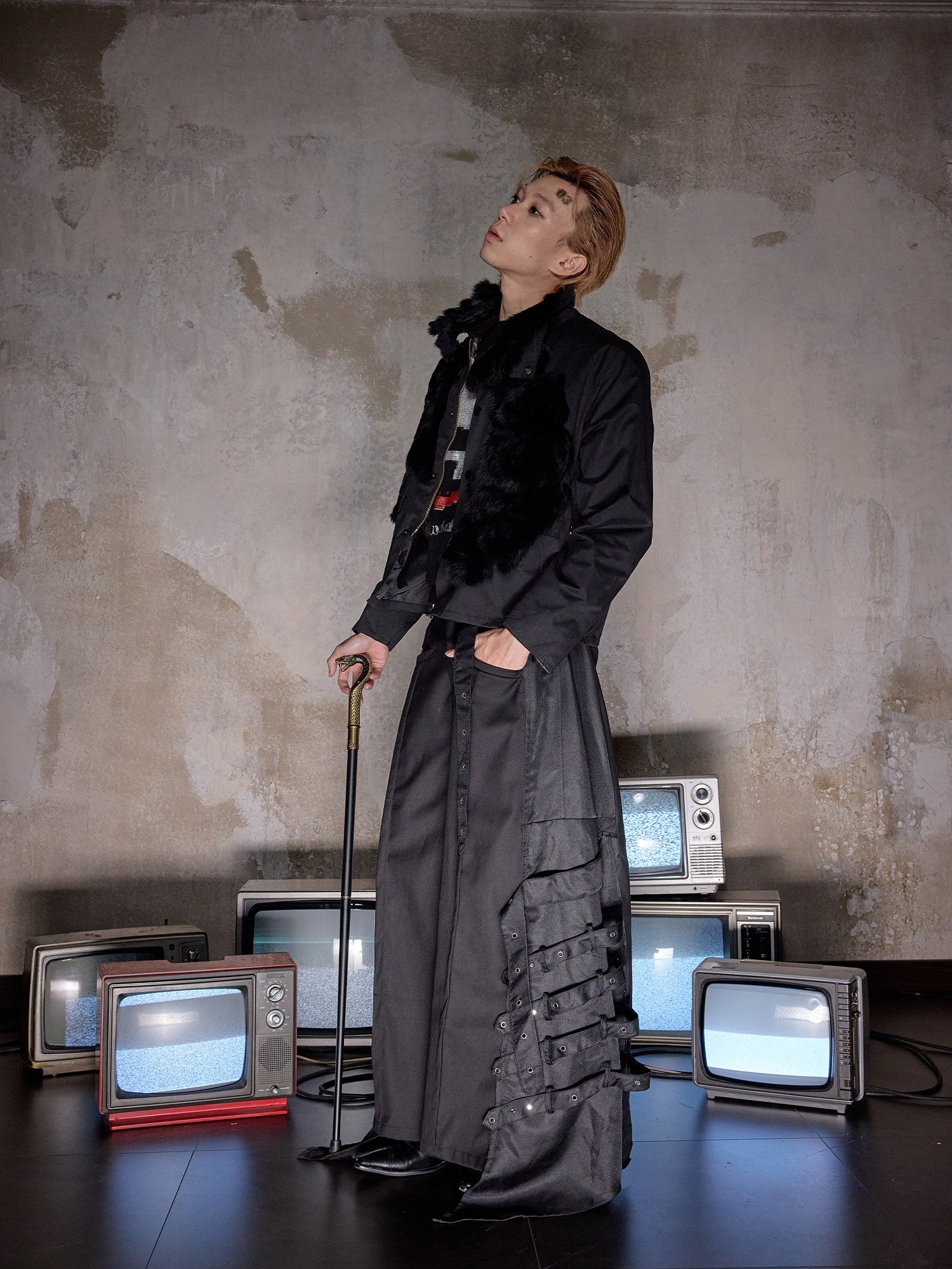 NOTHINGNESS WORLD | Distressed Fur Collar Zipper Short Jacket