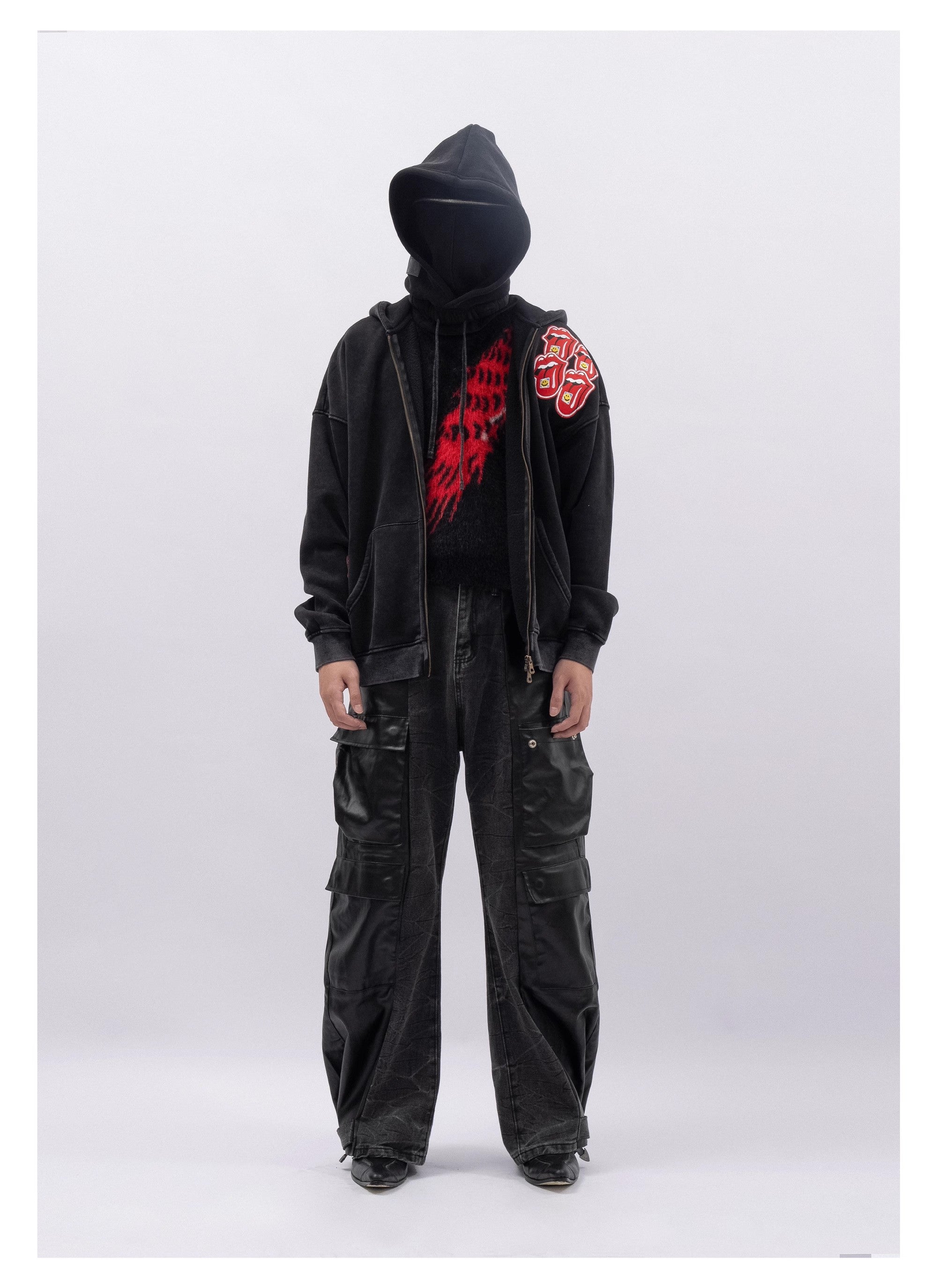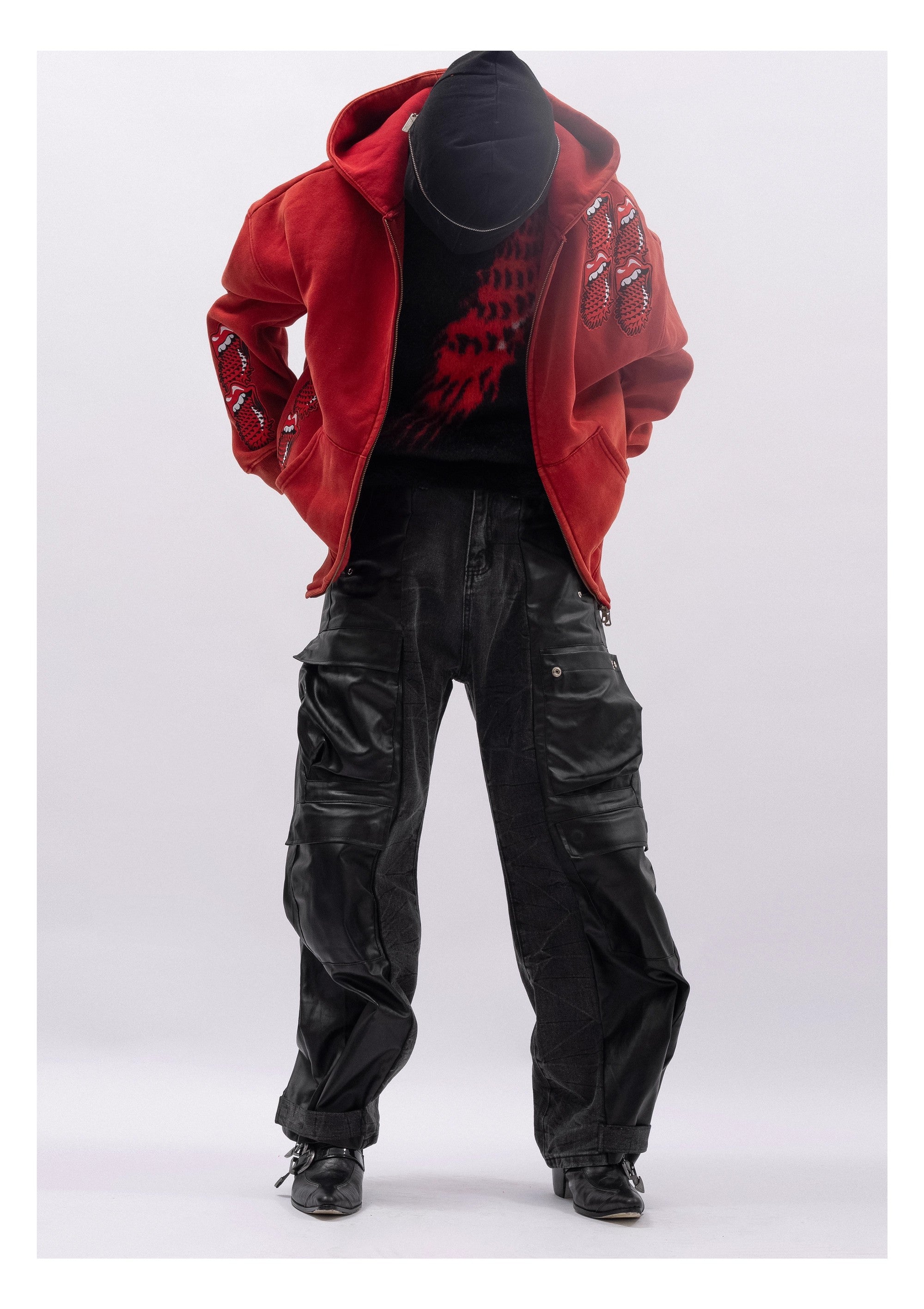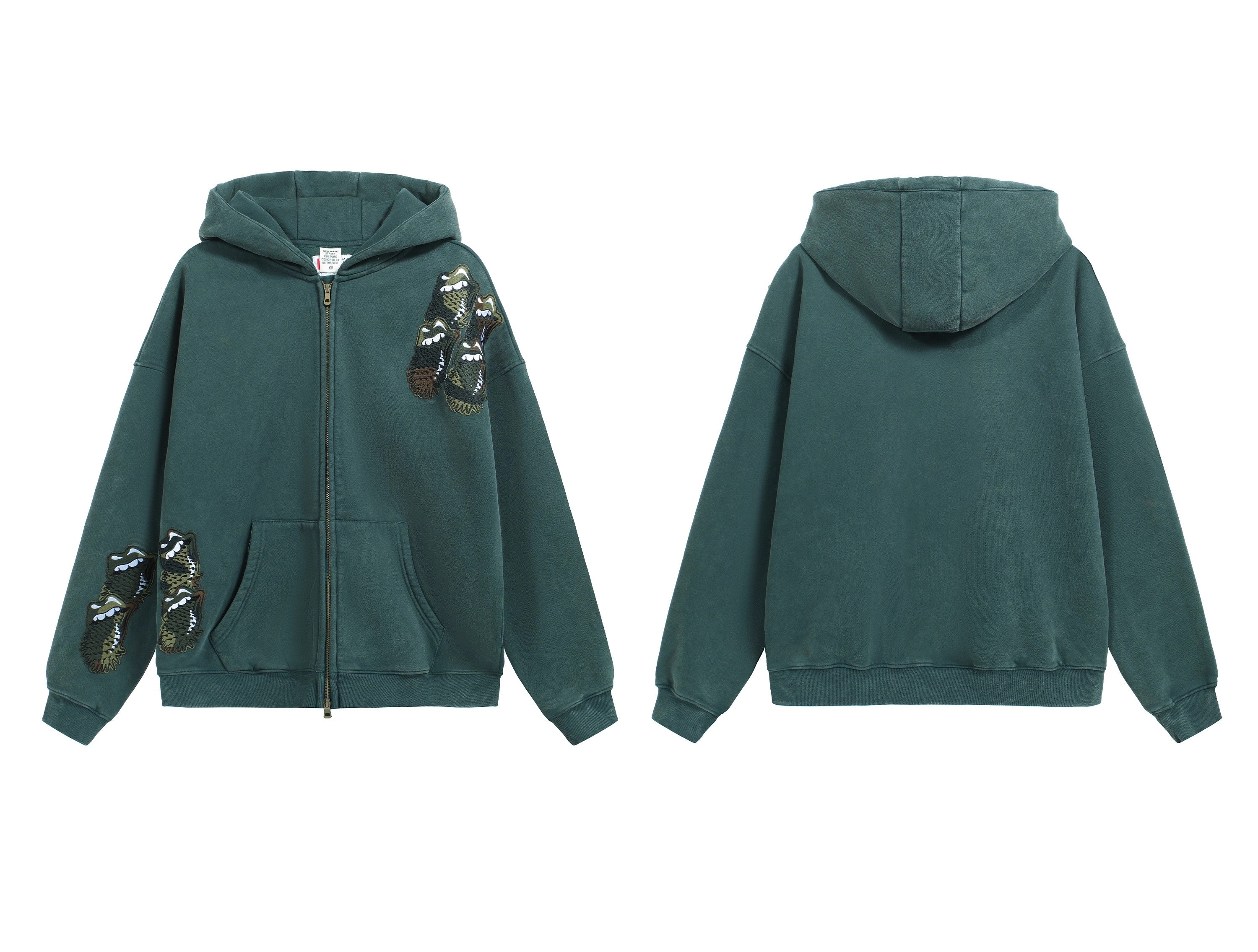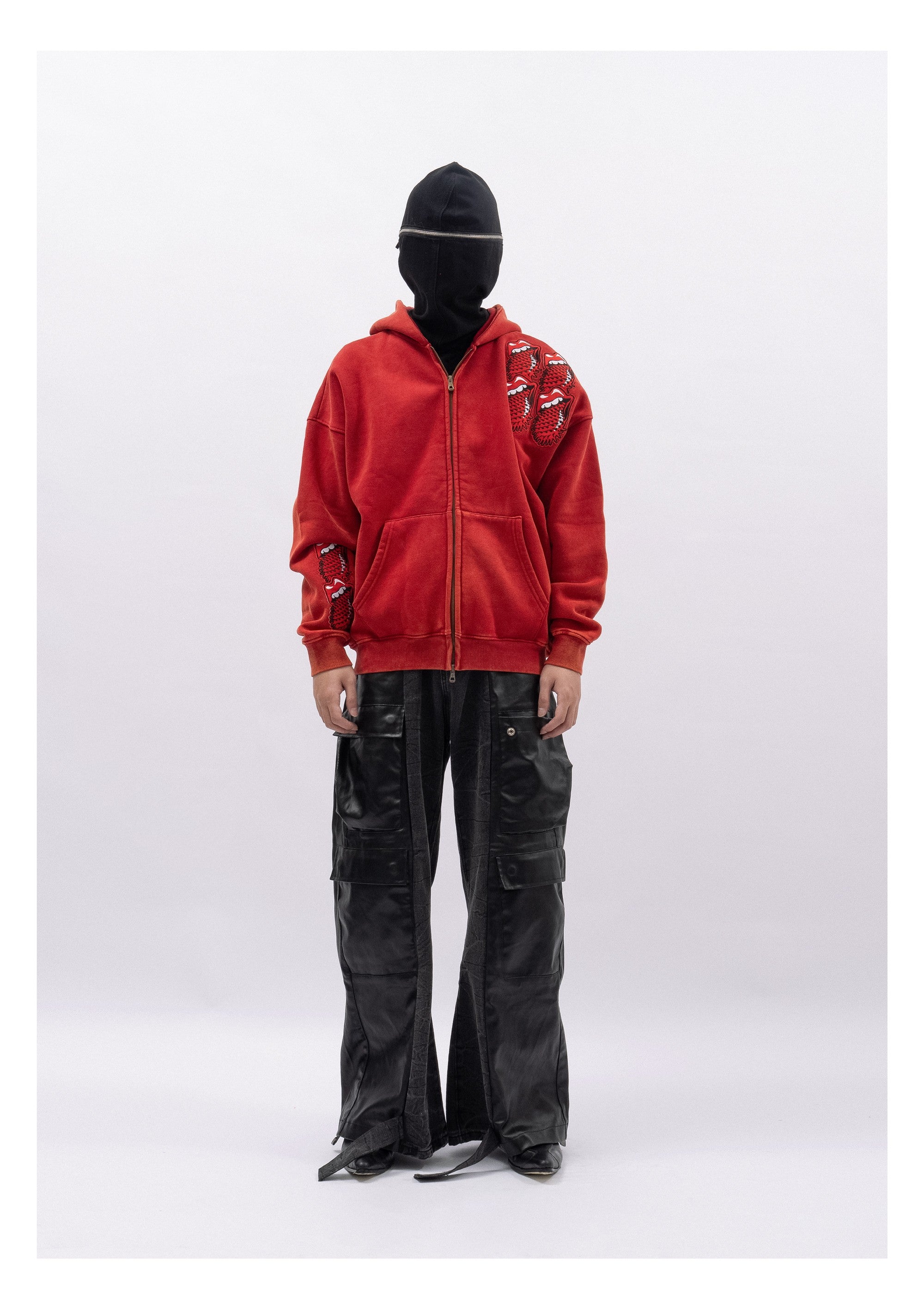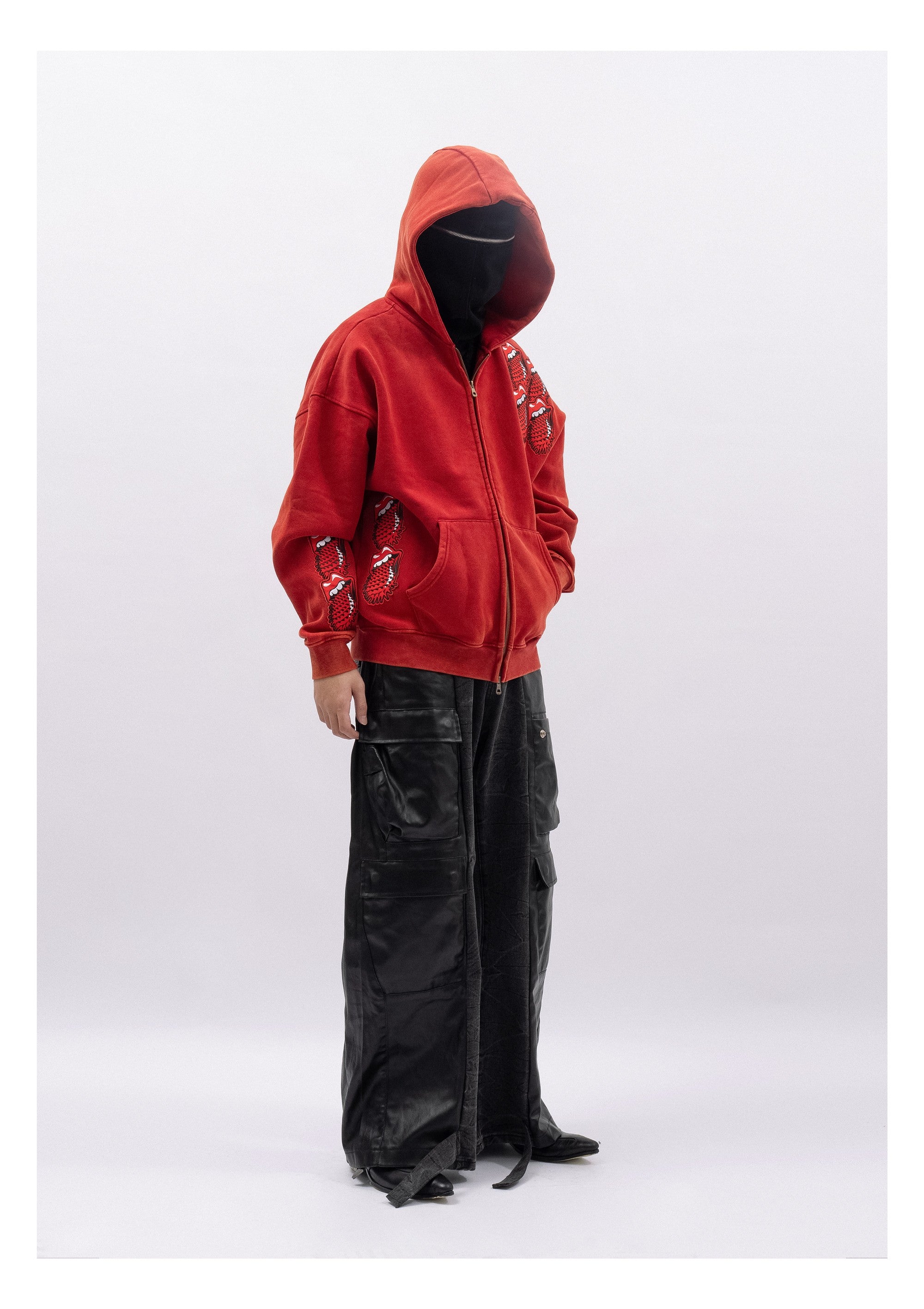 NOTHINGNESS WORLD | Spiked Tongue Embroidery Zipper Hoodie Skip to content