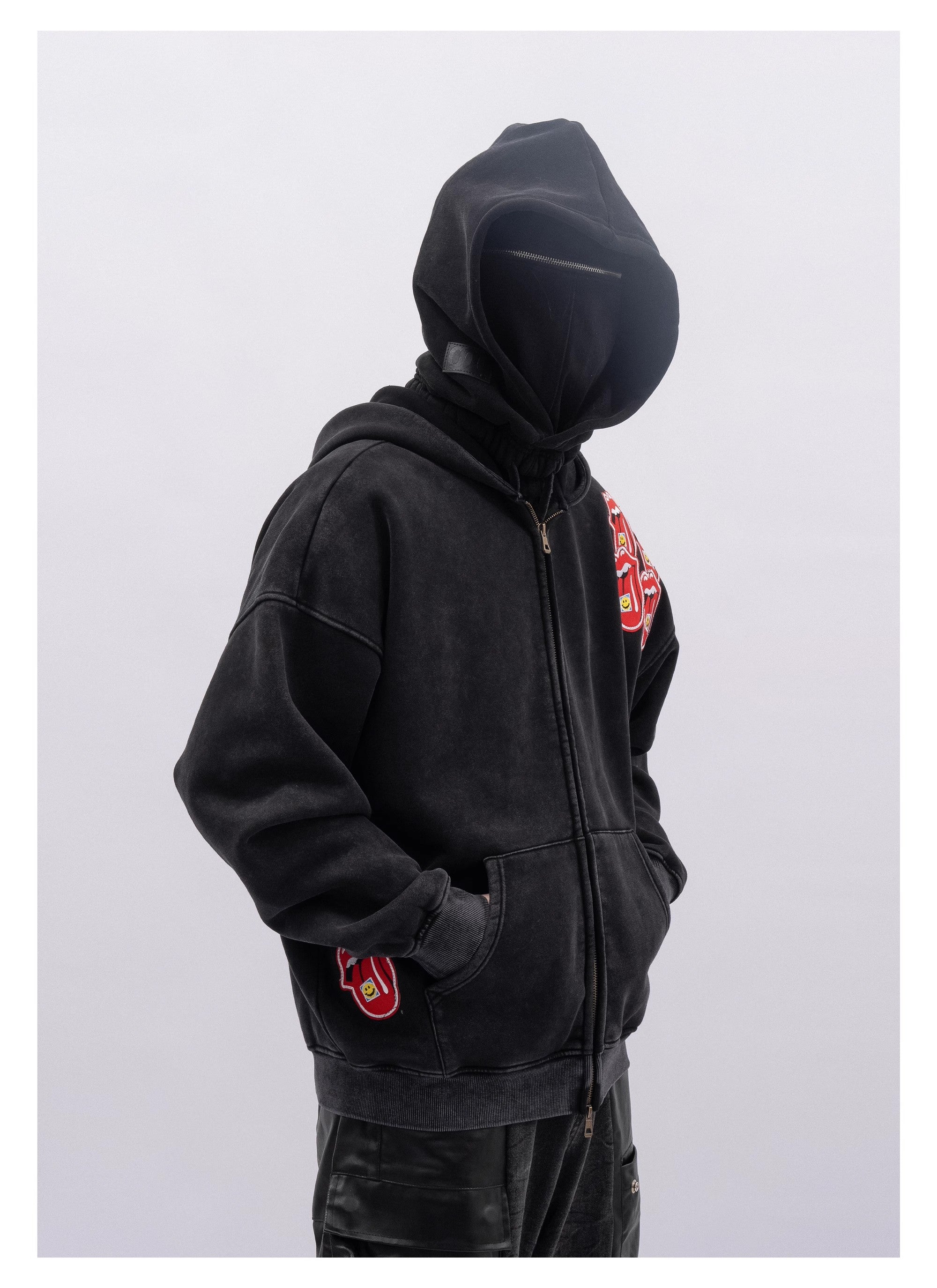NOTHINGNESS WORLD | Spiked Tongue Embroidery Zipper Hoodie