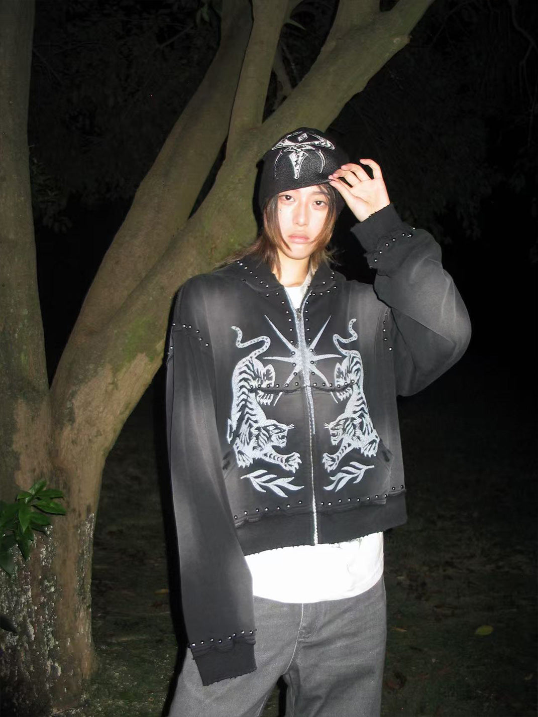 REGEN ZONE | "TIGER" Rivet Zip Up Hoodie