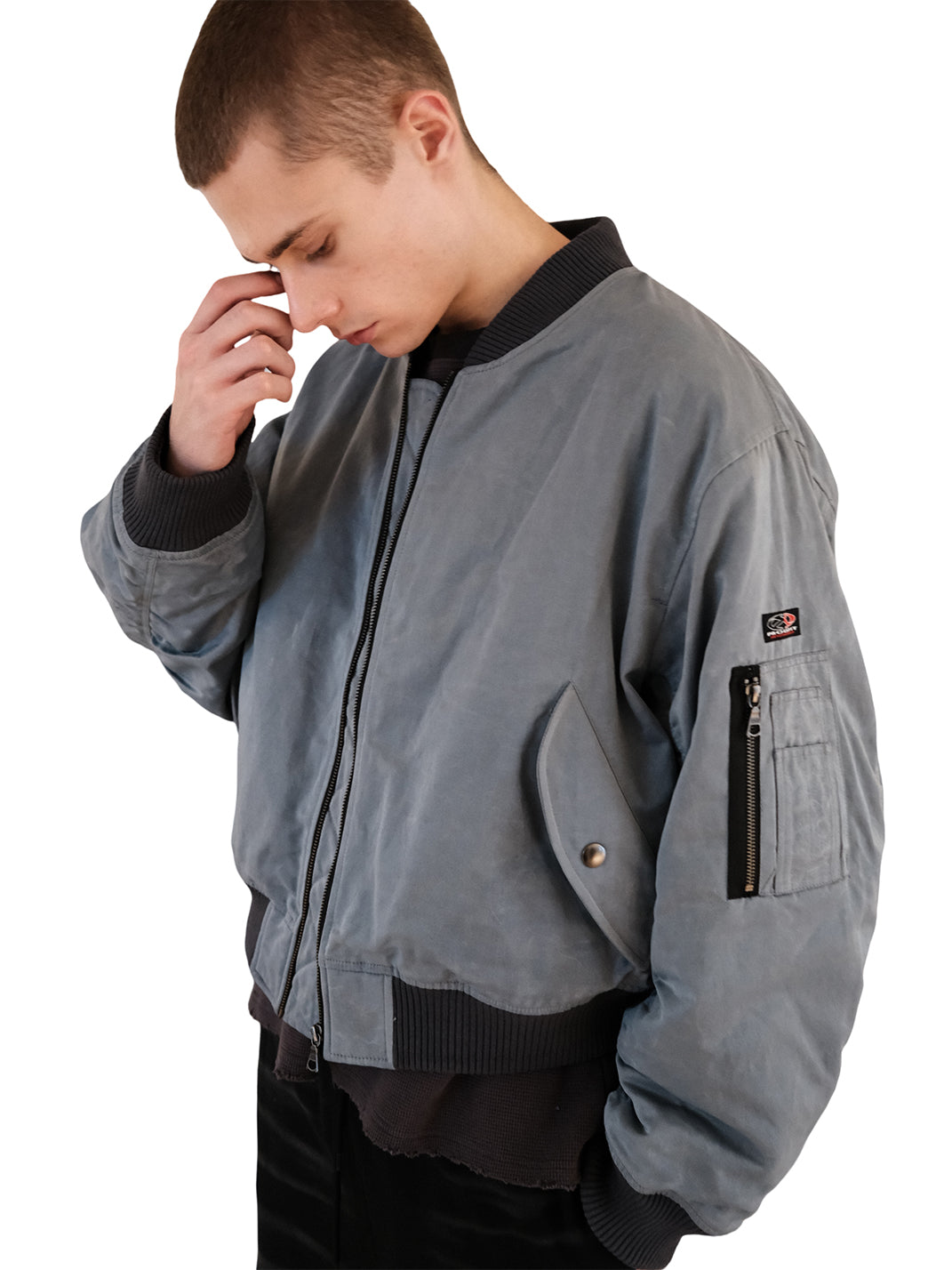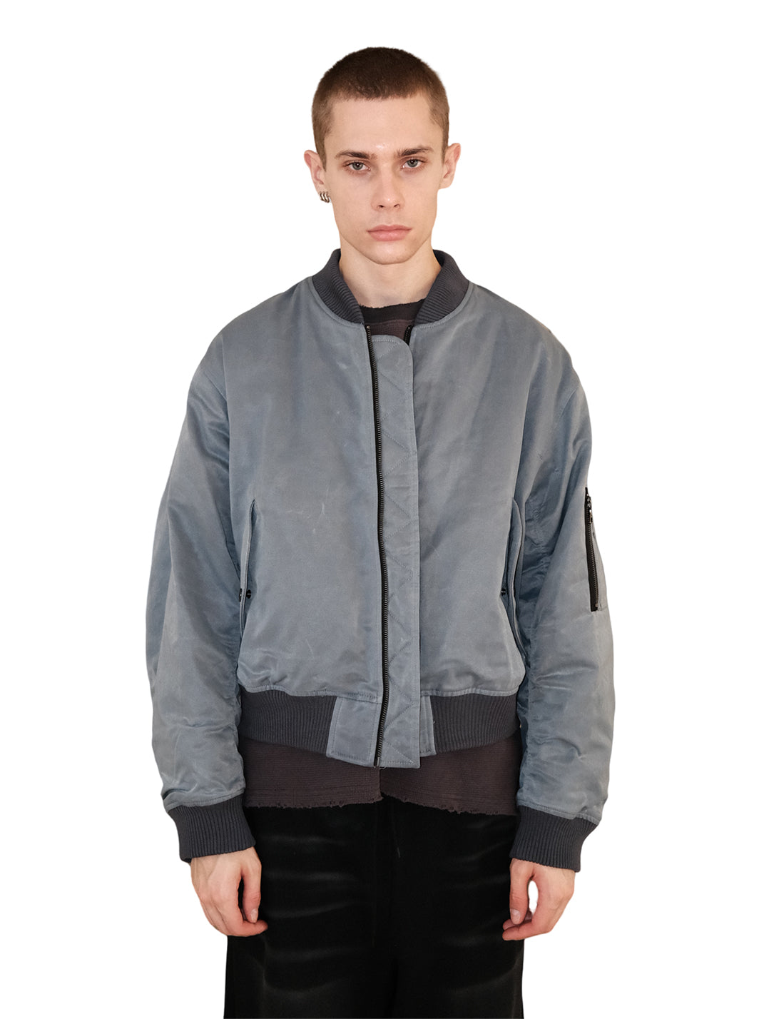 UNKNOWNWORLD | Waxed Bomber Jacket-Fog Blue