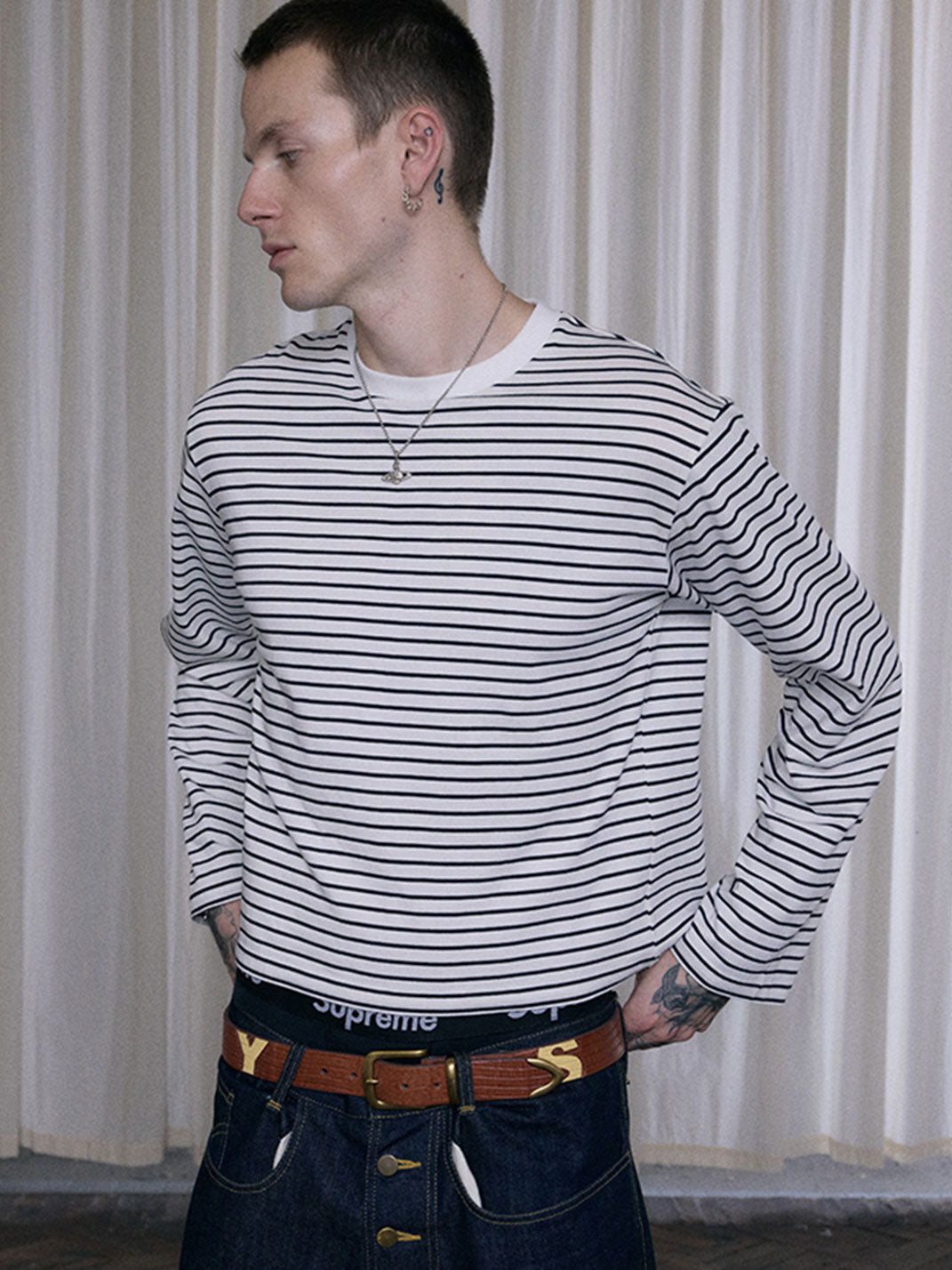 VEL PRO | Classic Striped Crewneck Long Sleeve Top