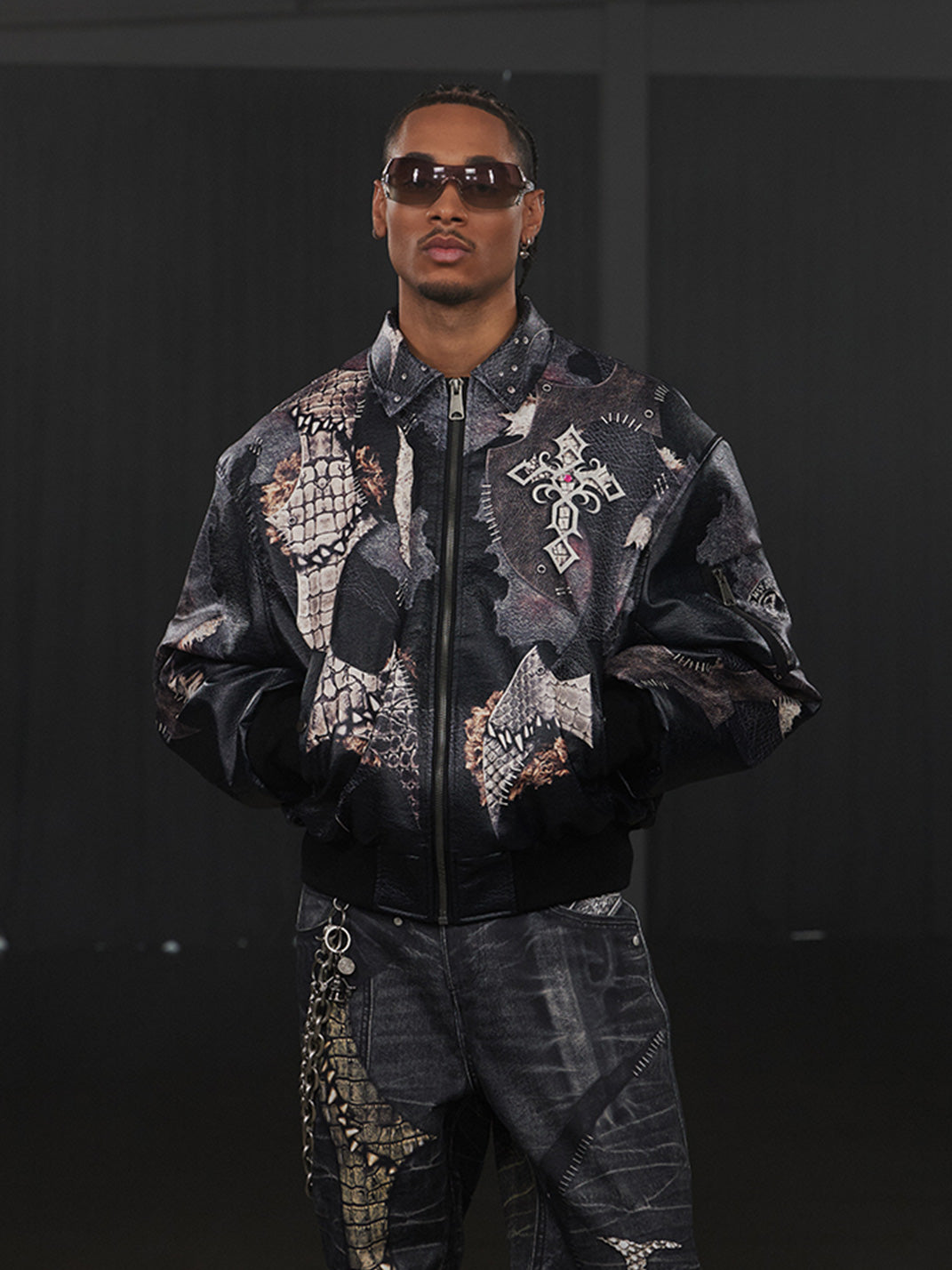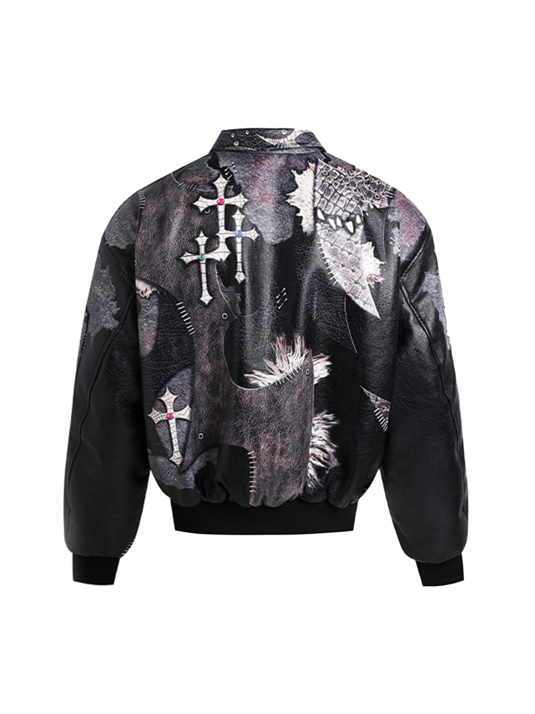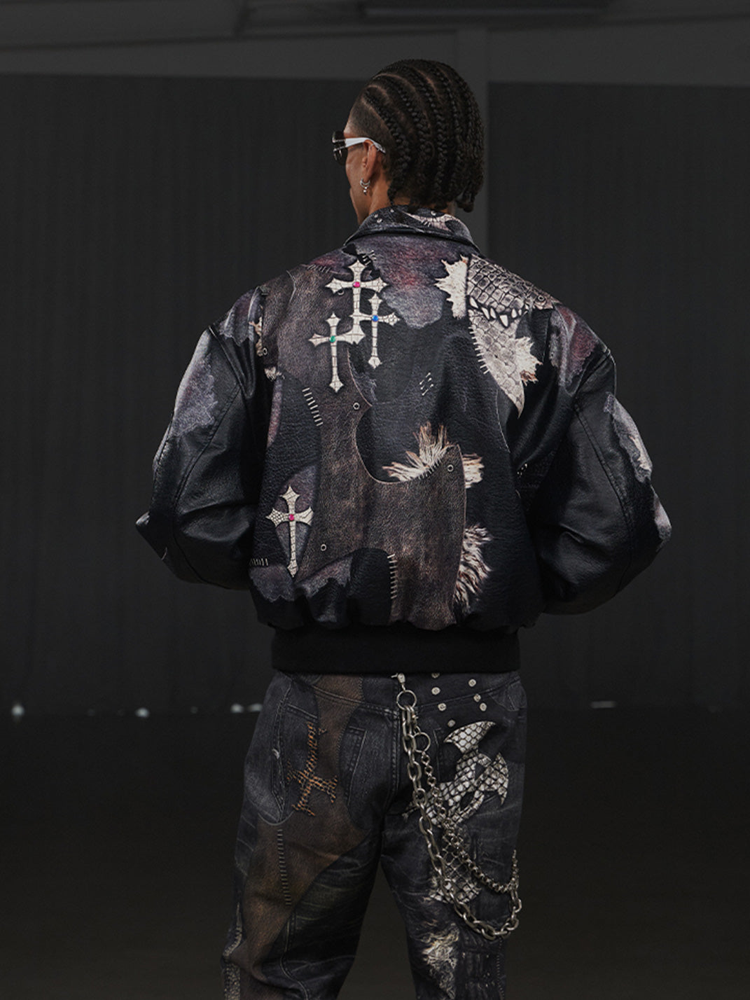 DND4DES | Goth Collage Cross Leather Jacket Skip to content