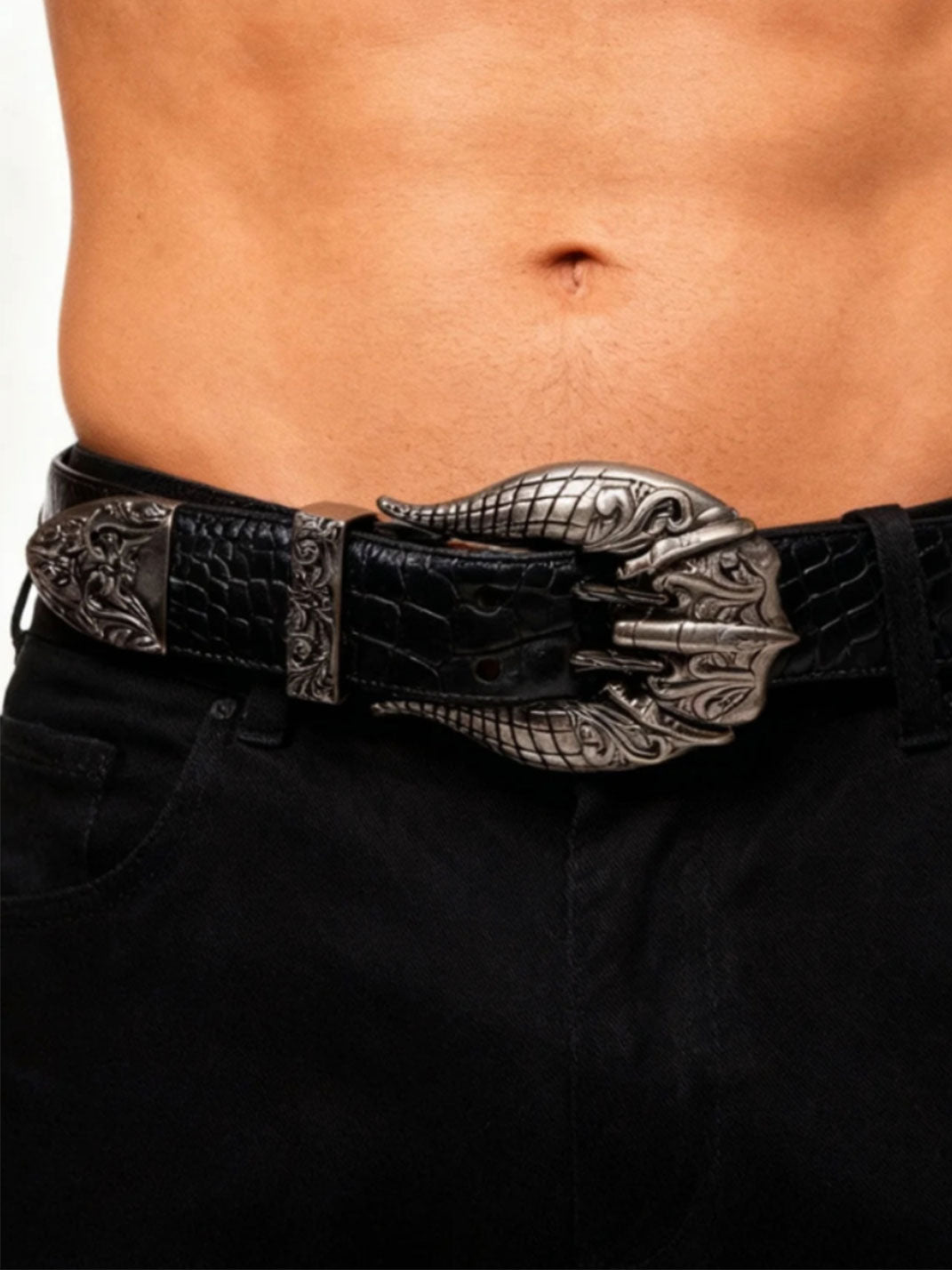 REGEN ZONE | Crocodile-Embossed Waxed Leather Belt
