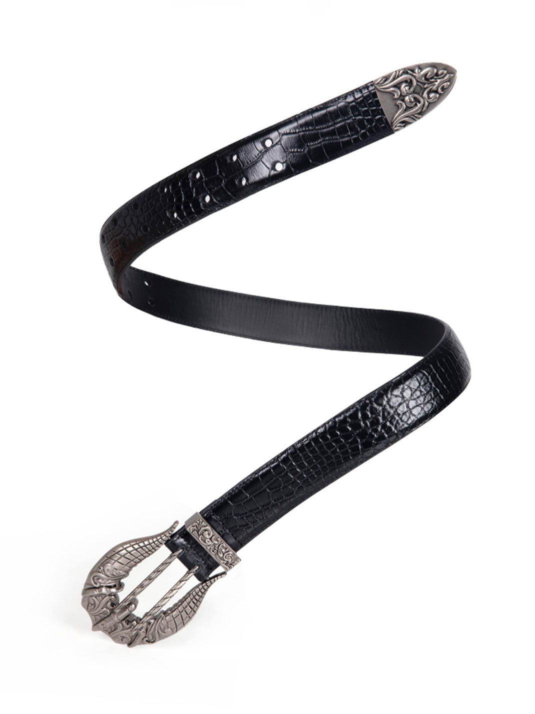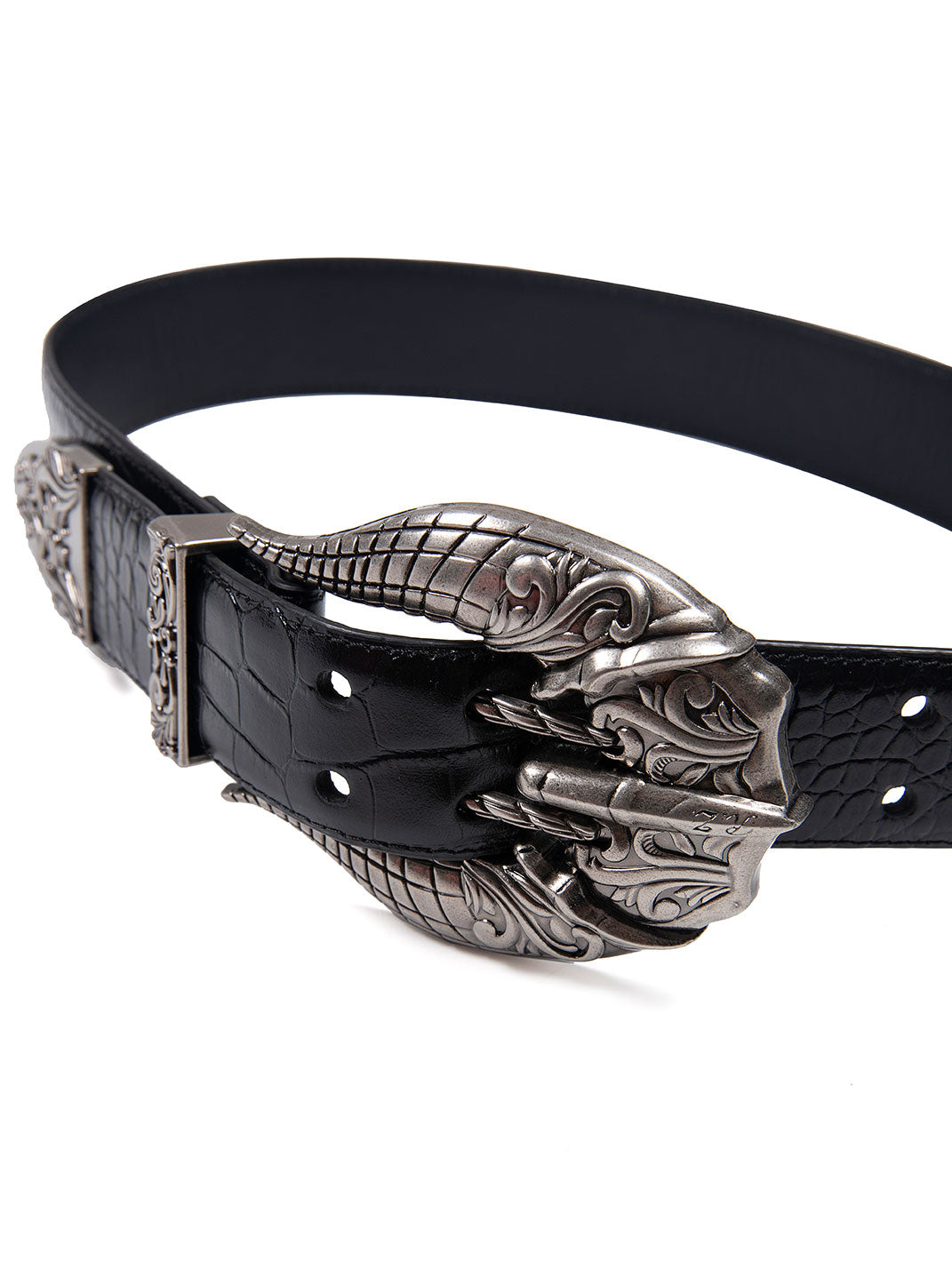 REGEN ZONE | Crocodile-Embossed Waxed Leather Belt Skip to content