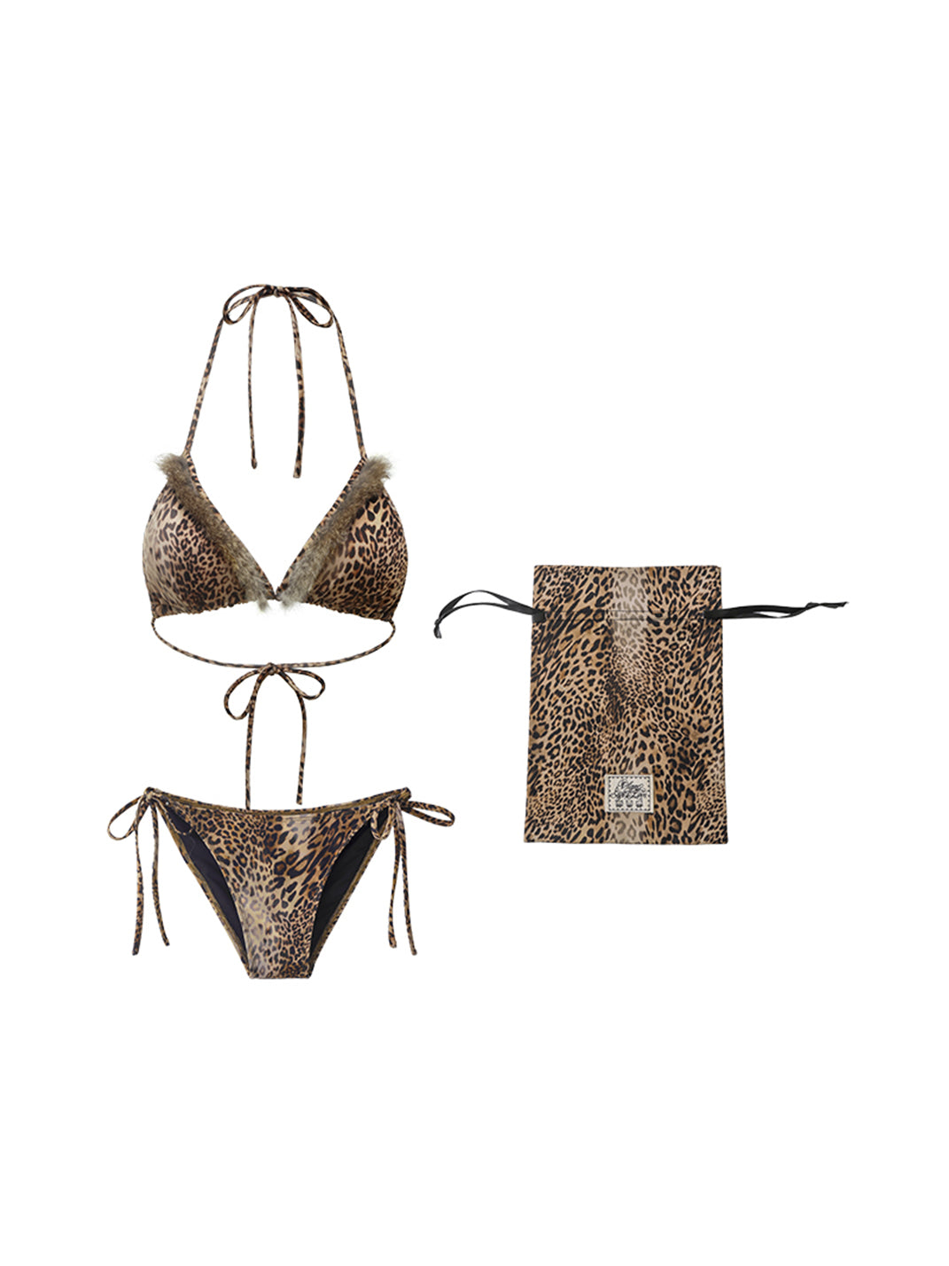 Crafted from exclusive, vintage-washed leopard-print swim fabric with a refined, soft hand feel, this set can be worn on its own or layered for effortlessly chic retro style.
