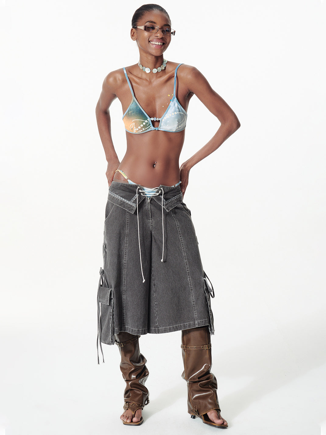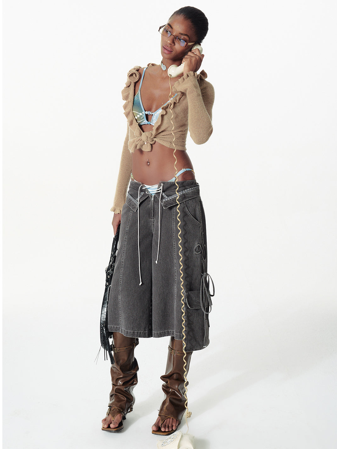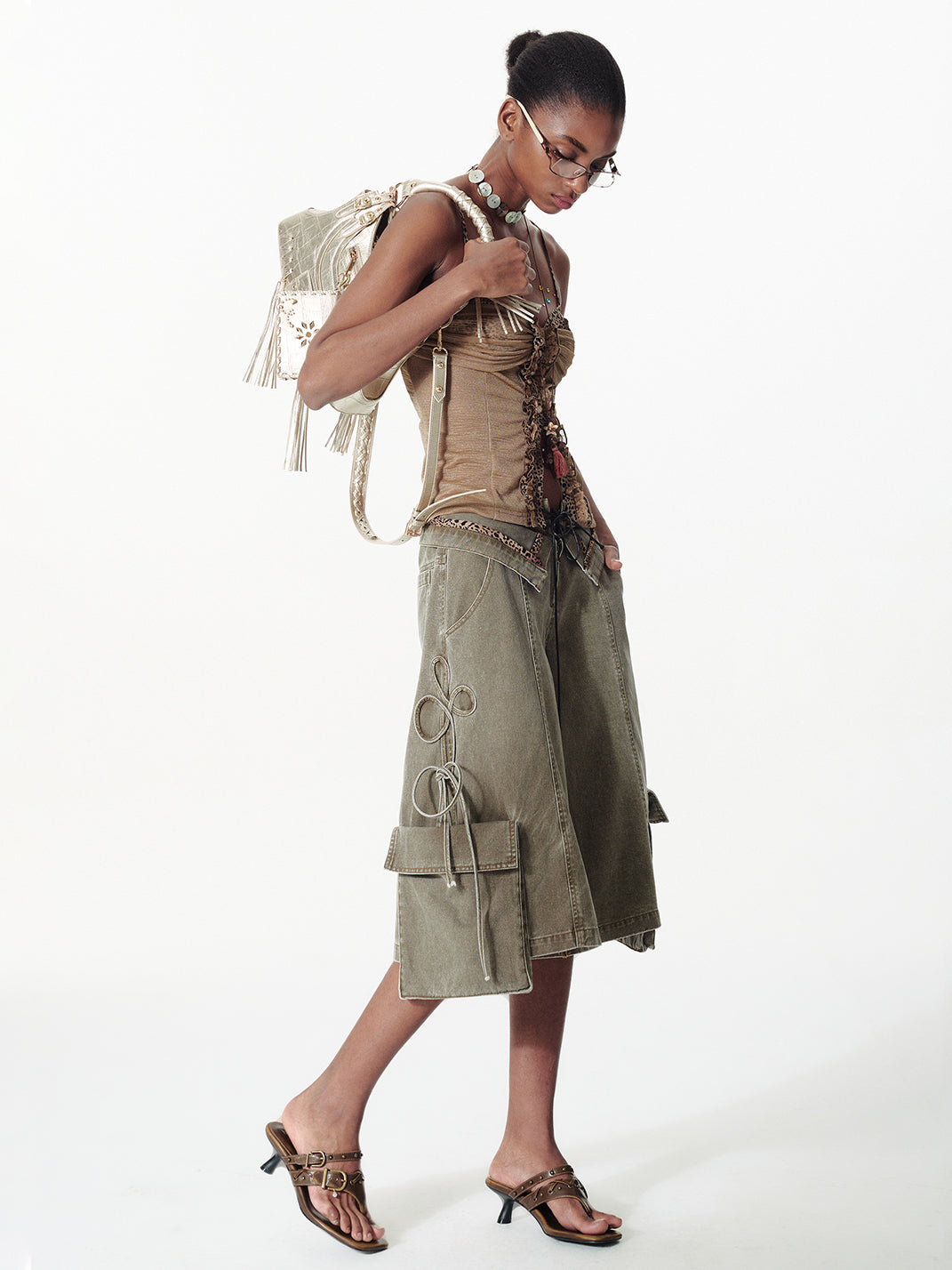 2th Desire | Deconstructed Double-Waist Leopard Contrast Cargo Shorts Skip to content