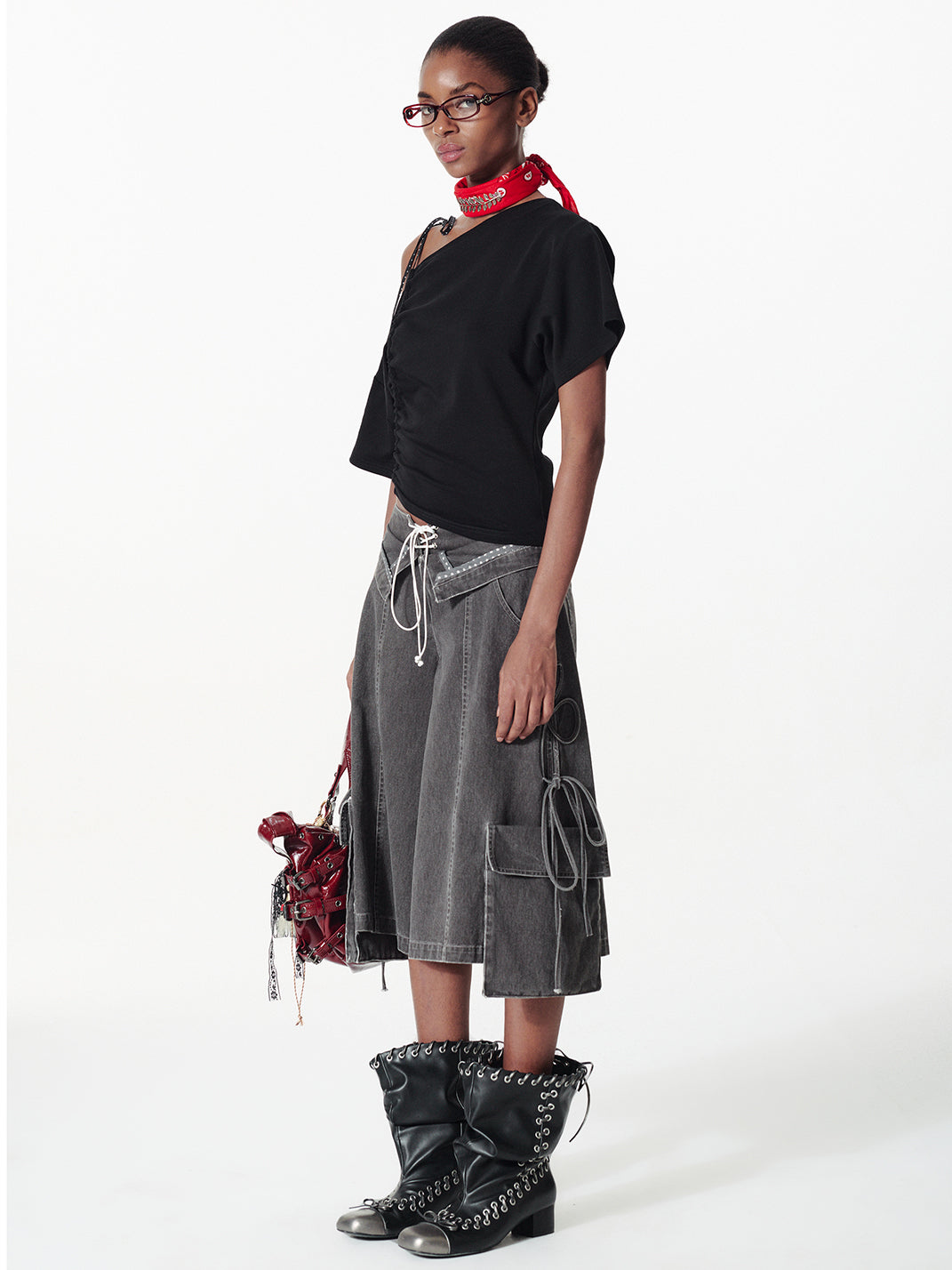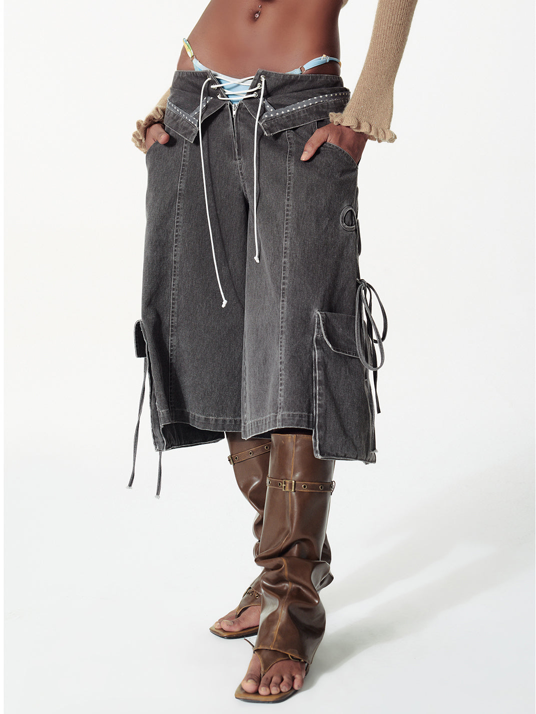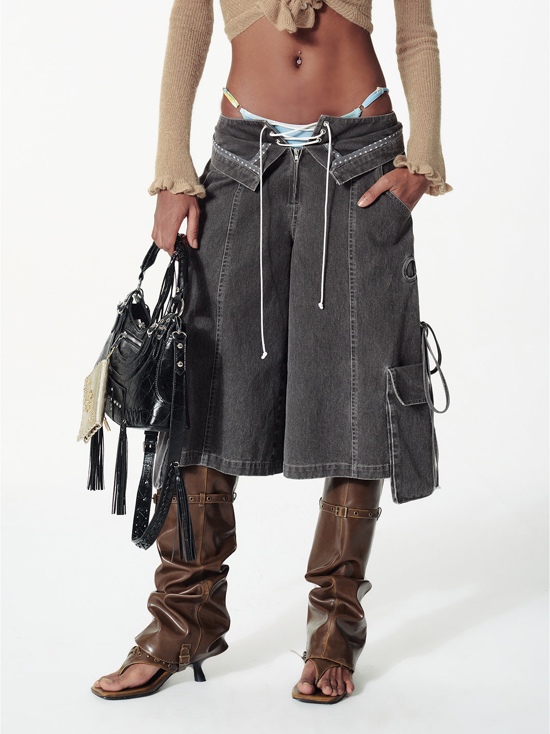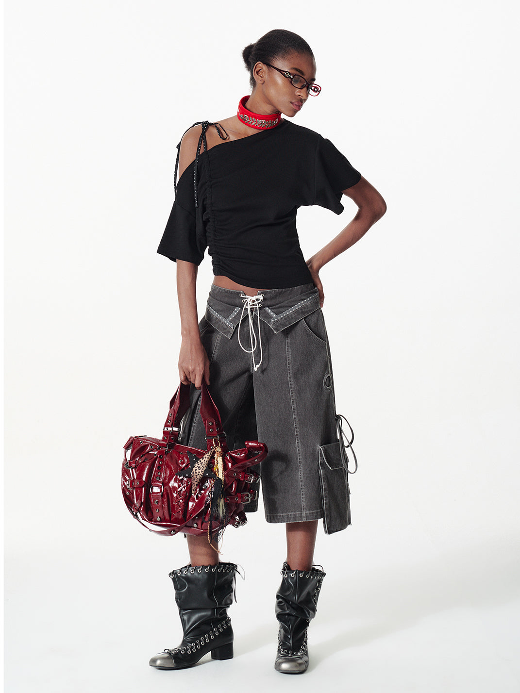 2th Desire | Deconstructed Double-Waist Leopard Contrast Cargo Shorts Skip to content