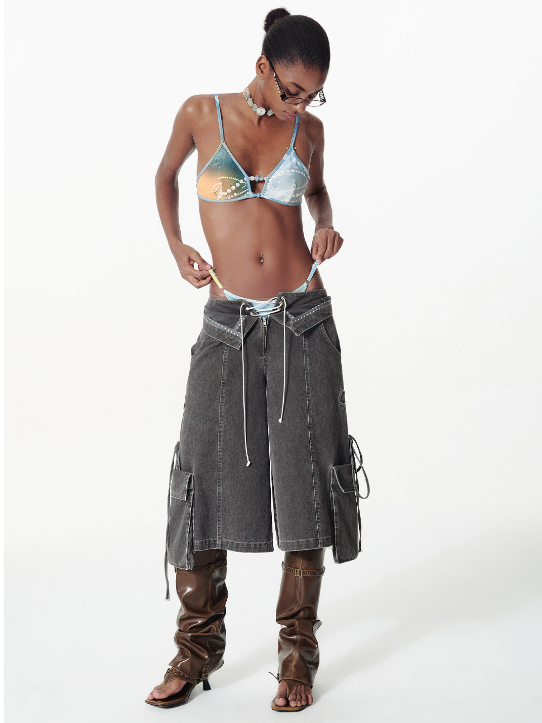 2th Desire | Deconstructed Double-Waist Leopard Contrast Cargo Shorts