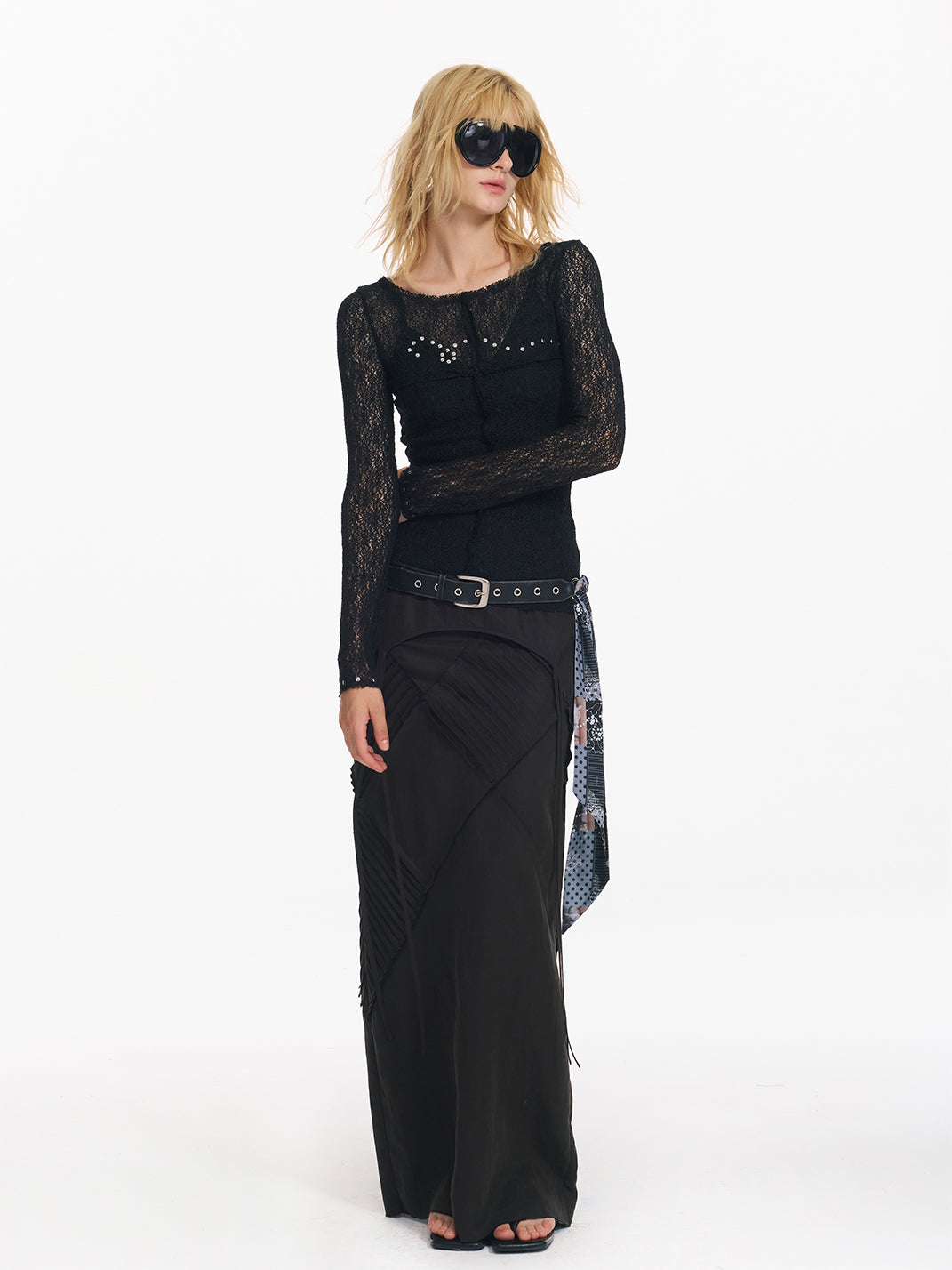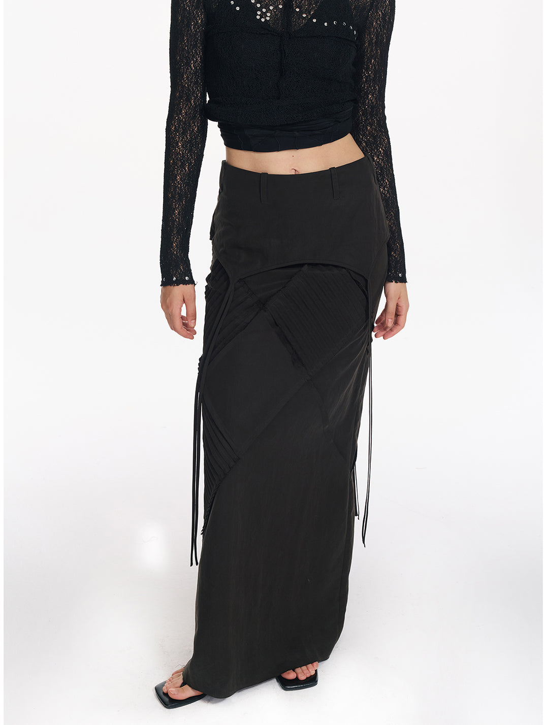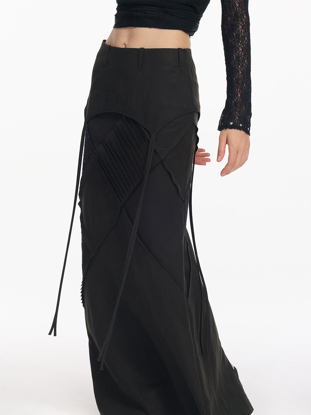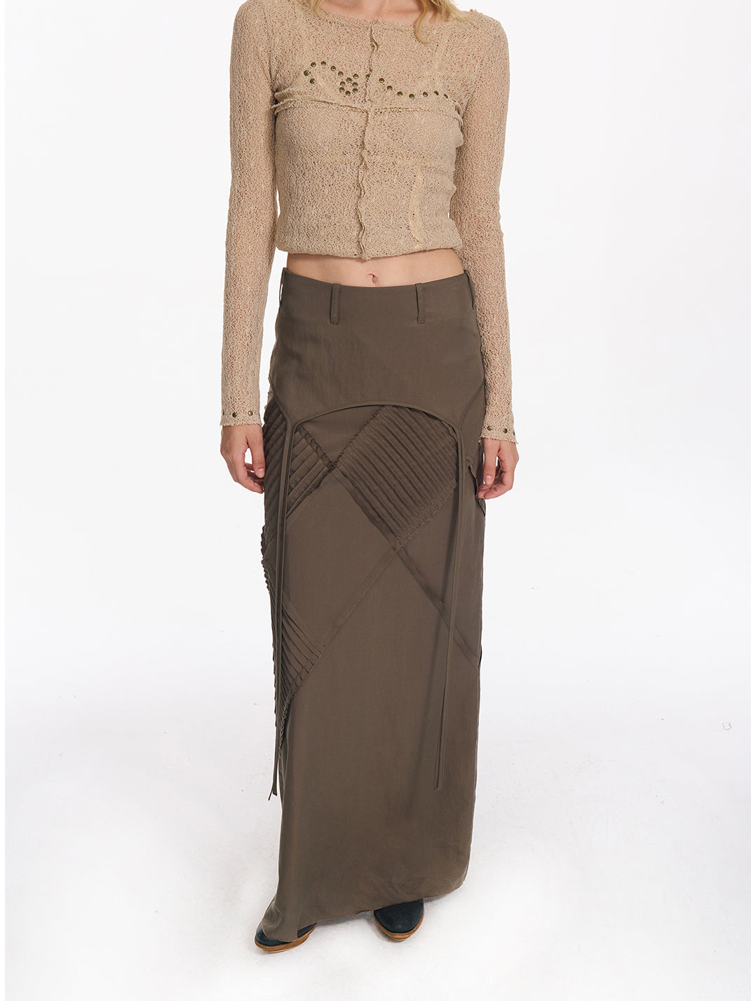 2th Desire | Vintage Argyle Tie Strap Slim Low Rise Maxi Skirt
