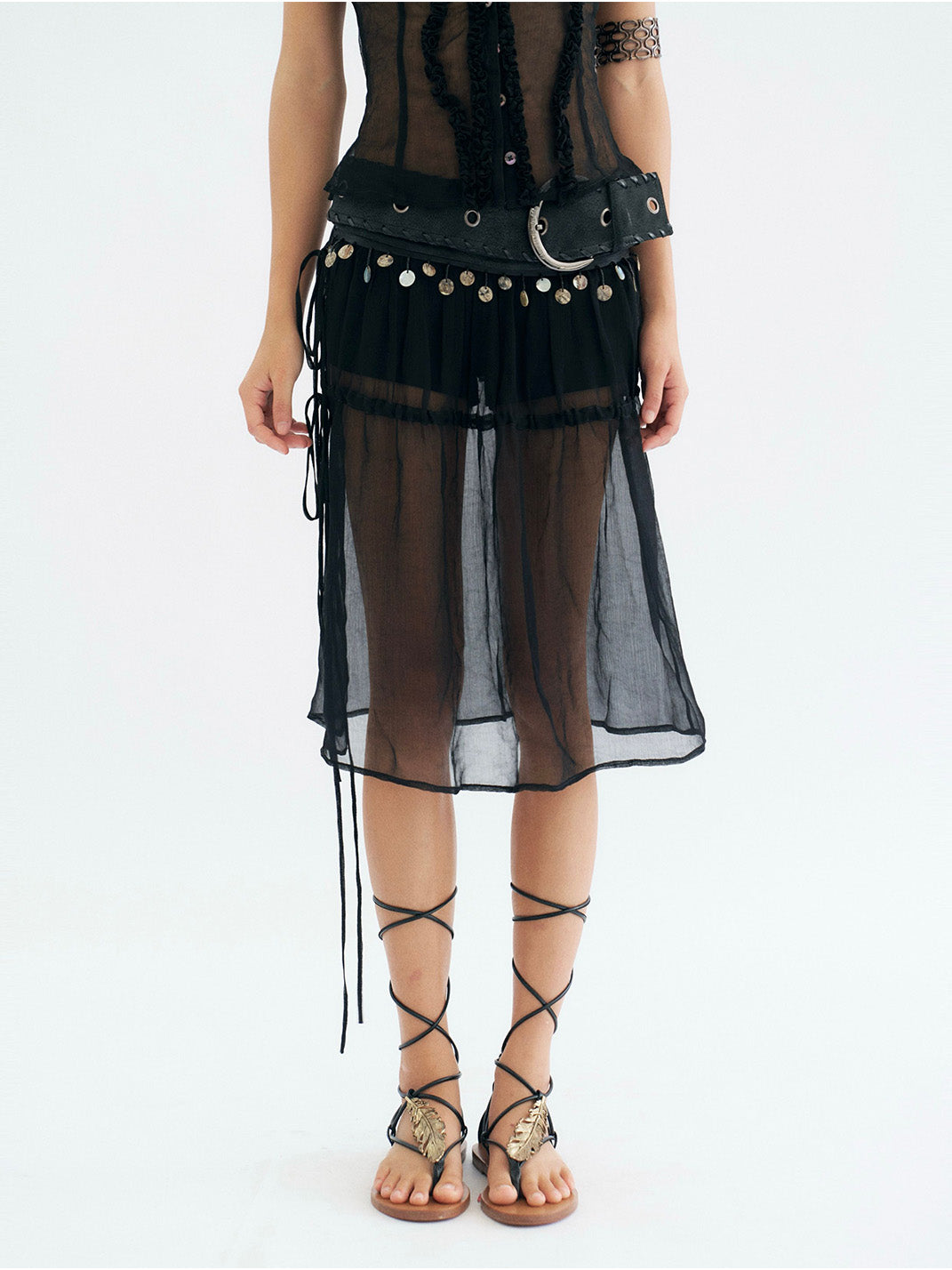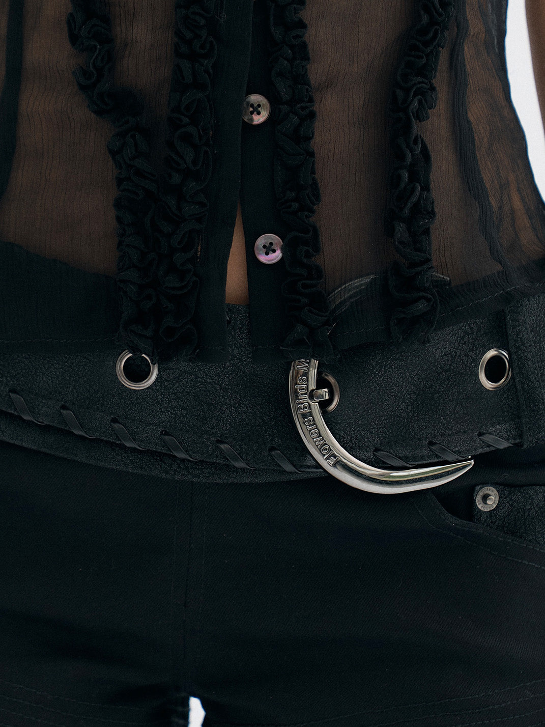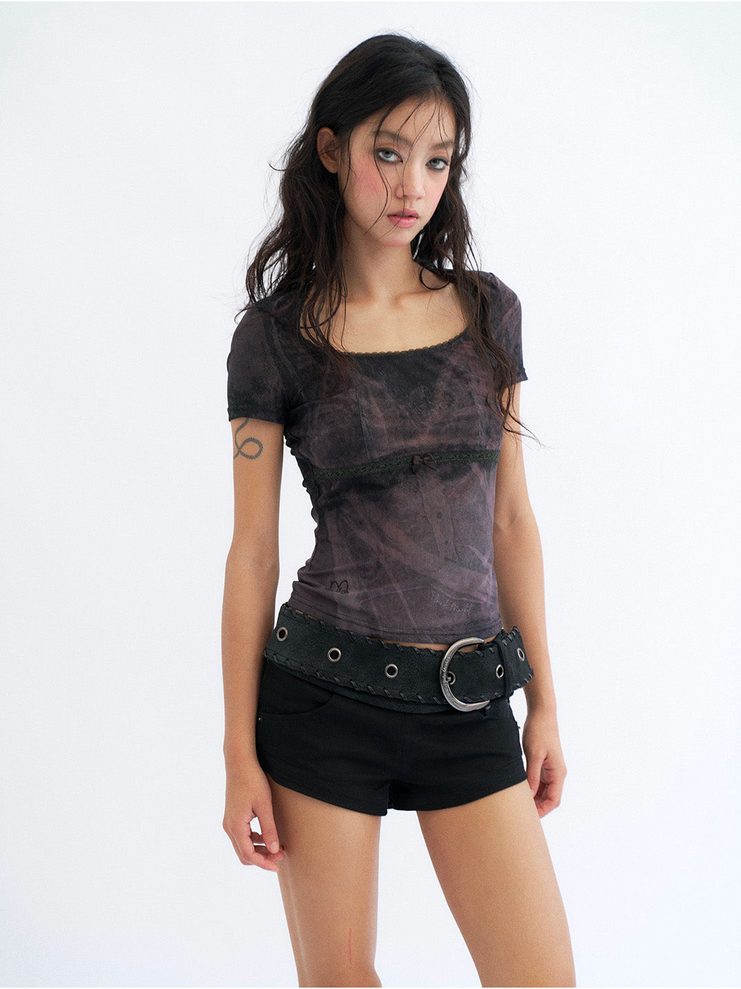 Flowers birds Market | Detachable Shell & Sheer Panel Denim PU Shorts Skip to content