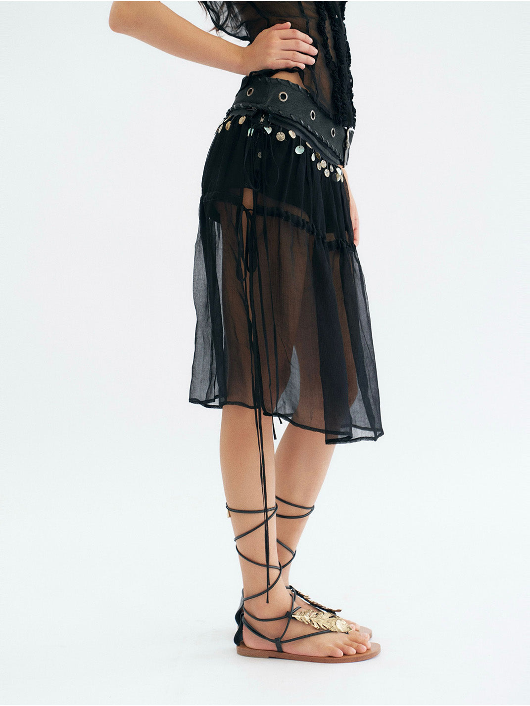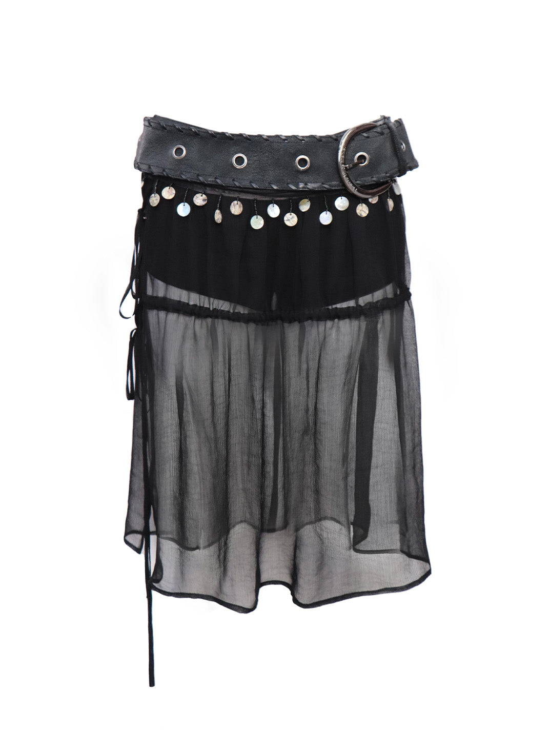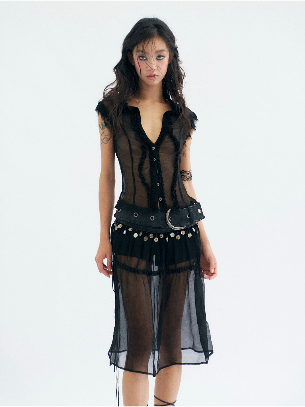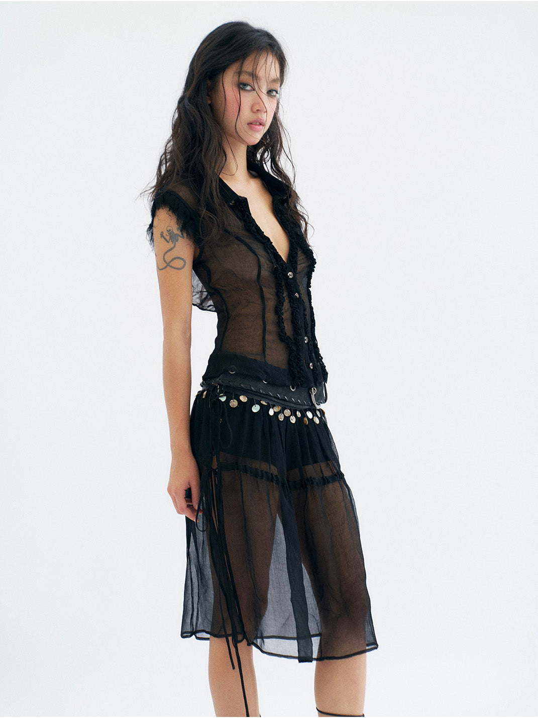 Flowers birds Market | Detachable Shell & Sheer Panel Denim PU Shorts Skip to content