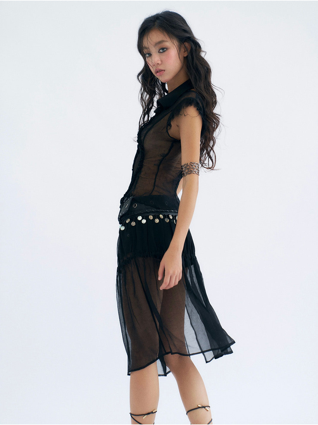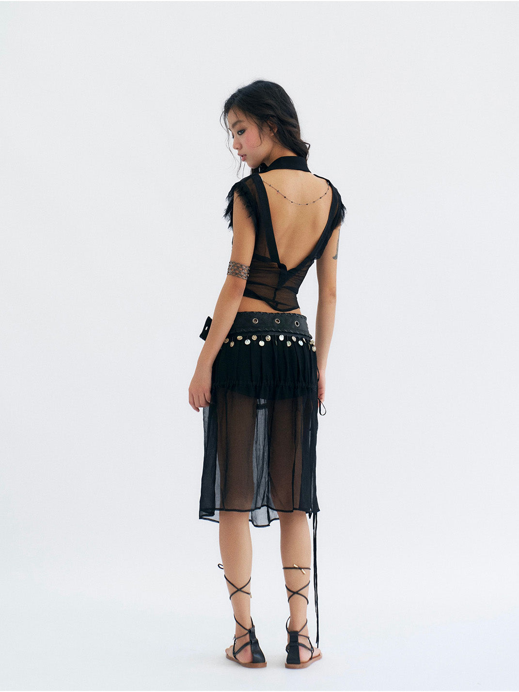 Flowers birds Market | Detachable Shell & Sheer Panel Denim PU Shorts