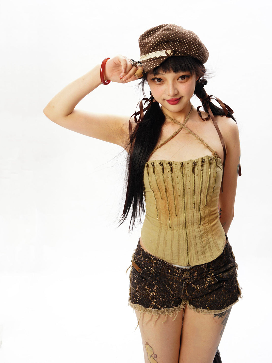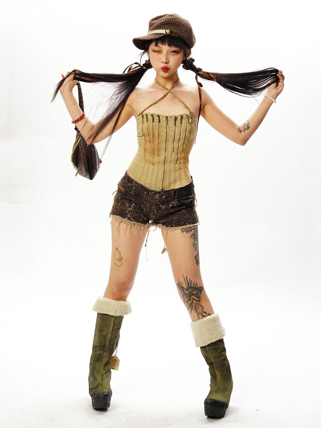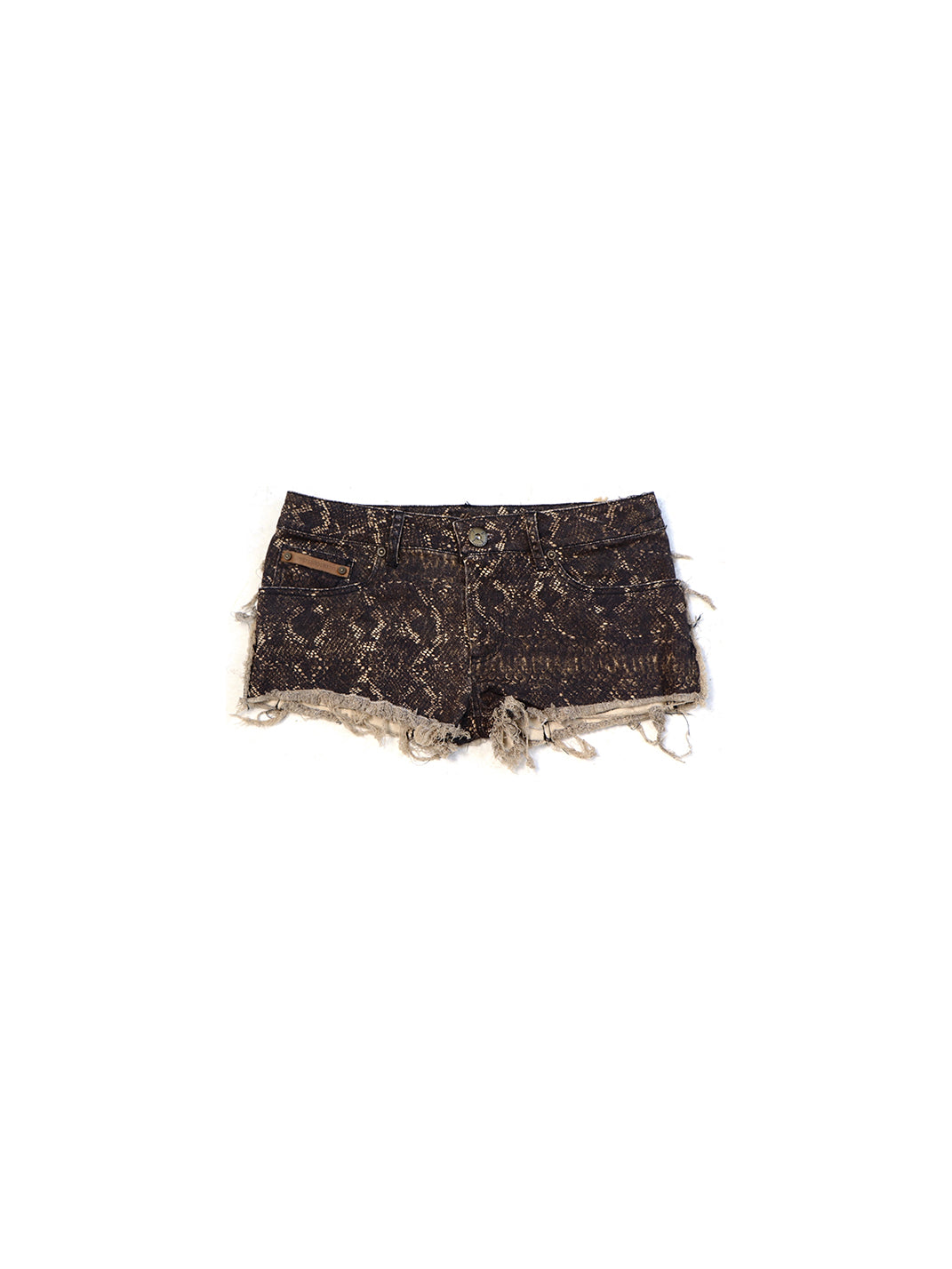Flowers birds Market | Black & Gold Snake Print Distressed Low Rise Cutoff Shorts