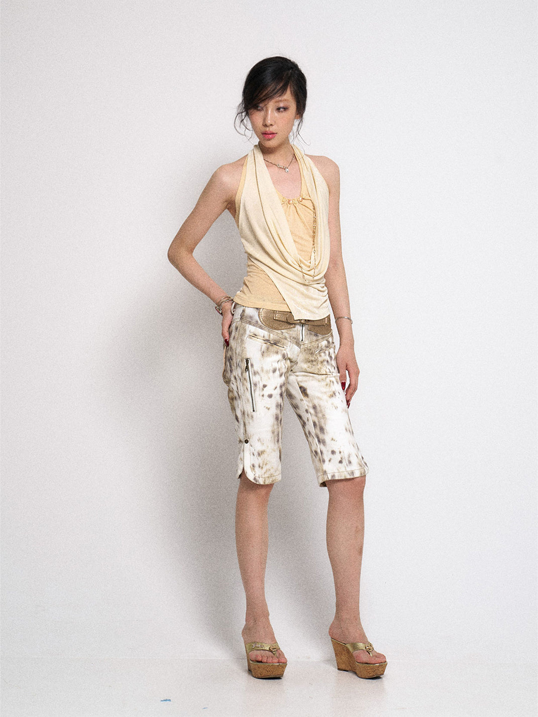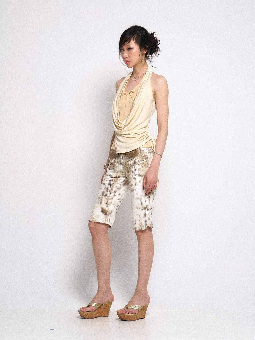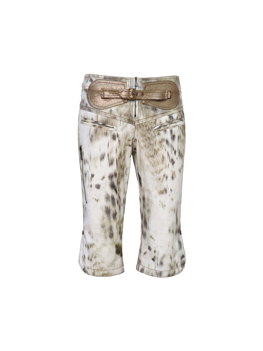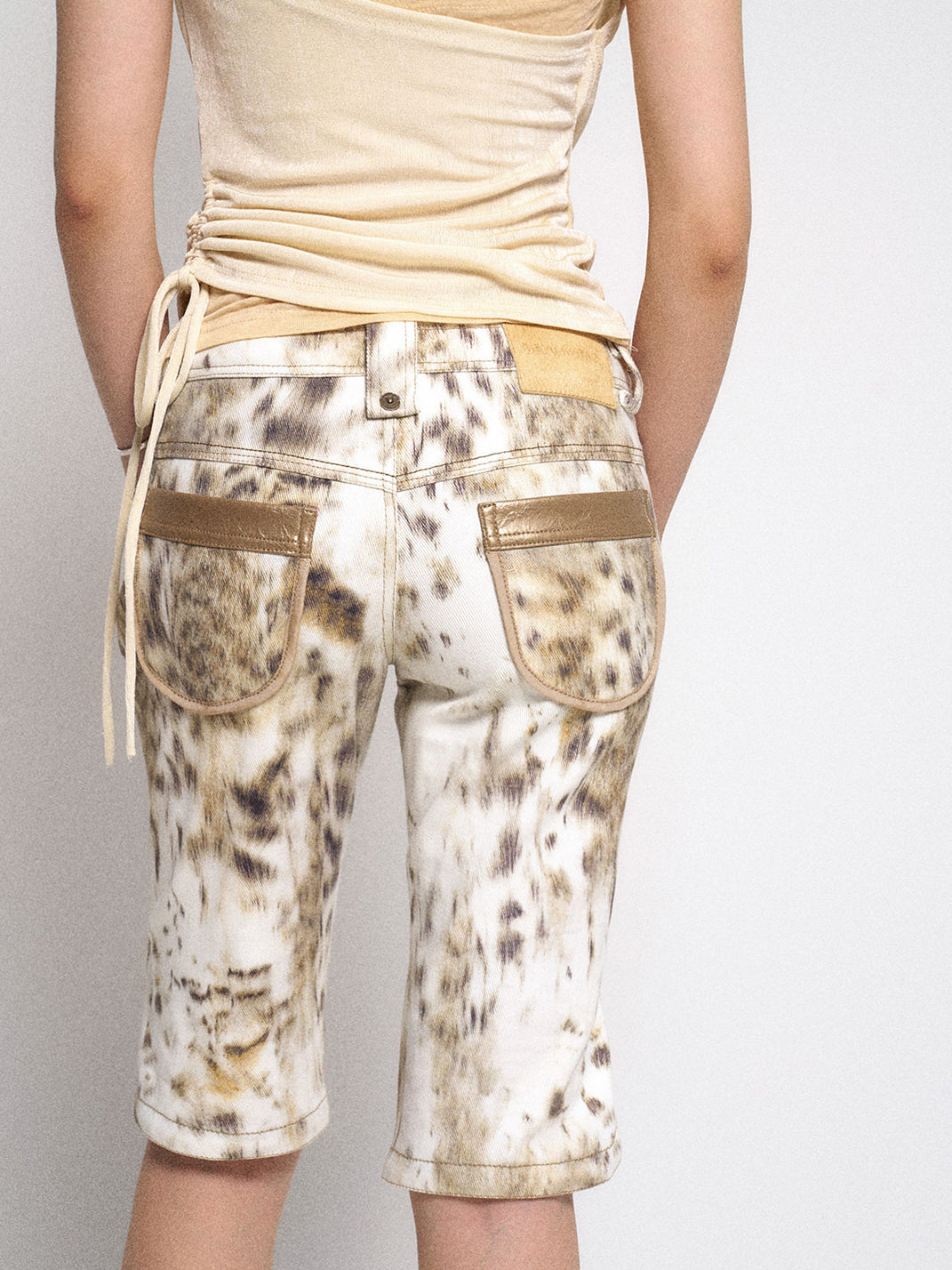Flowers birds Market | Ombre Leopard Denim PU Belted Slim Shorts Skip to content