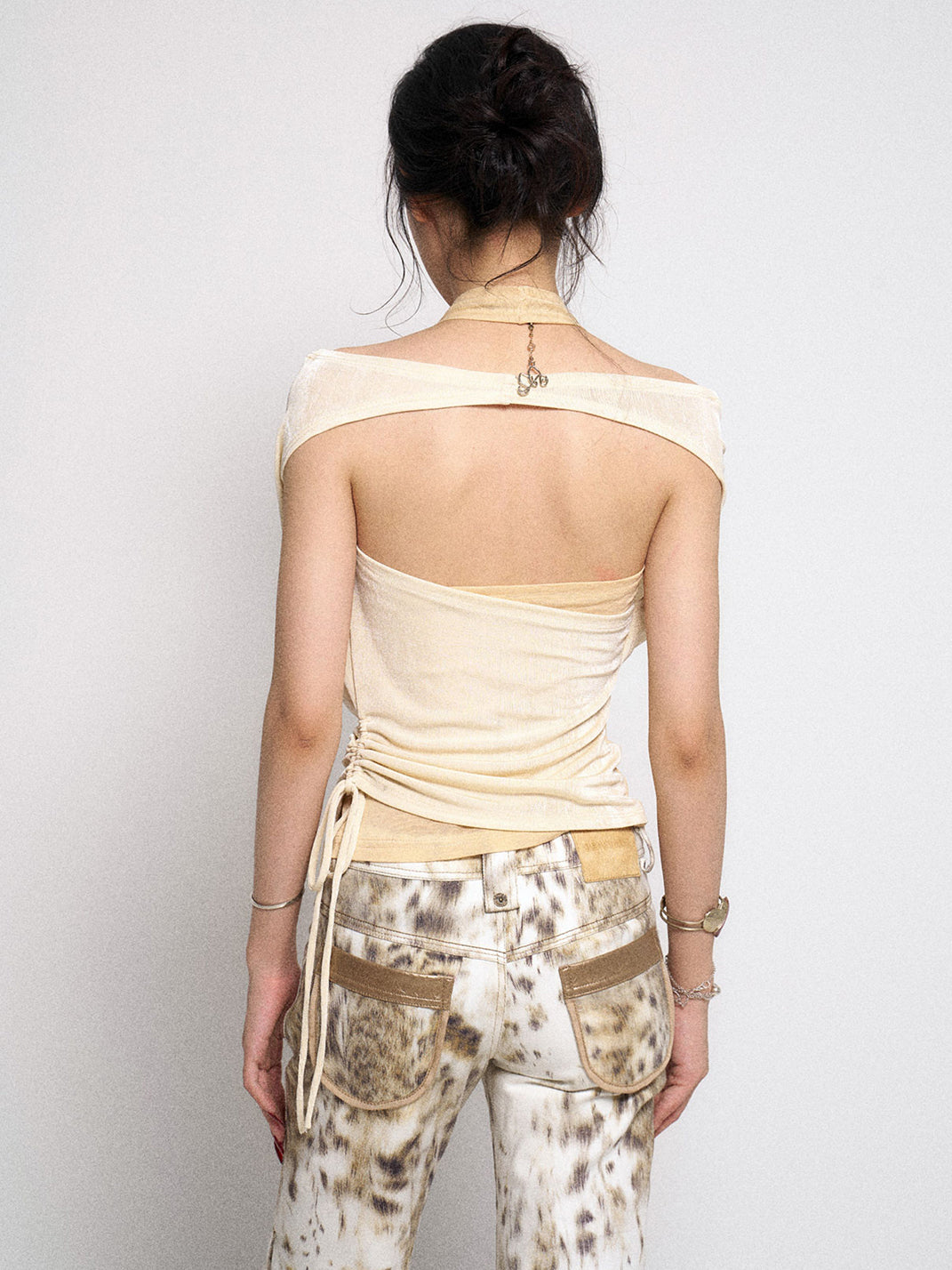 Flowers birds Market | Ombre Leopard Denim PU Belted Slim Shorts