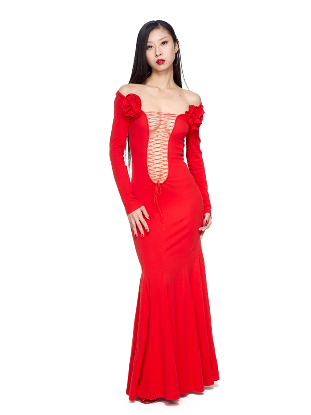HUDIEGONGZHU | Rversible Crimson Dress Skip to content