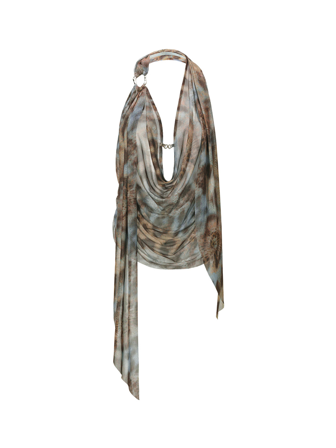 JYOSEI | Blue Leopard Drape Halter Top Skip to content