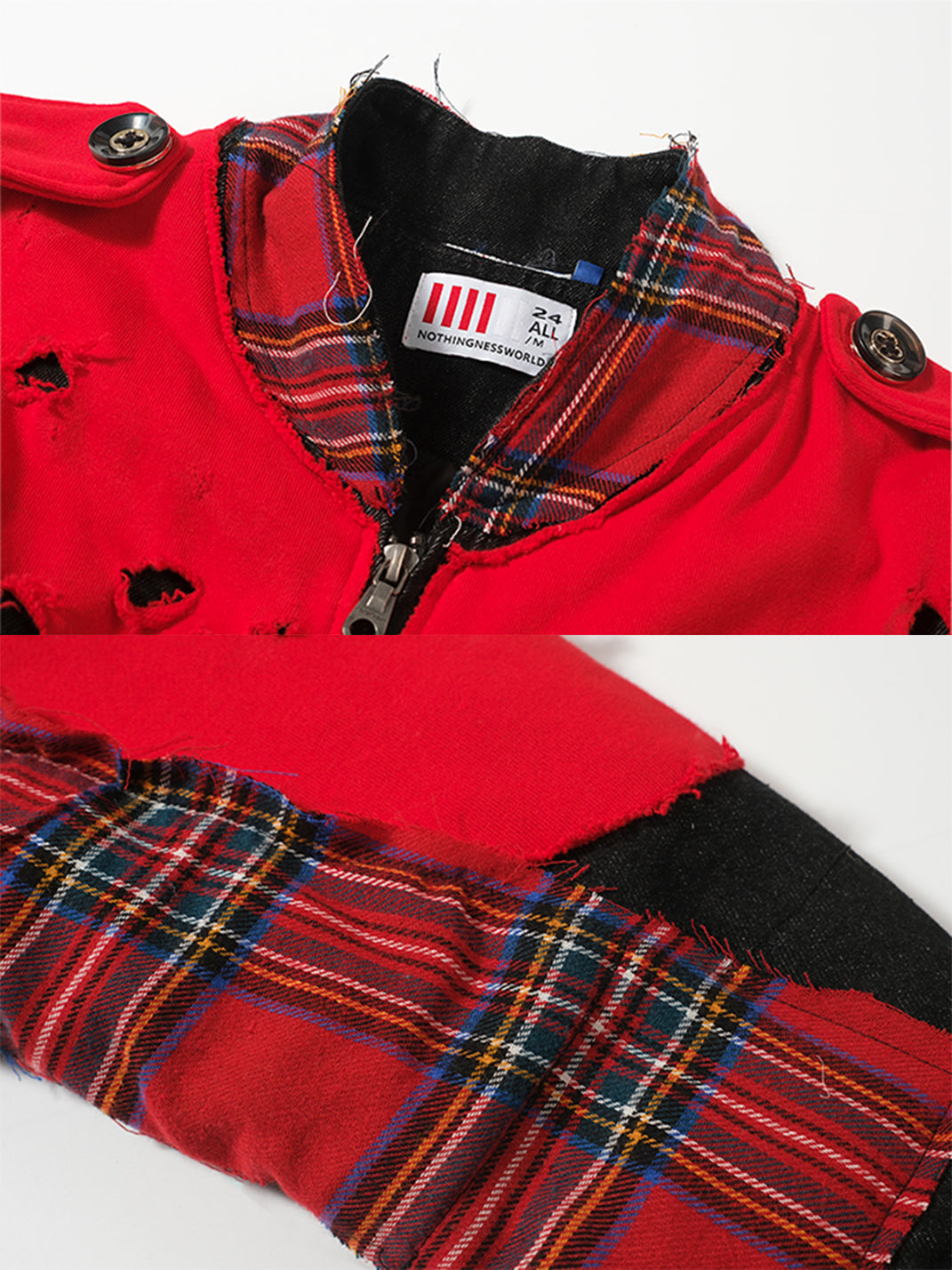 NOTHINGNESS WORLD | Conceptual Ripped Red Plaid Fitted Jacket
