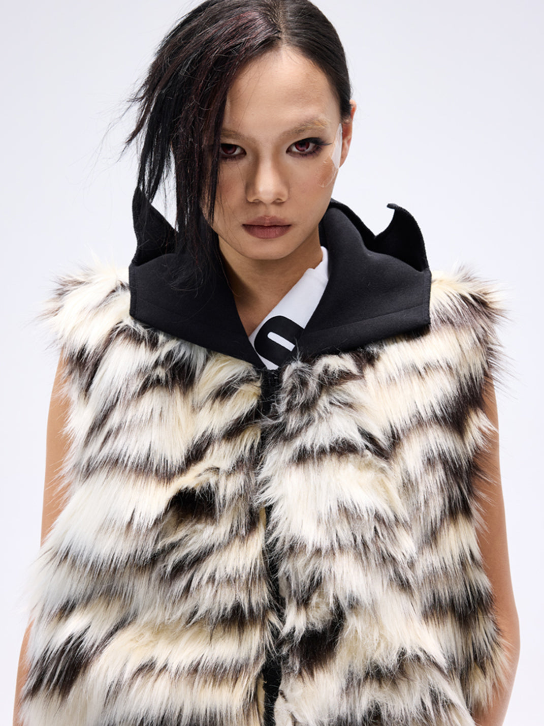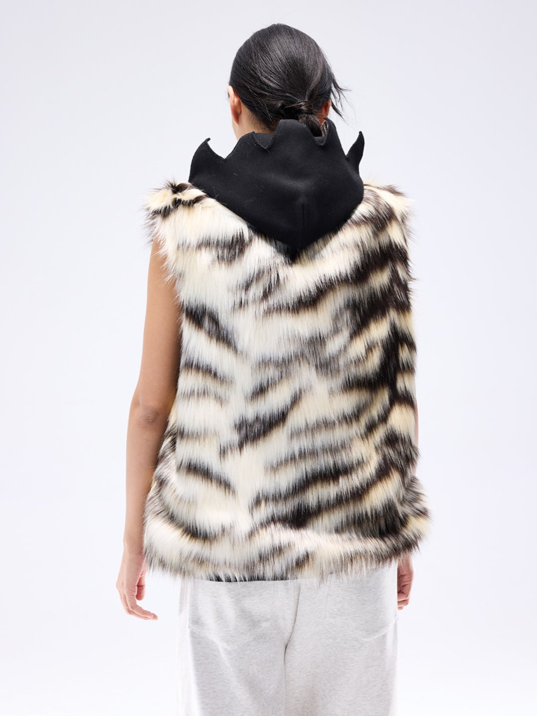 NOTHINGNESS WORLD | Zebra Furry Crown Vest - Black Skip to content
