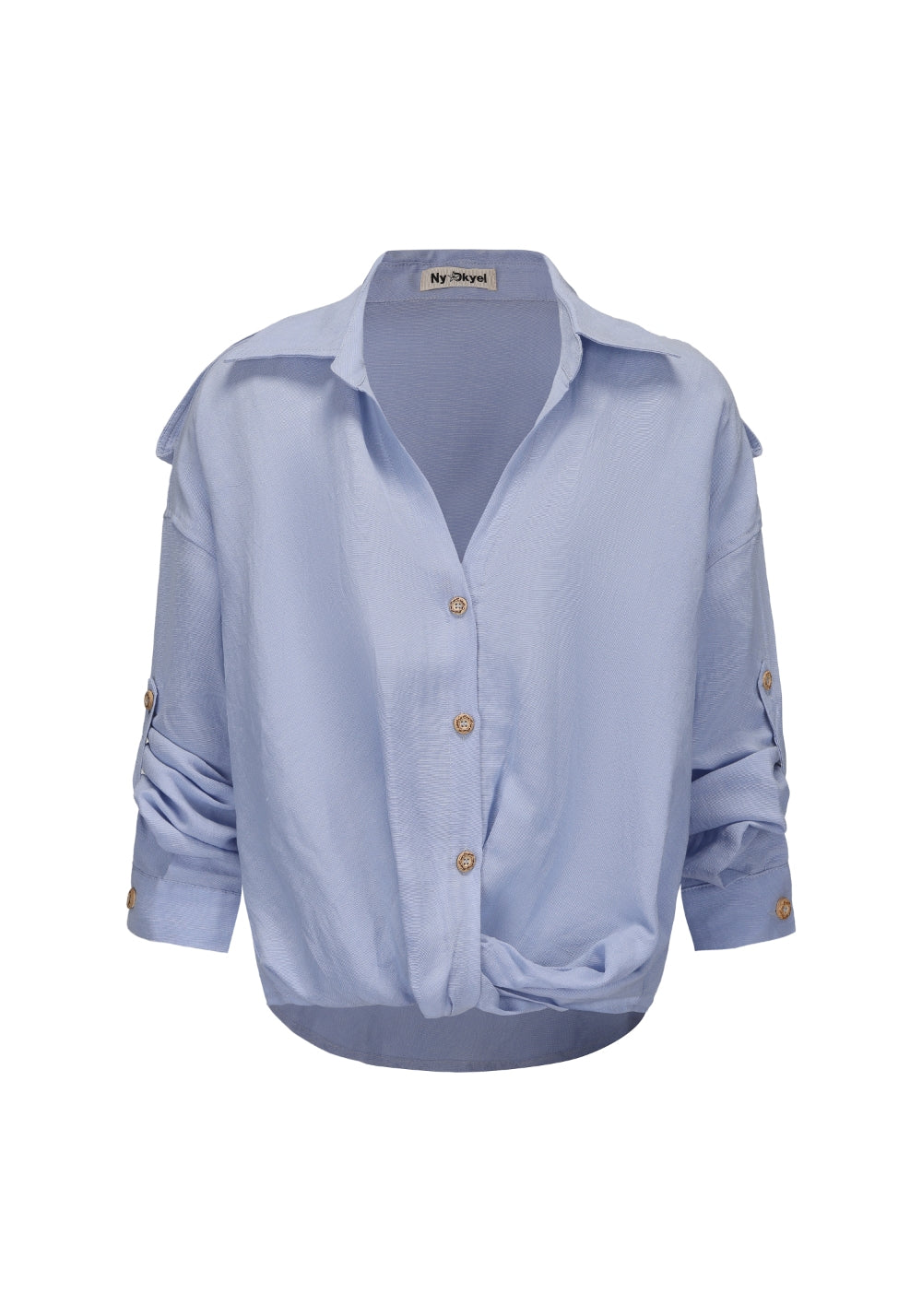 NyDkyel丨Linen Cotton Tencel Knotted Trim Adjustable Sleeve Sun Shirt