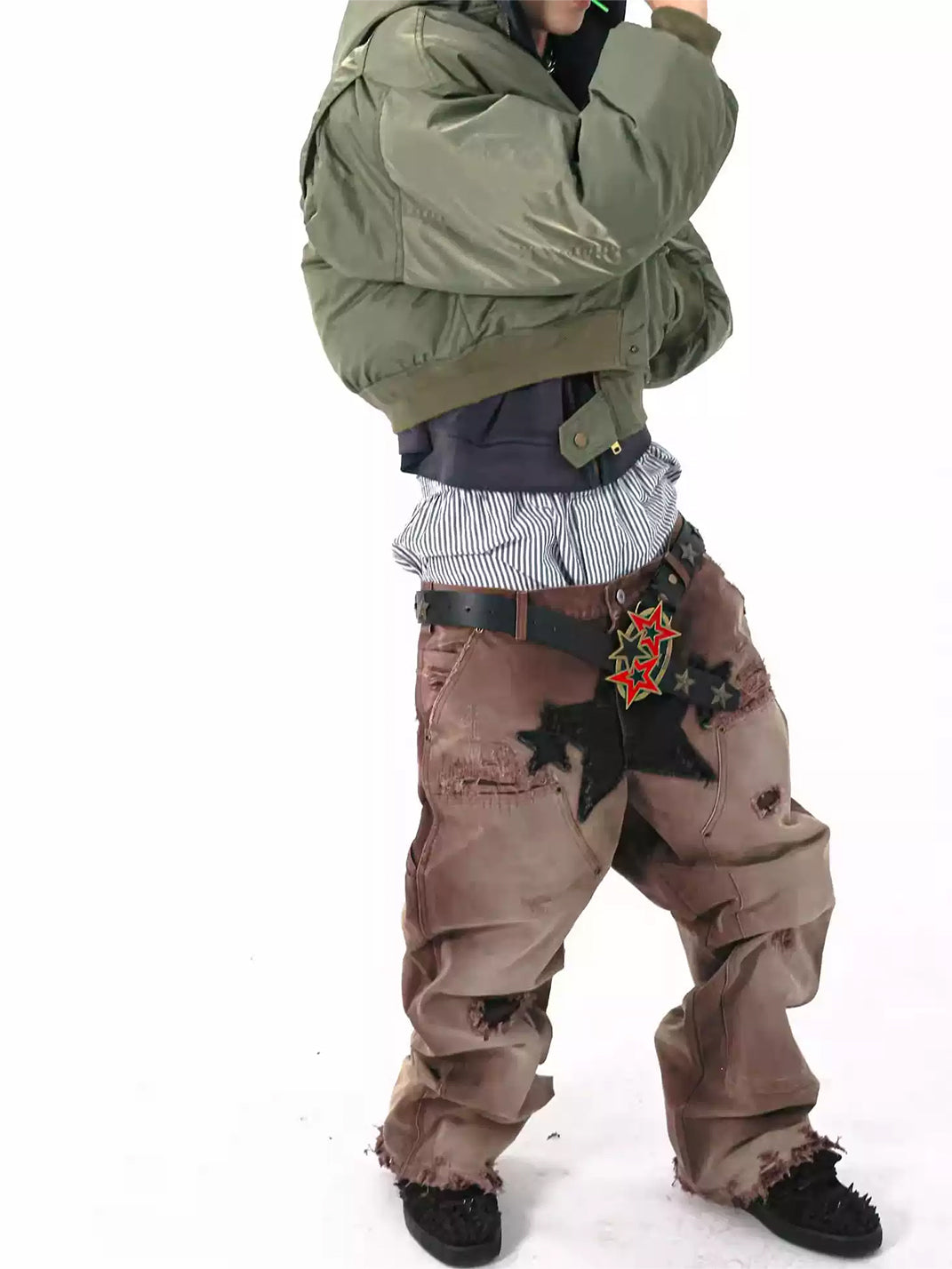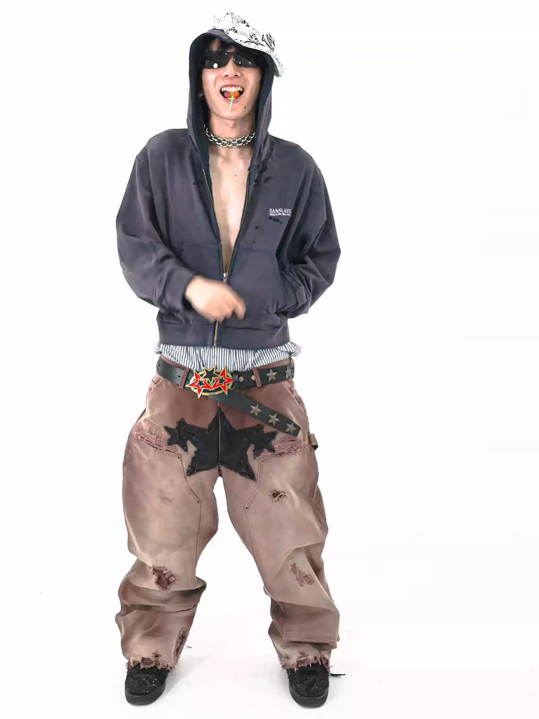 SANSLAWS丨Distressed Star Patching Jeans Skip to content