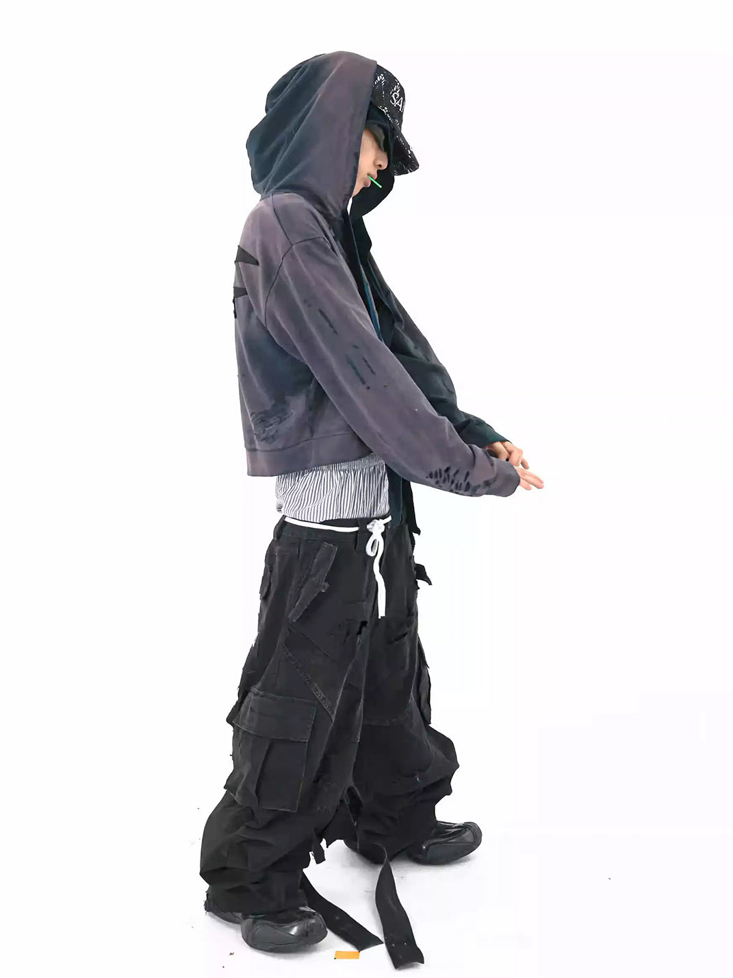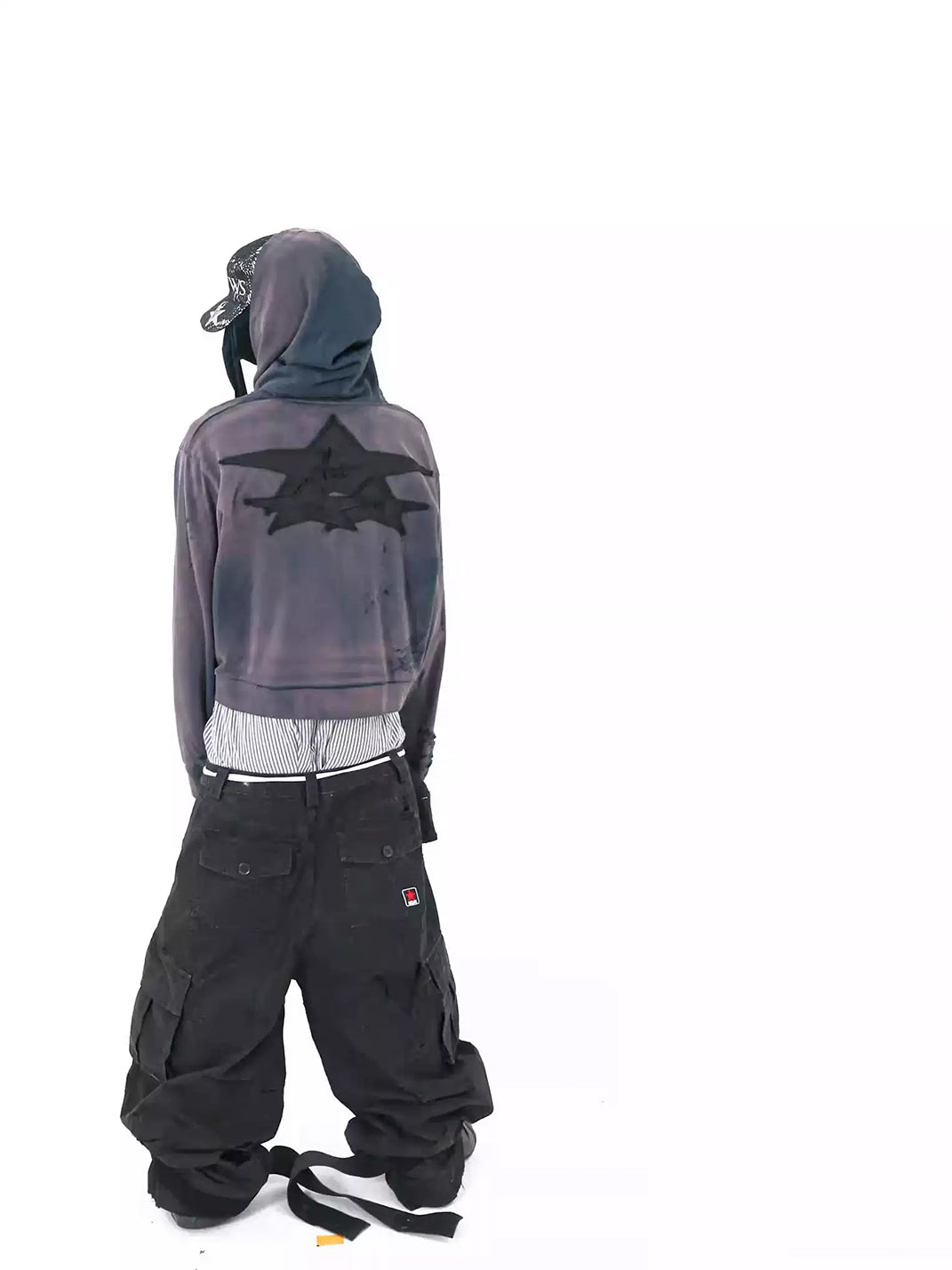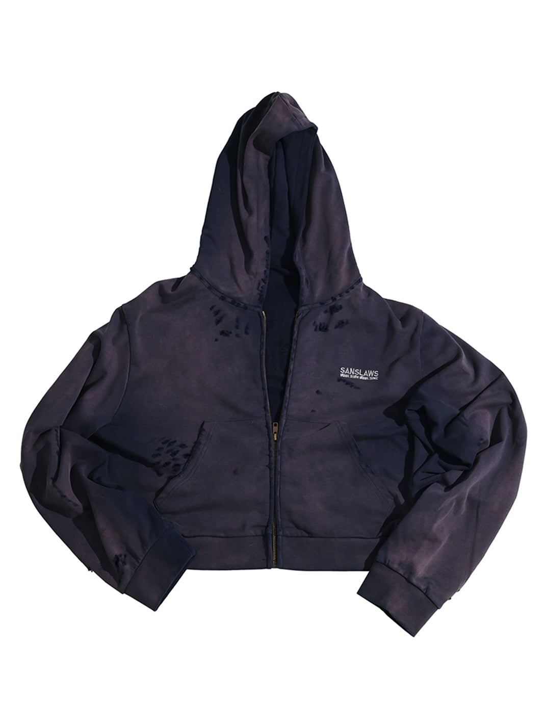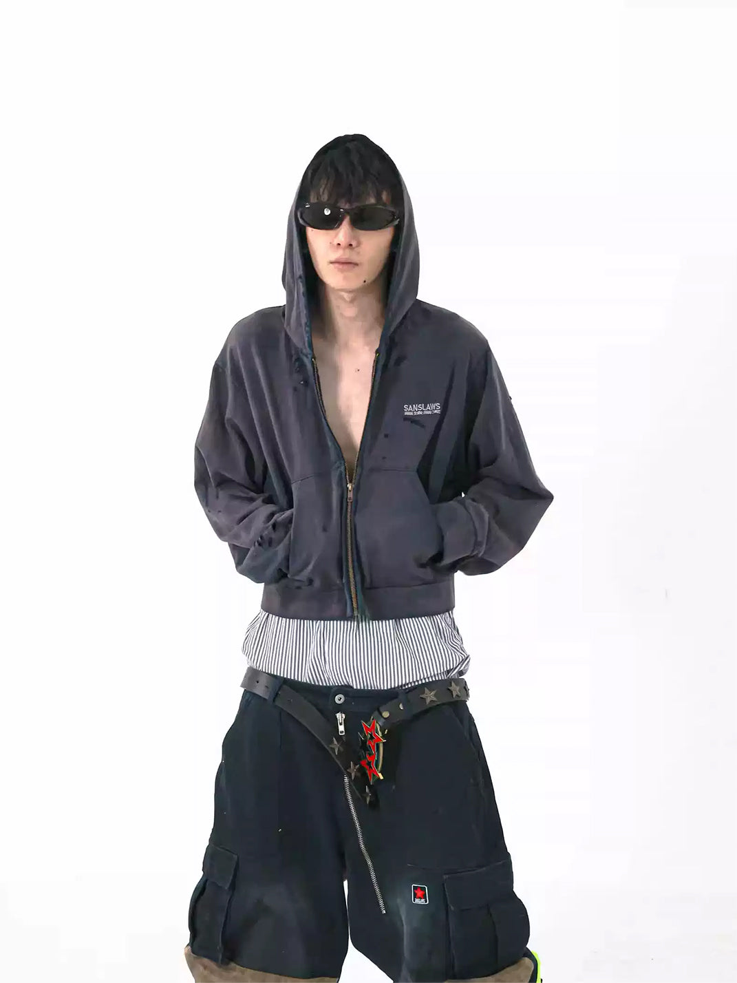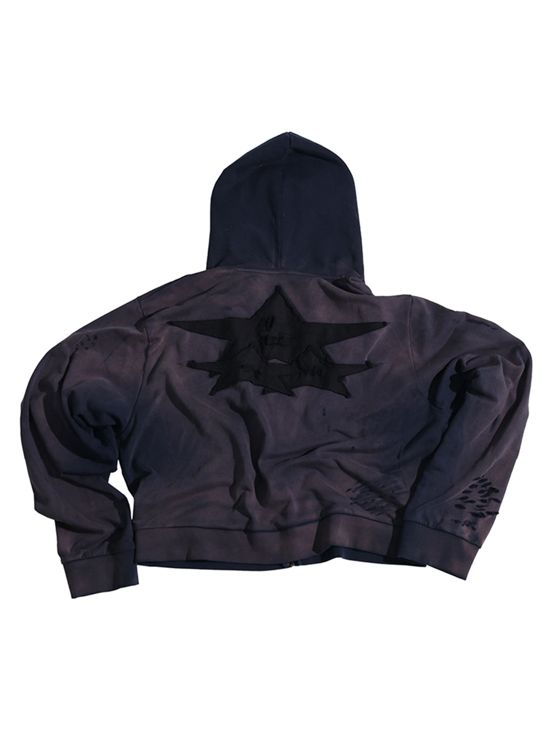 SANSLAWS丨Distressed Star Patching Zip Up Hoodie