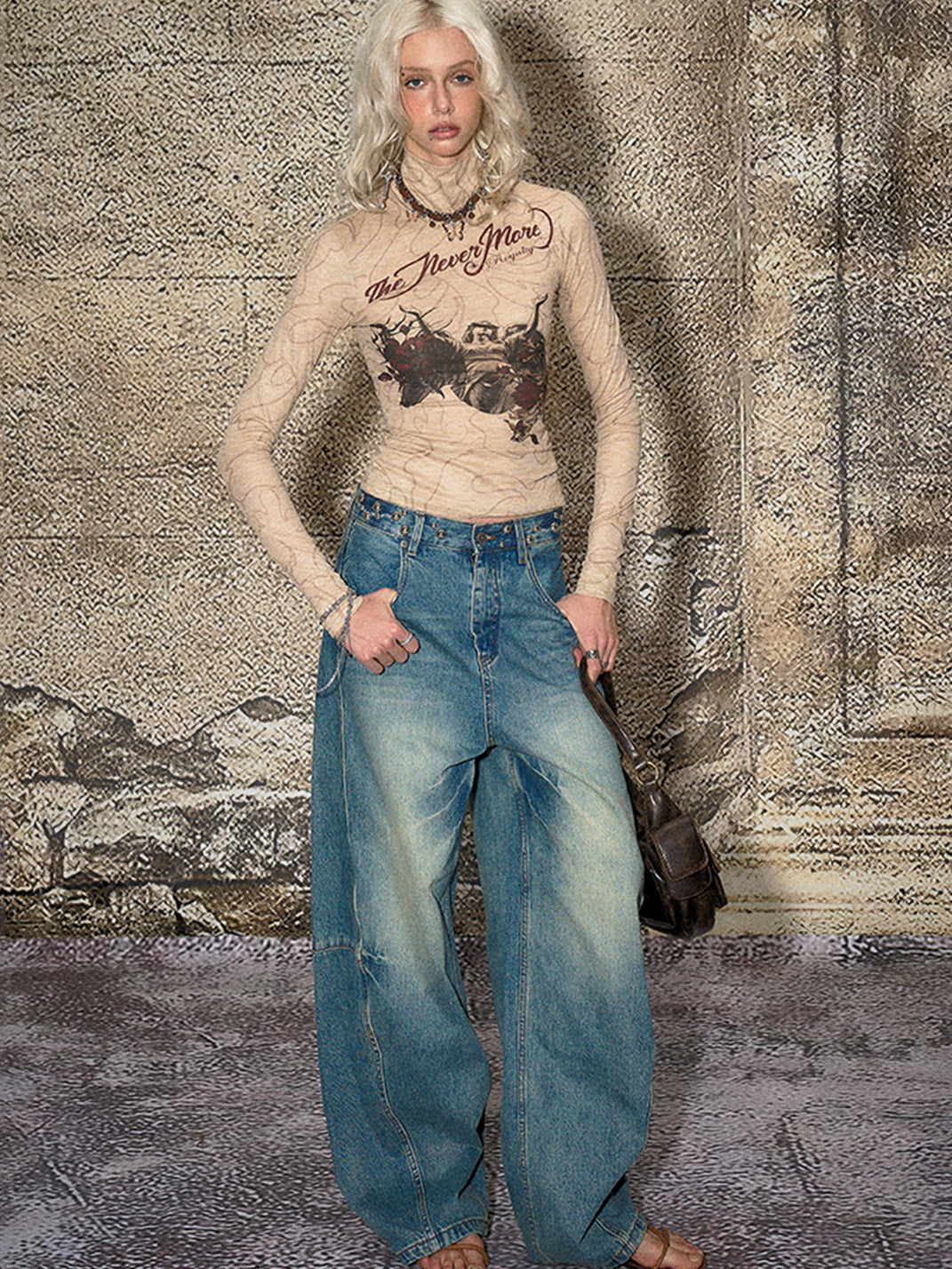 THE NEVERMORE | Blue Stitch-Wash Wide-Leg Denim Pants