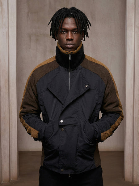 DND4DES | Double-Breasted Color Block Suede Jacket