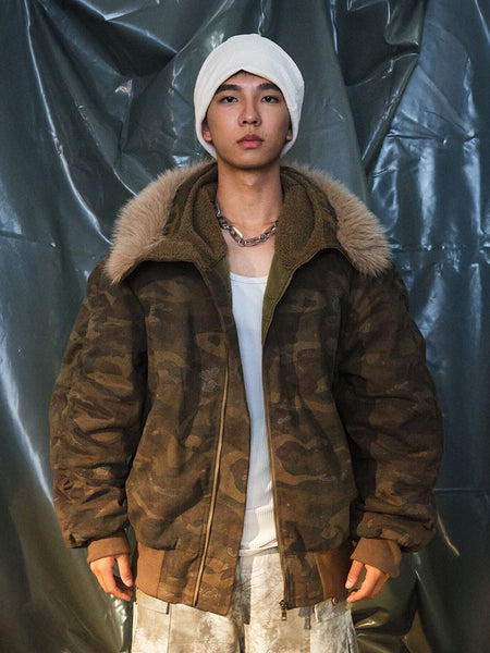 Recover Zone | Camo Faux-Fur Collar Bomber Jacket