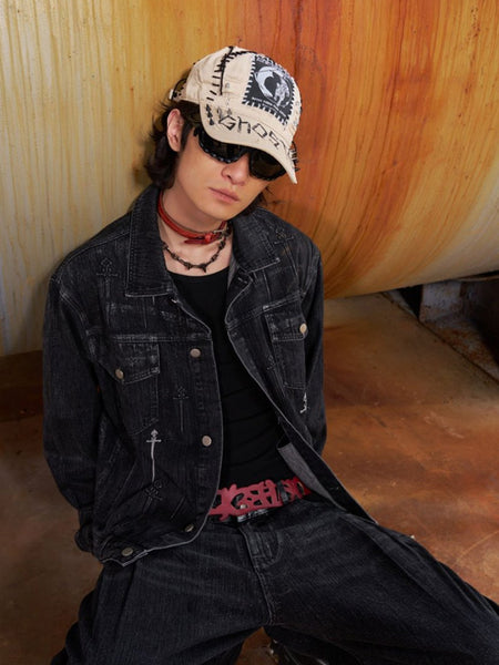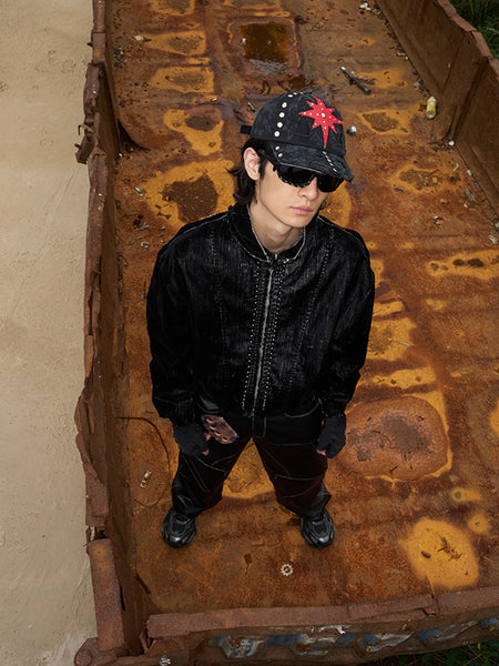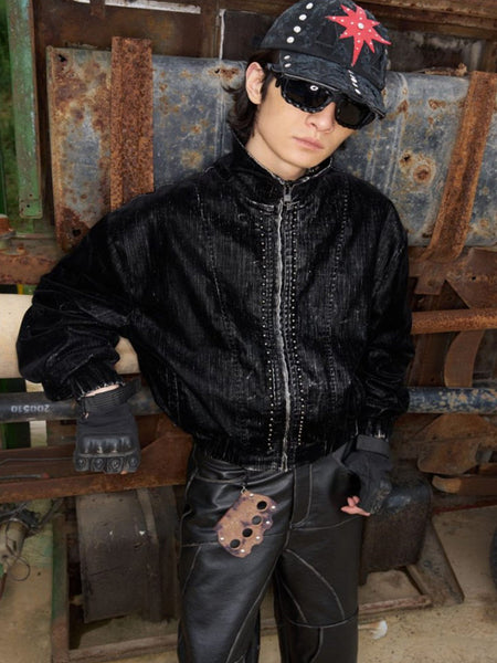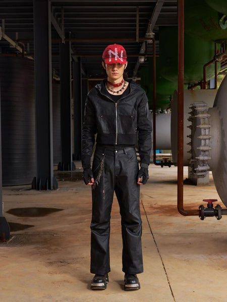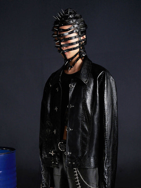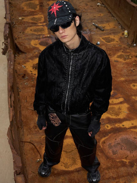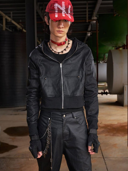 Recover Zone | Distressed Rivet PU Cropped Jacket