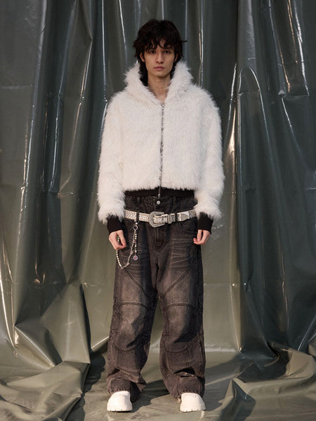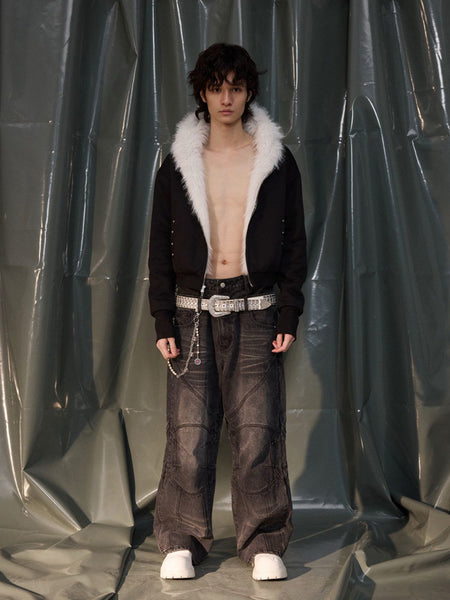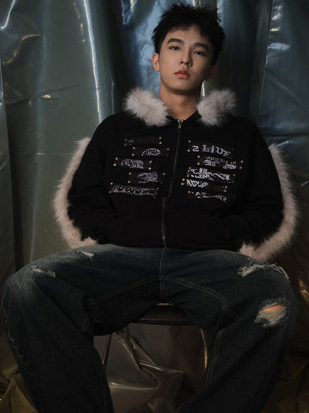 Recover Zone | Faux Fur Studs Hooded Jacket