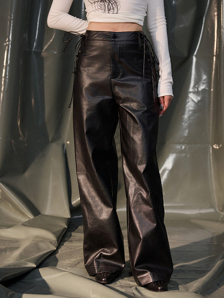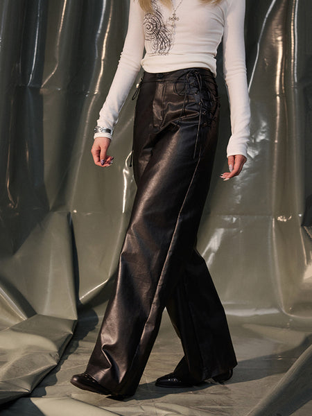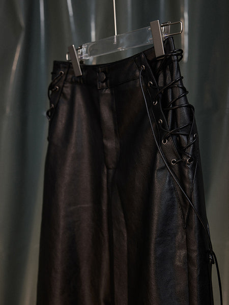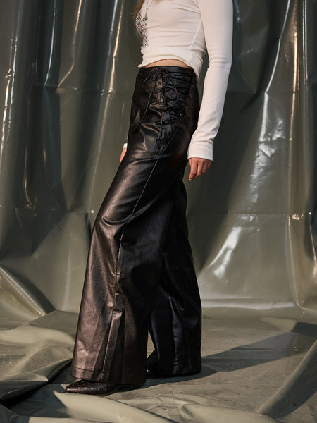 Recover Zone | Retro Lace-up Flared Leather Pants