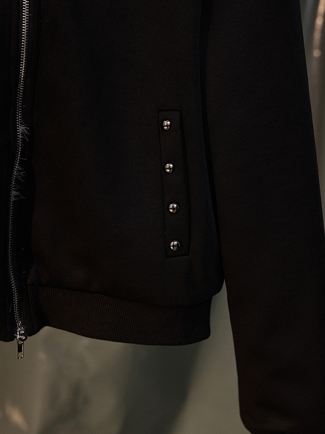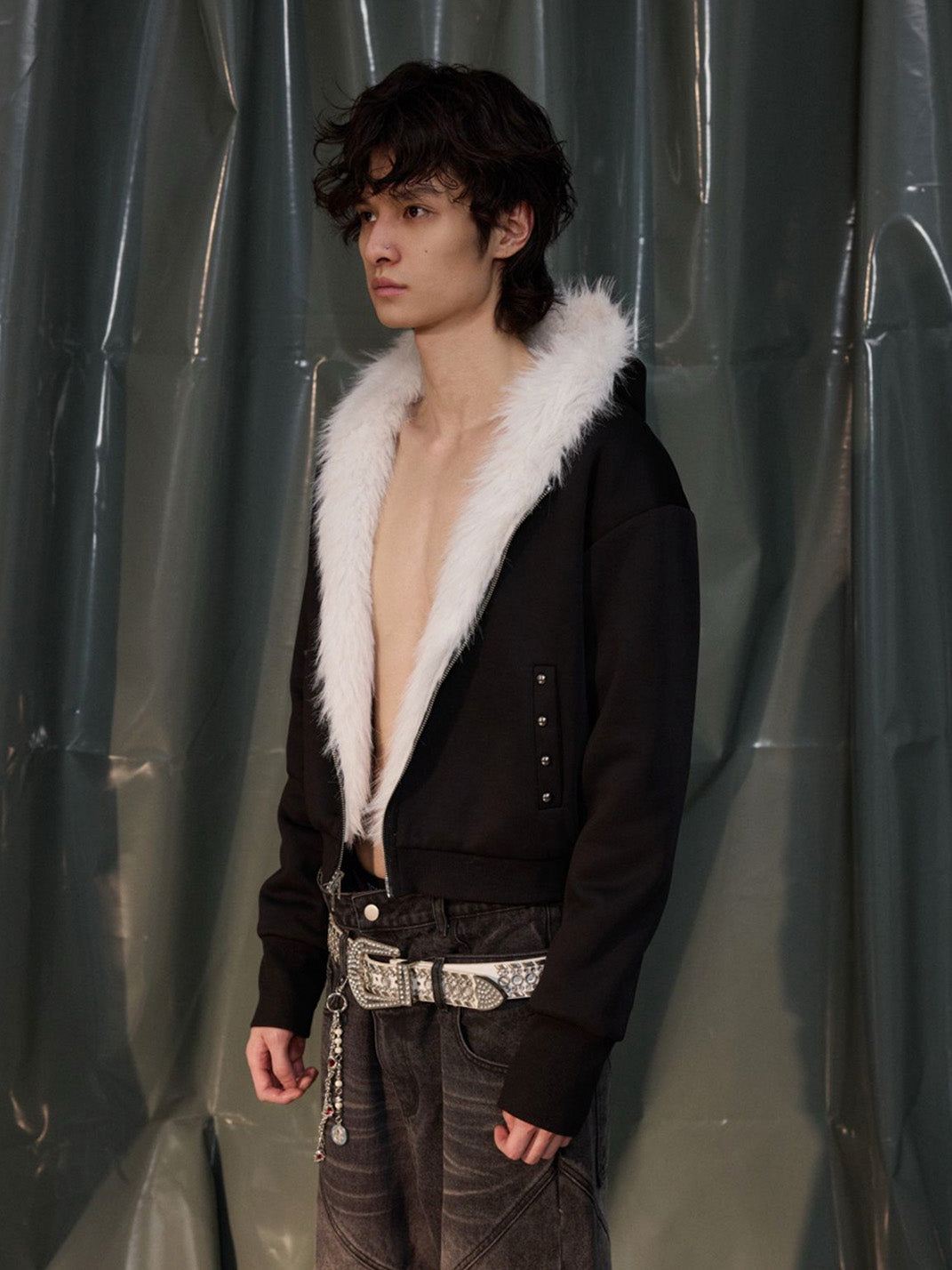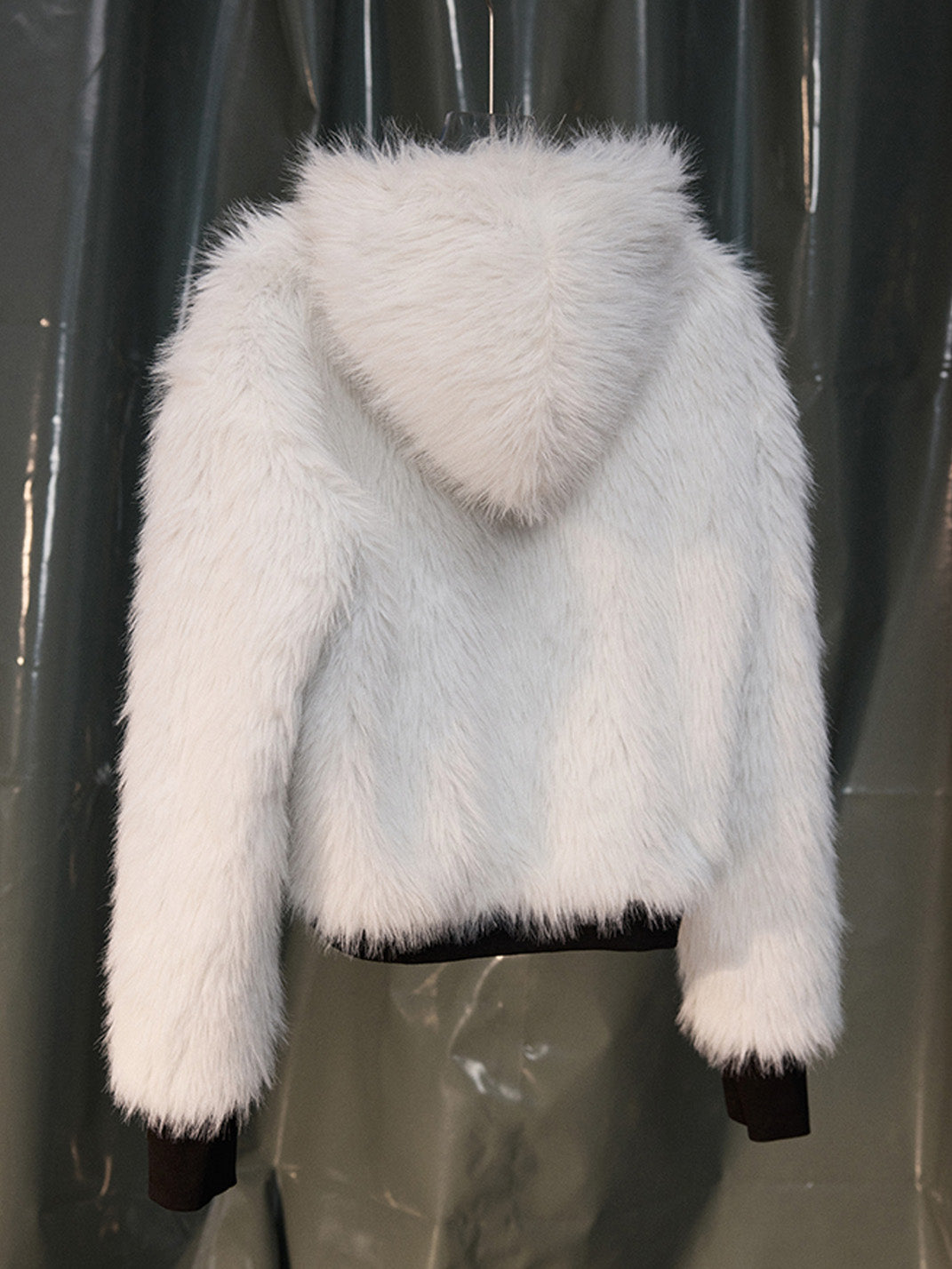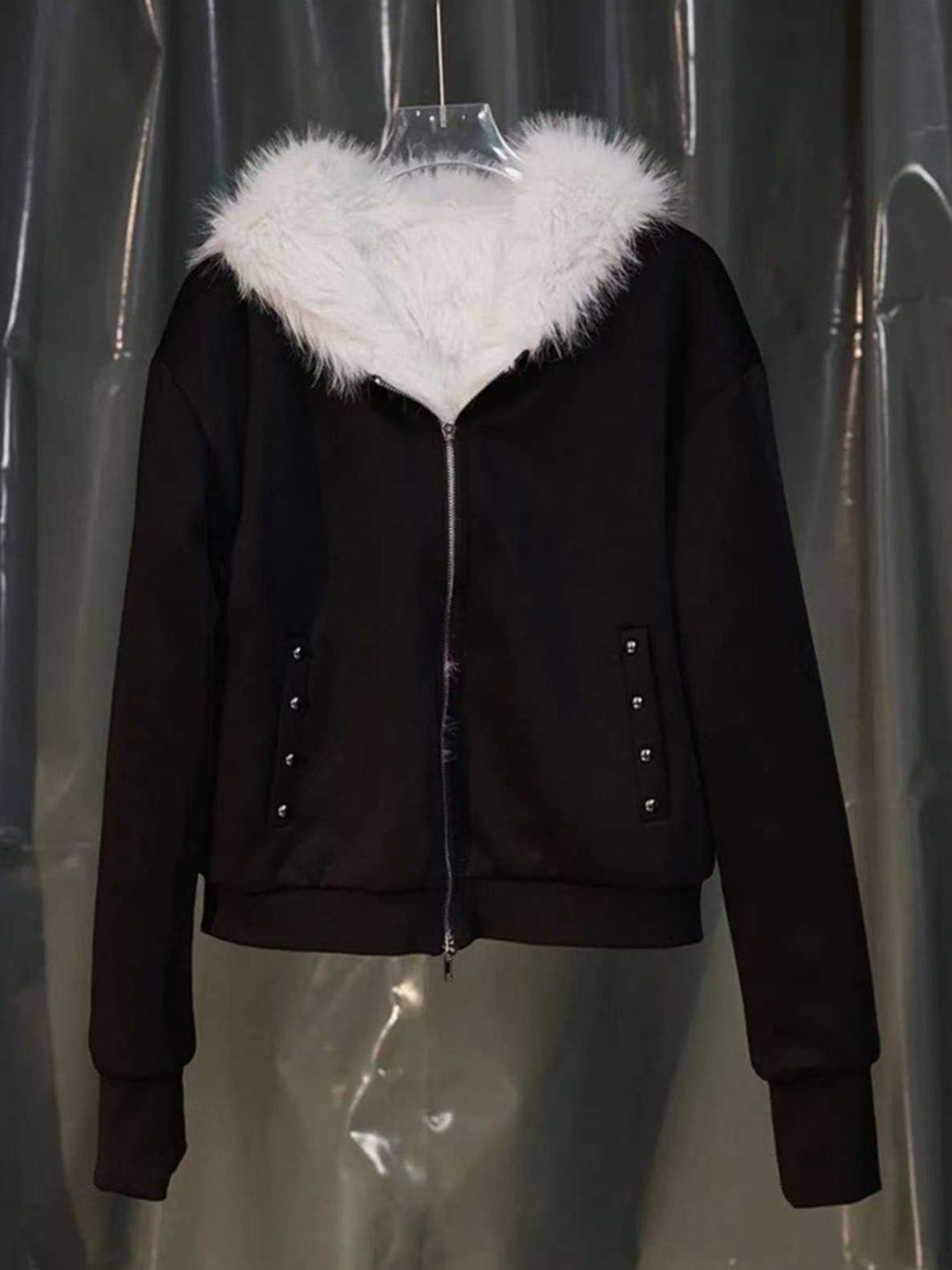 Recover Zone | Faux Fur Studs Hooded Jacket Skip to content