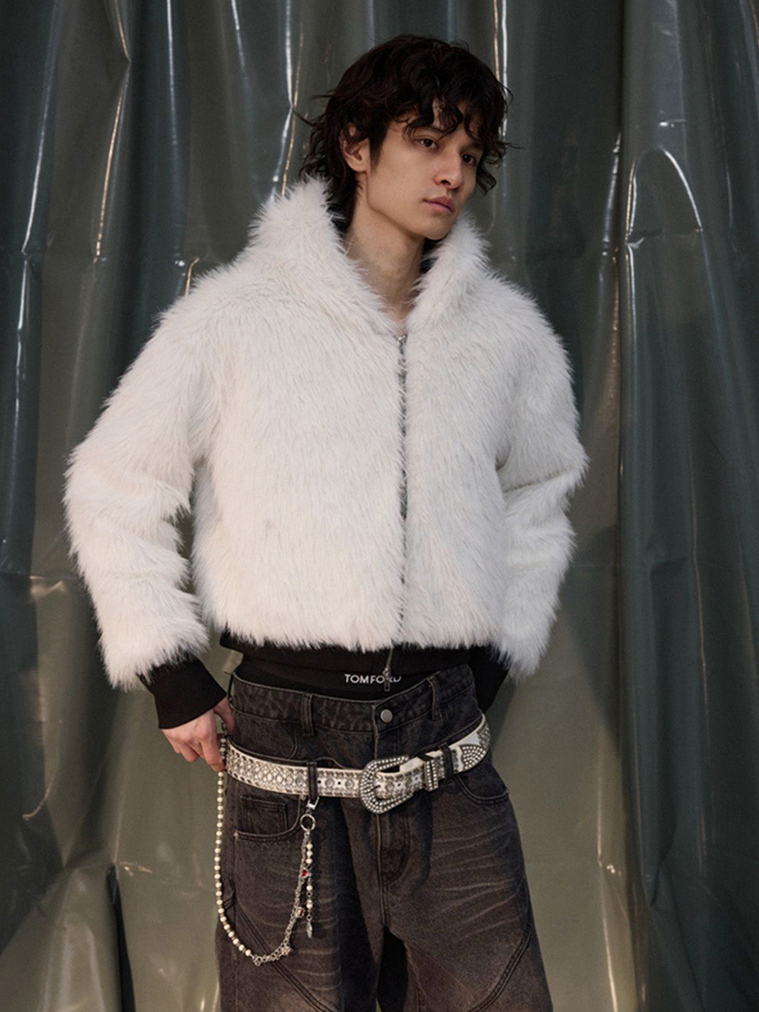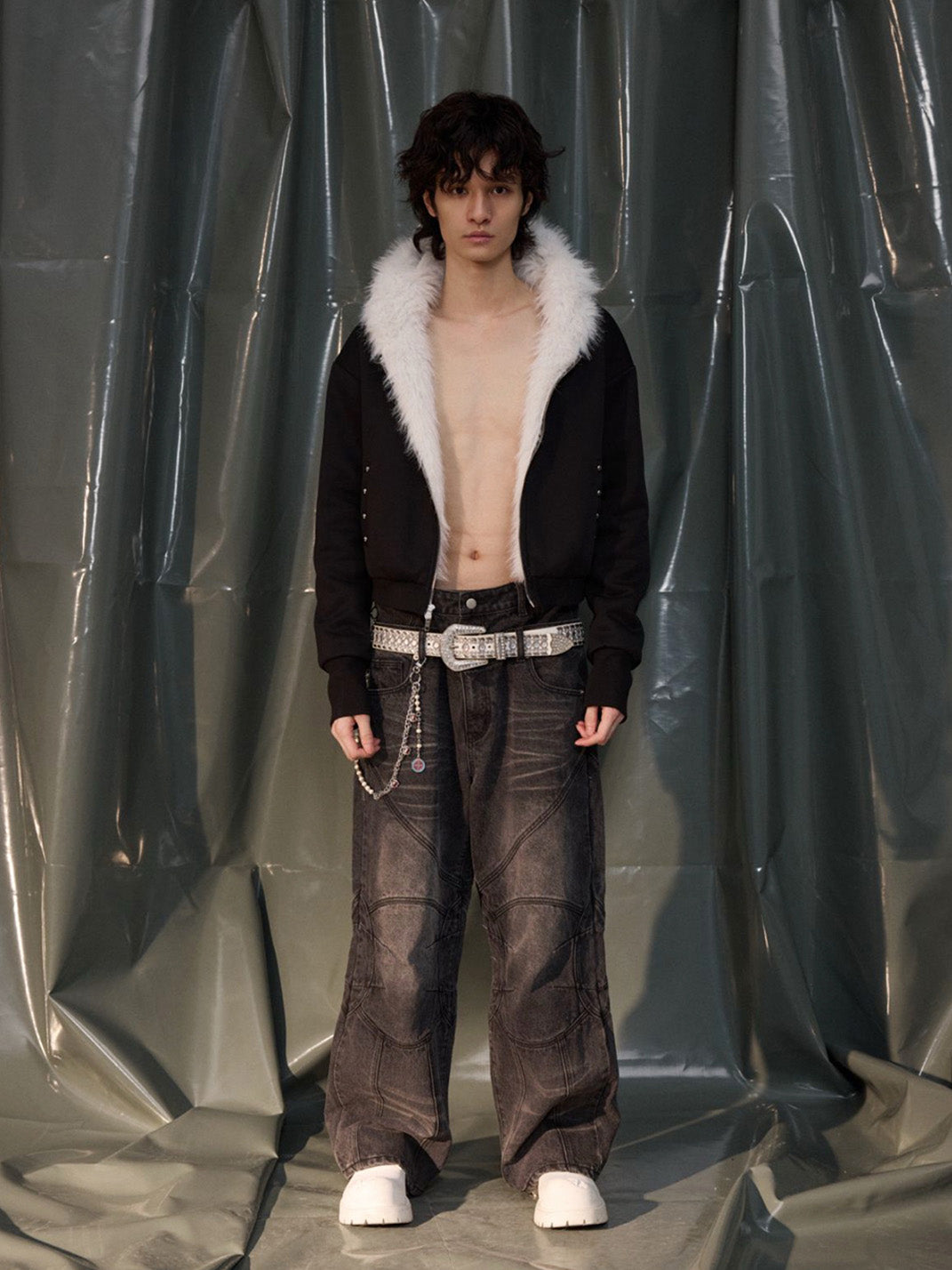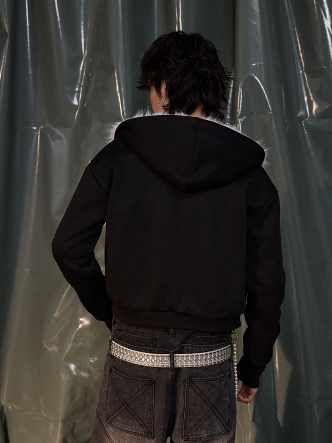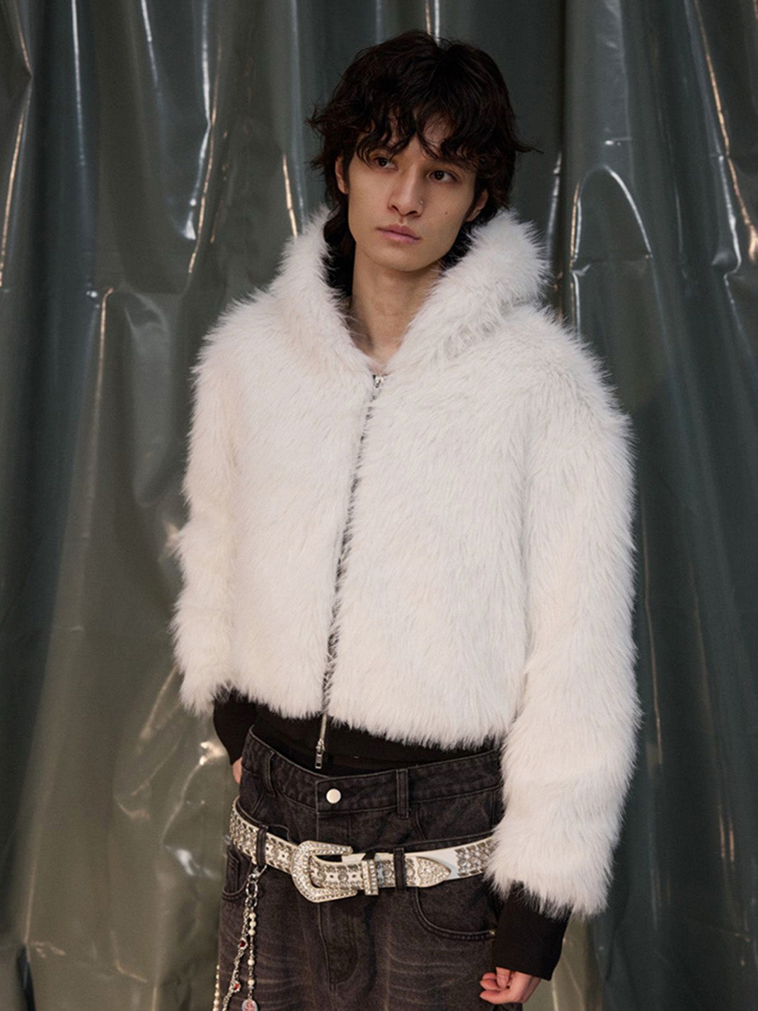 Recover Zone | Faux Fur Studs Hooded Jacket Skip to content