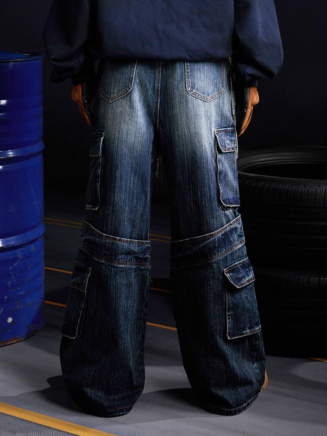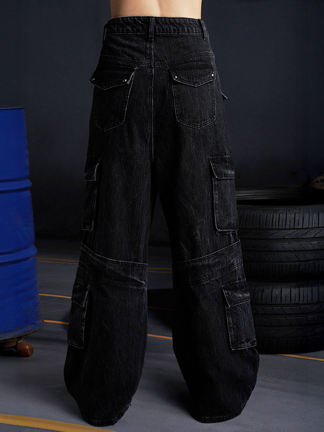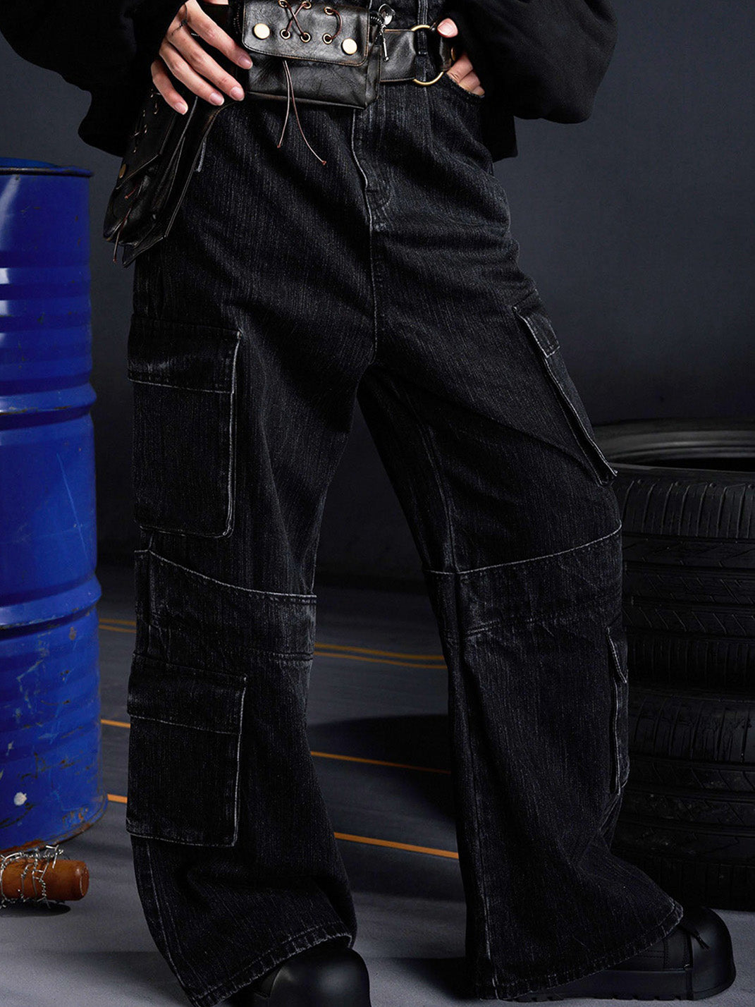Recover Zone | Multi-Pocket Wide-Leg Utility Jeans Skip to content