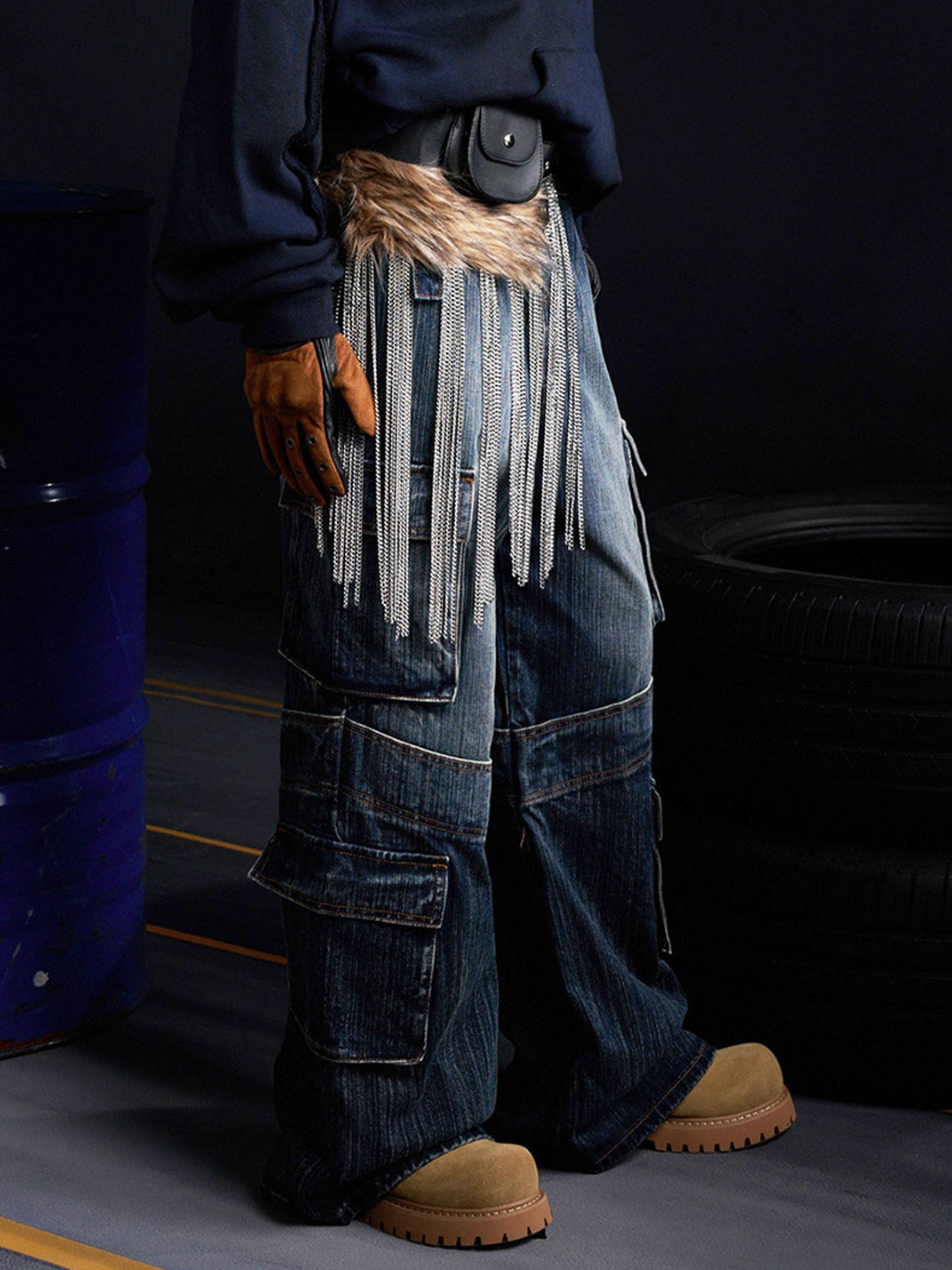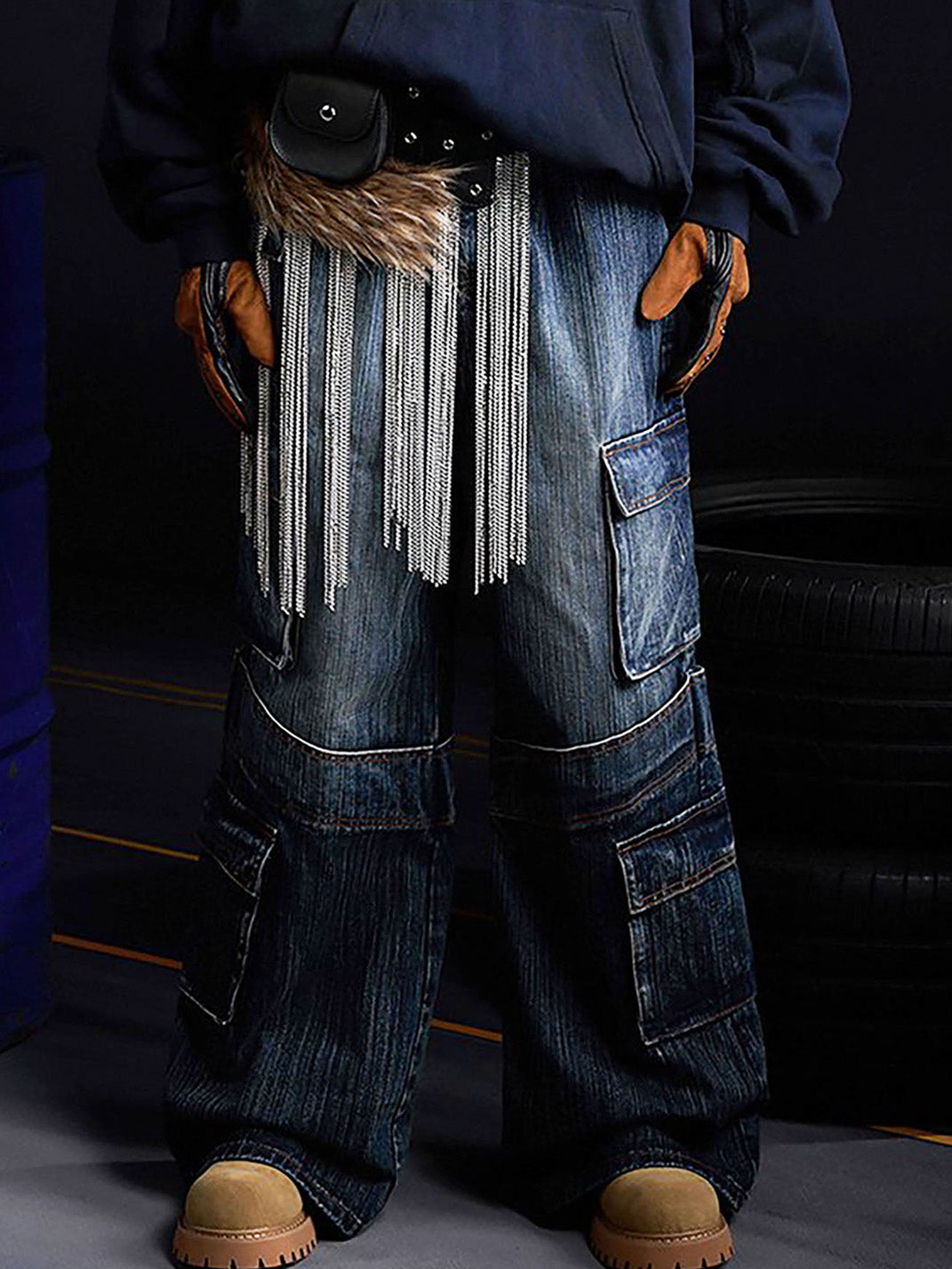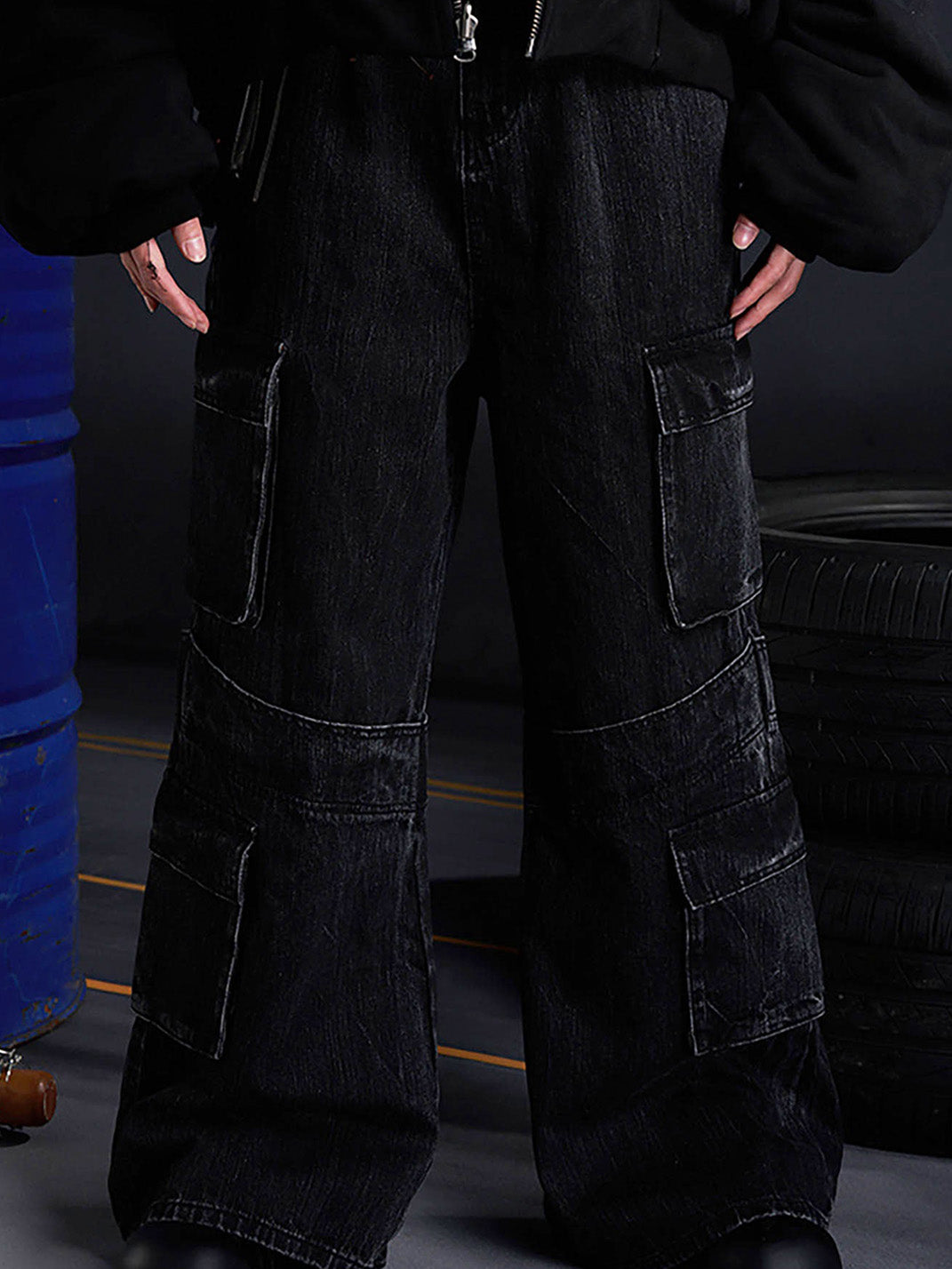 Recover Zone | Multi-Pocket Wide-Leg Utility Jeans Skip to content