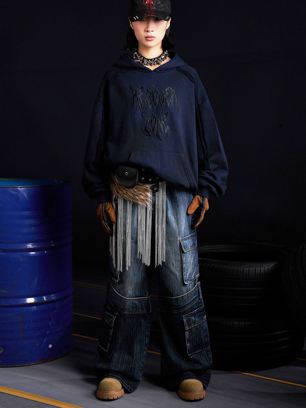 Recover Zone | Multi-Pocket Wide-Leg Utility Jeans