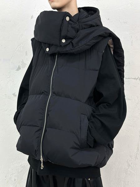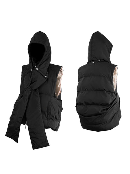 RELABEL | Asymmetrical-Zip Detachable-Hood Sued...