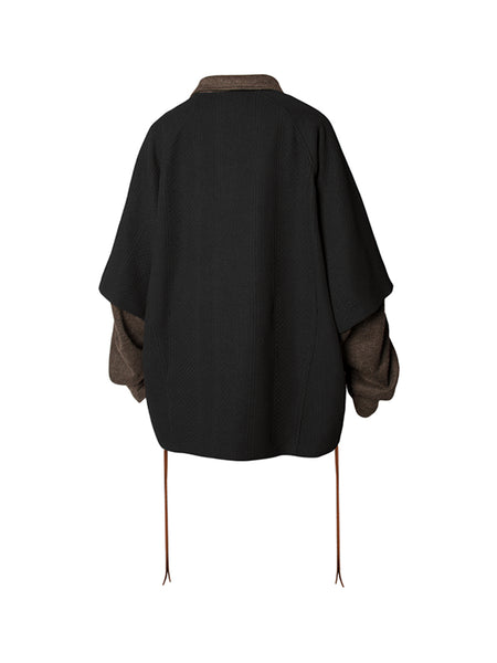 RELABEL | Detachable Hood Batwing Sleeve Jacket