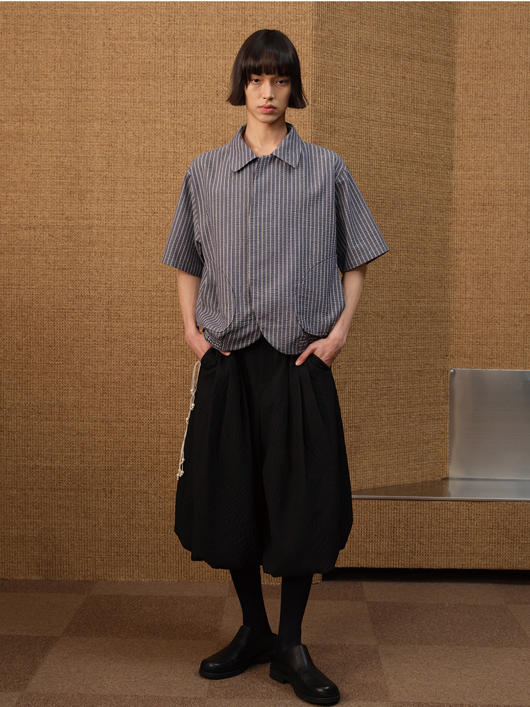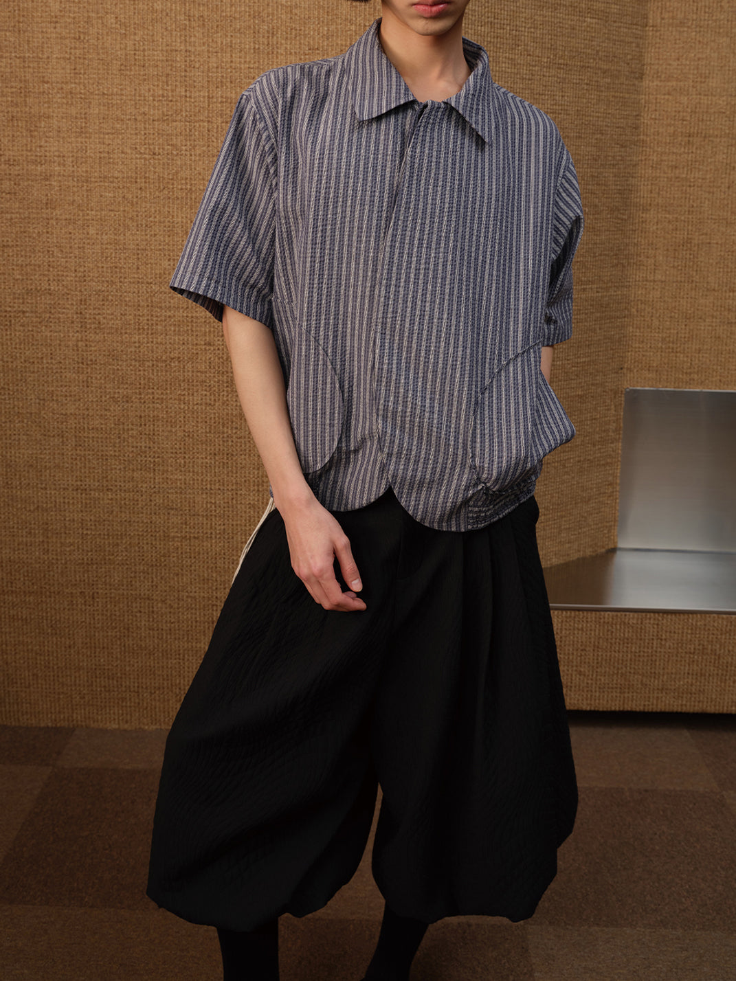 JCAESAR STUDIO | Boxy Fit Curved Hem Pin Stripe Shirt