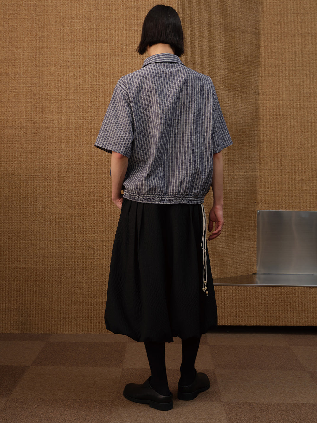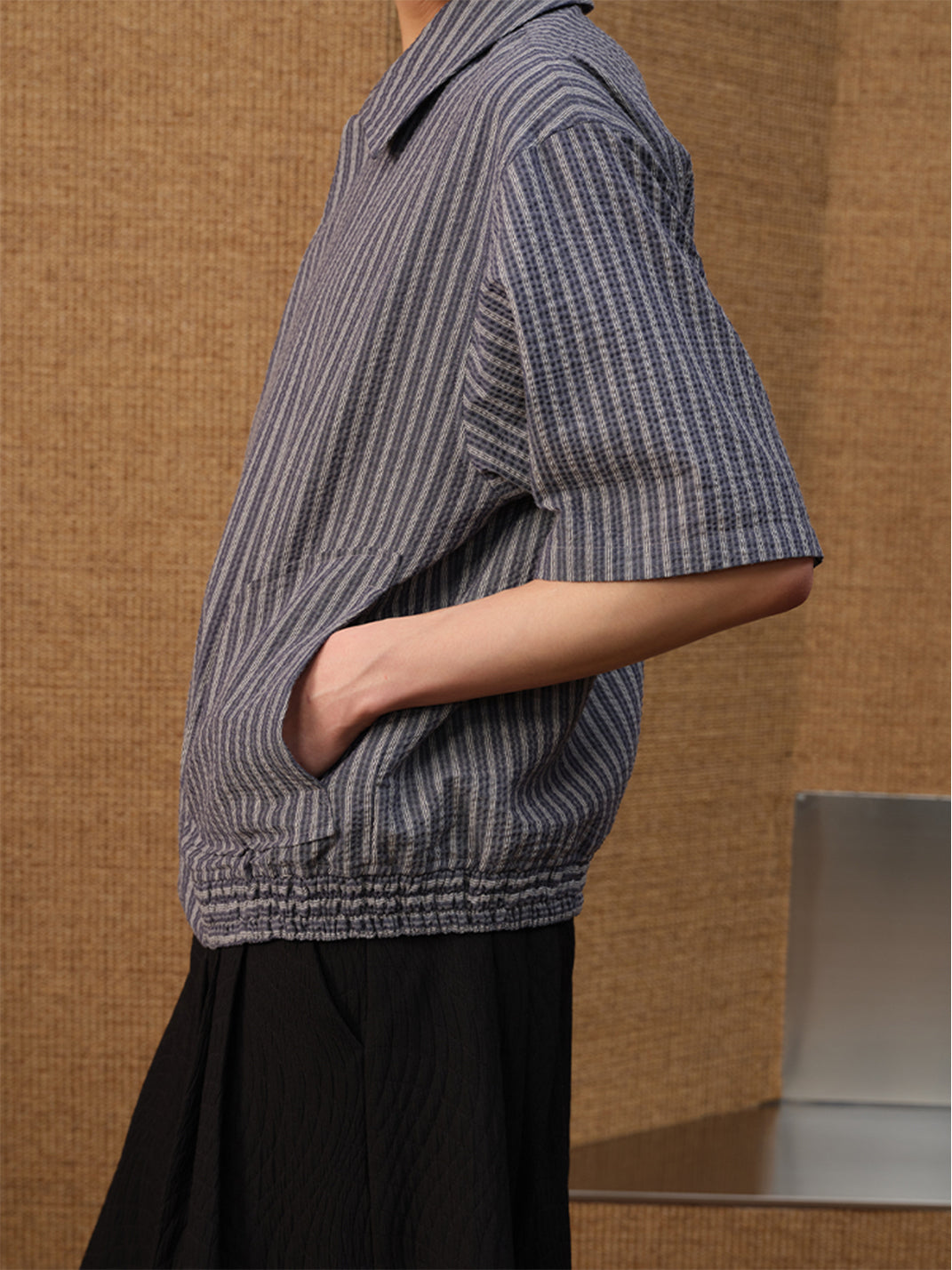 JCAESAR STUDIO | Boxy Fit Curved Hem Pin Stripe Shirt Skip to content