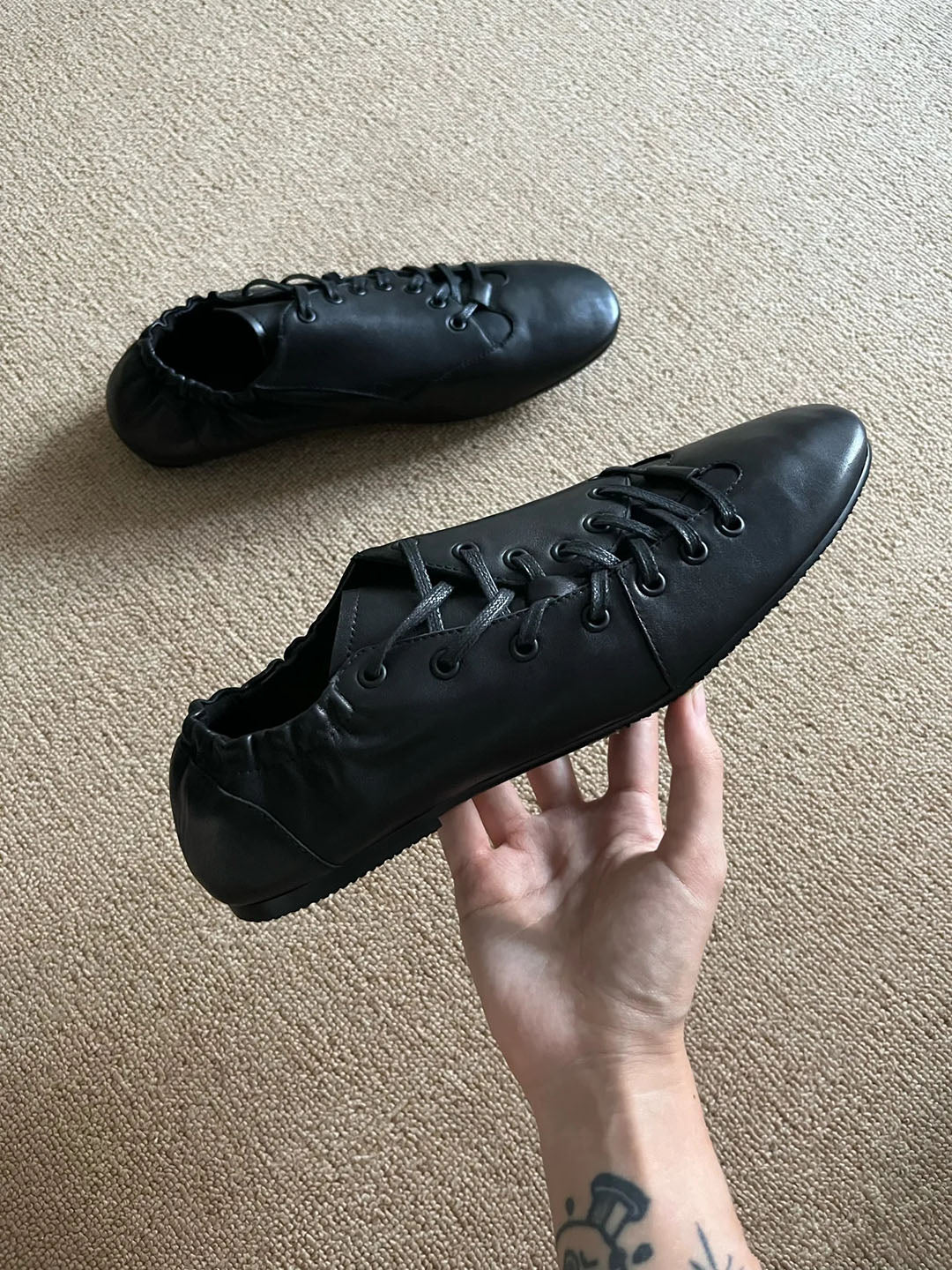 Featuring a classic thin-soled derby toe and gathered detailing at the heel, this design blends structure with refined craftsmanship.
