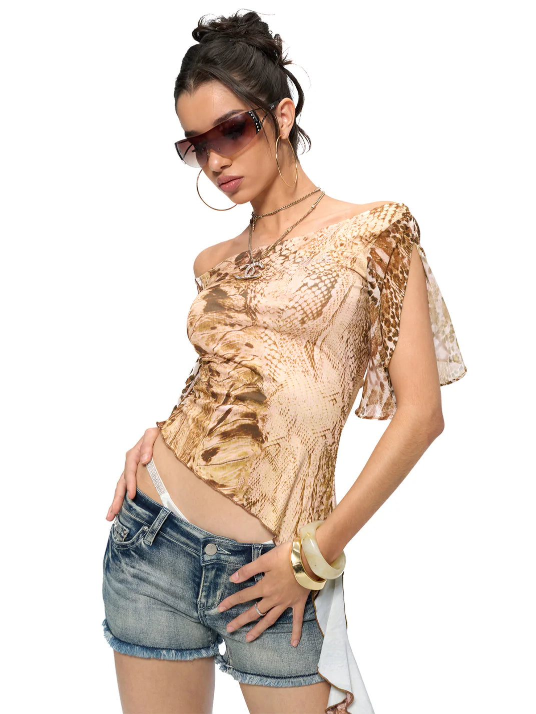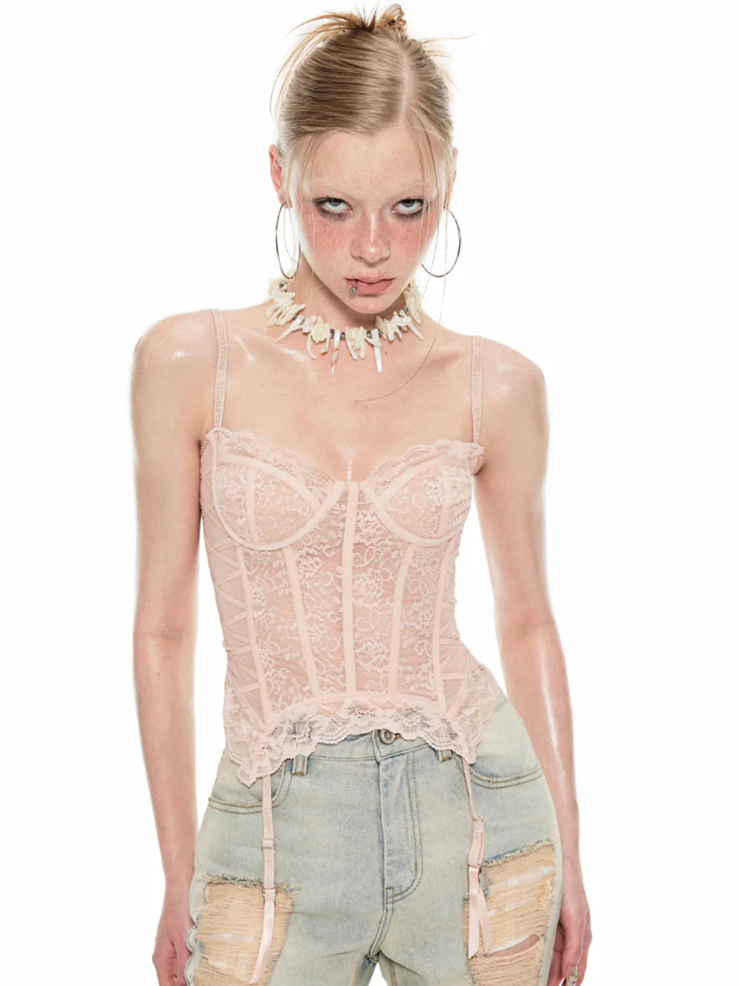 Their style blends feminine elements—like lace corsets, three-dimensional bow ballet flats, and floral prints—with an edgy, fashion-forward attitude seen in distressed, deconstructed low-rise denim and animal print slip dresses.