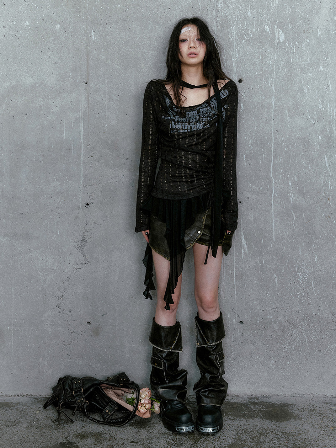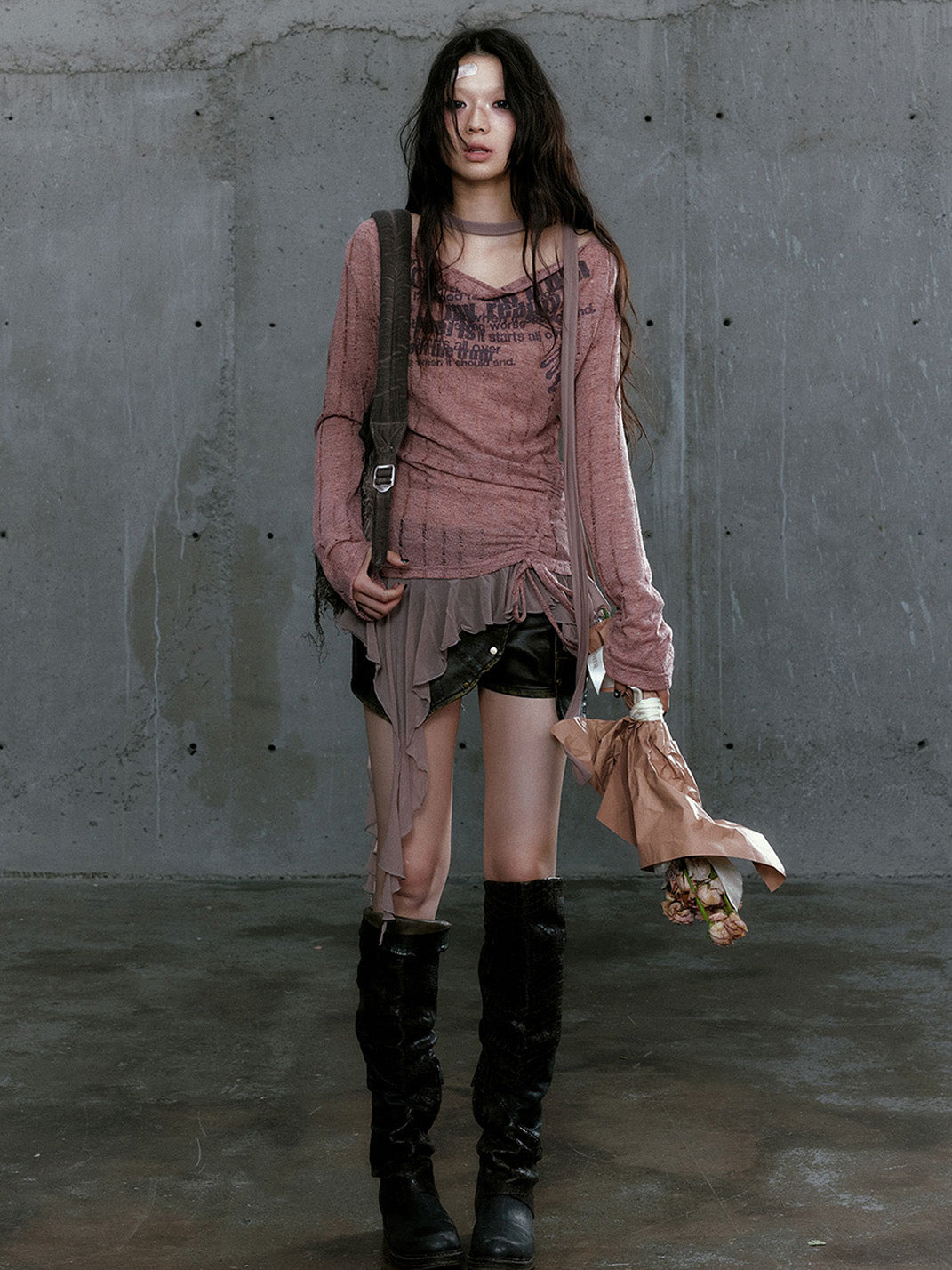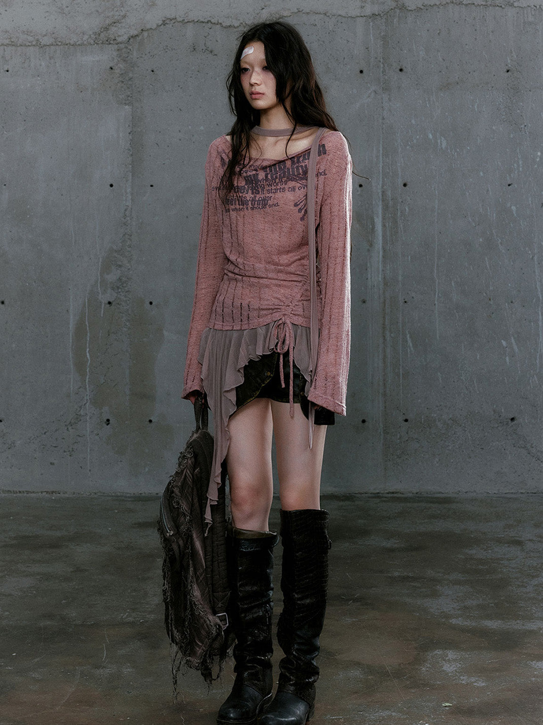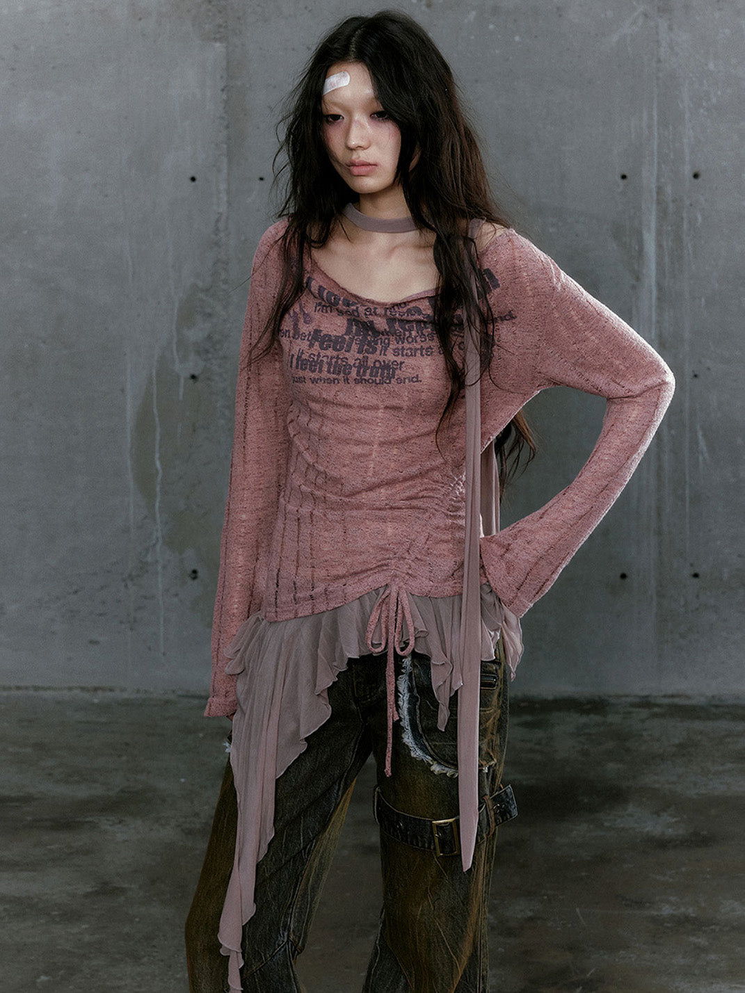 CestNous | Graffiti Print Asymmetrical Knit Top